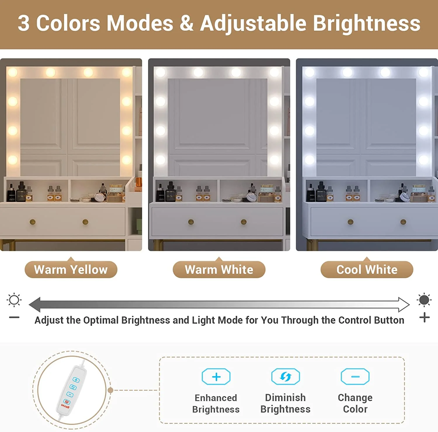 Makeup Vanity Desk with Lighted Mirror and Drawers, Vanity Desk Table Dressing Table with Charging Station & Lights for Bedroom,White - Curated Treasures Market