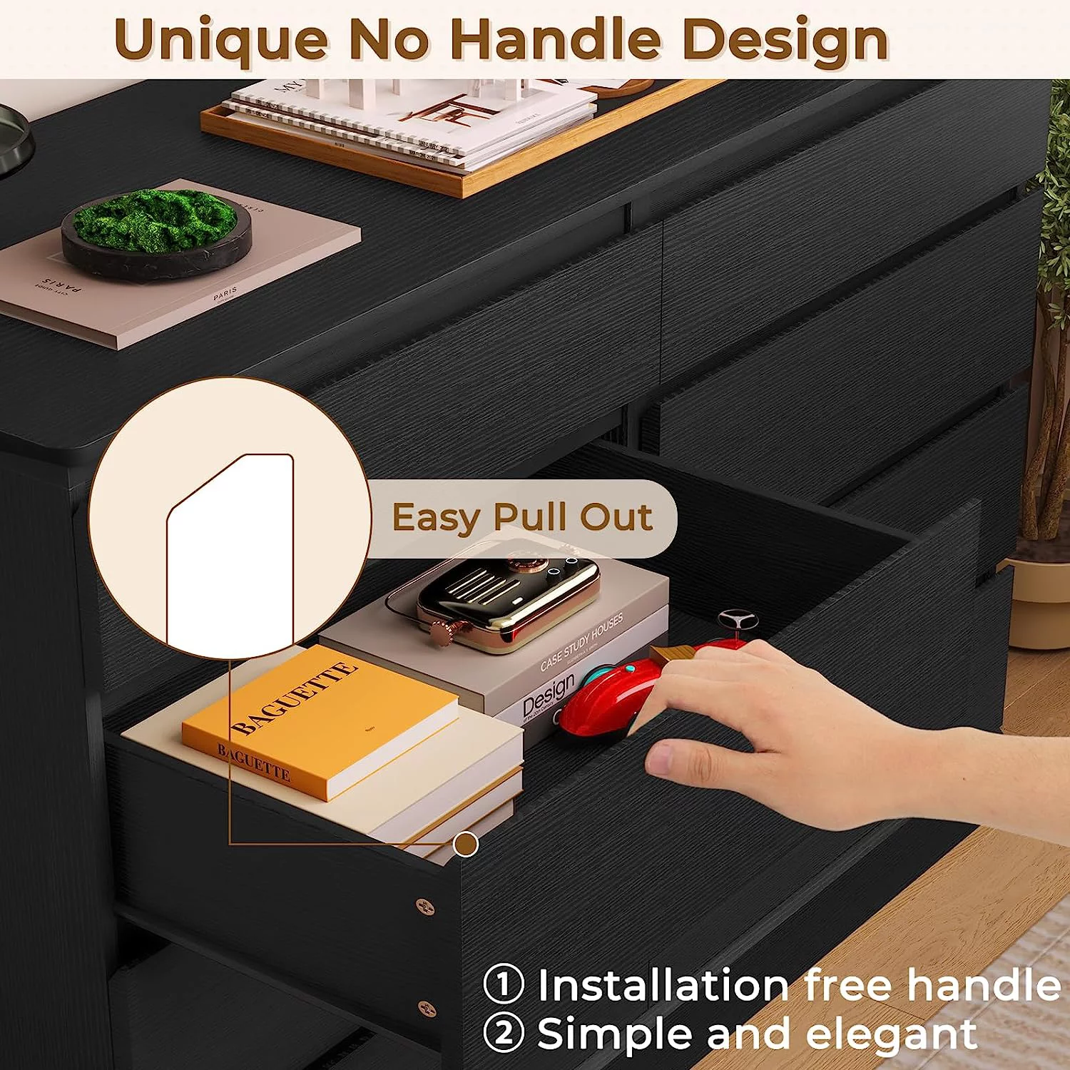 8 Drawers Double Dresser Wooden Black Dresser Chest of Drawers for Bedroom, Large Storage Cabinet for Home Living Room - Curated Treasures Market