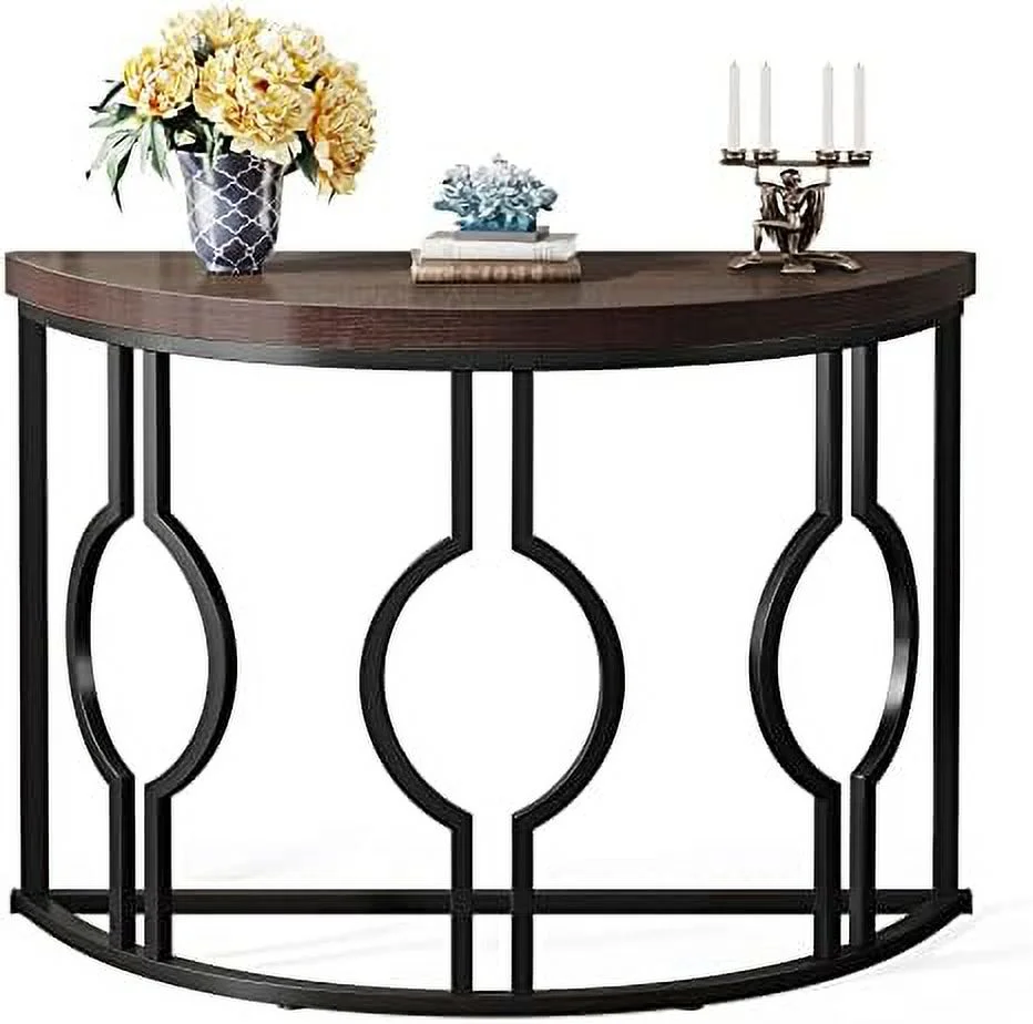 CHYTRE Half Console Table for Entryway 43 Inch Industrial Semi Circle Sofa Table with Geometric Base Wood Accent Table for Living Room Hallway Foyer Entrance Grey - Curated Treasures Market