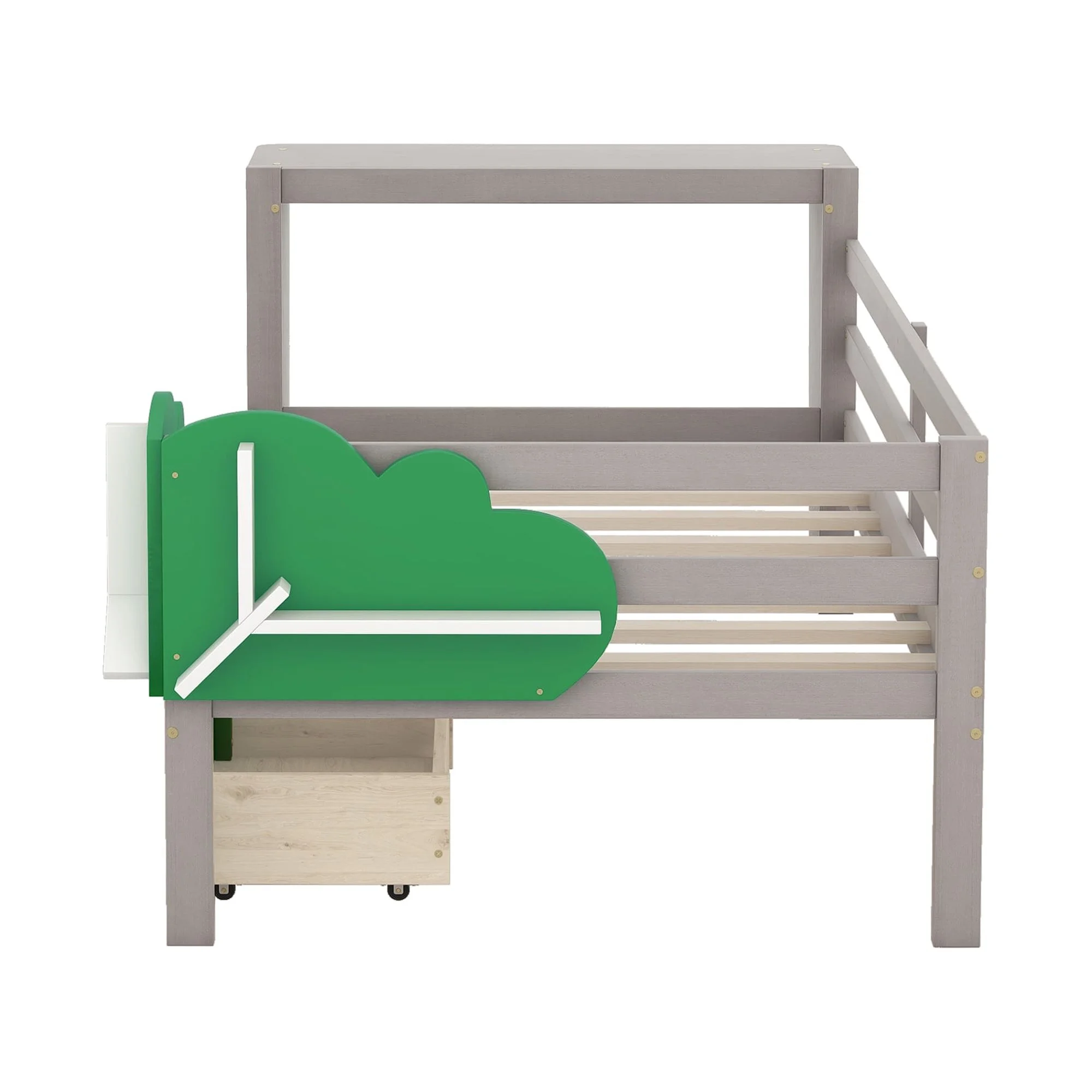 Churanty Twin Size Daybed with Storage Drawers and Desk,Wood Twin Bed Frame with Green Leaf Shape Shelves for Kids Bedroom,Gray - Curated Treasures Market