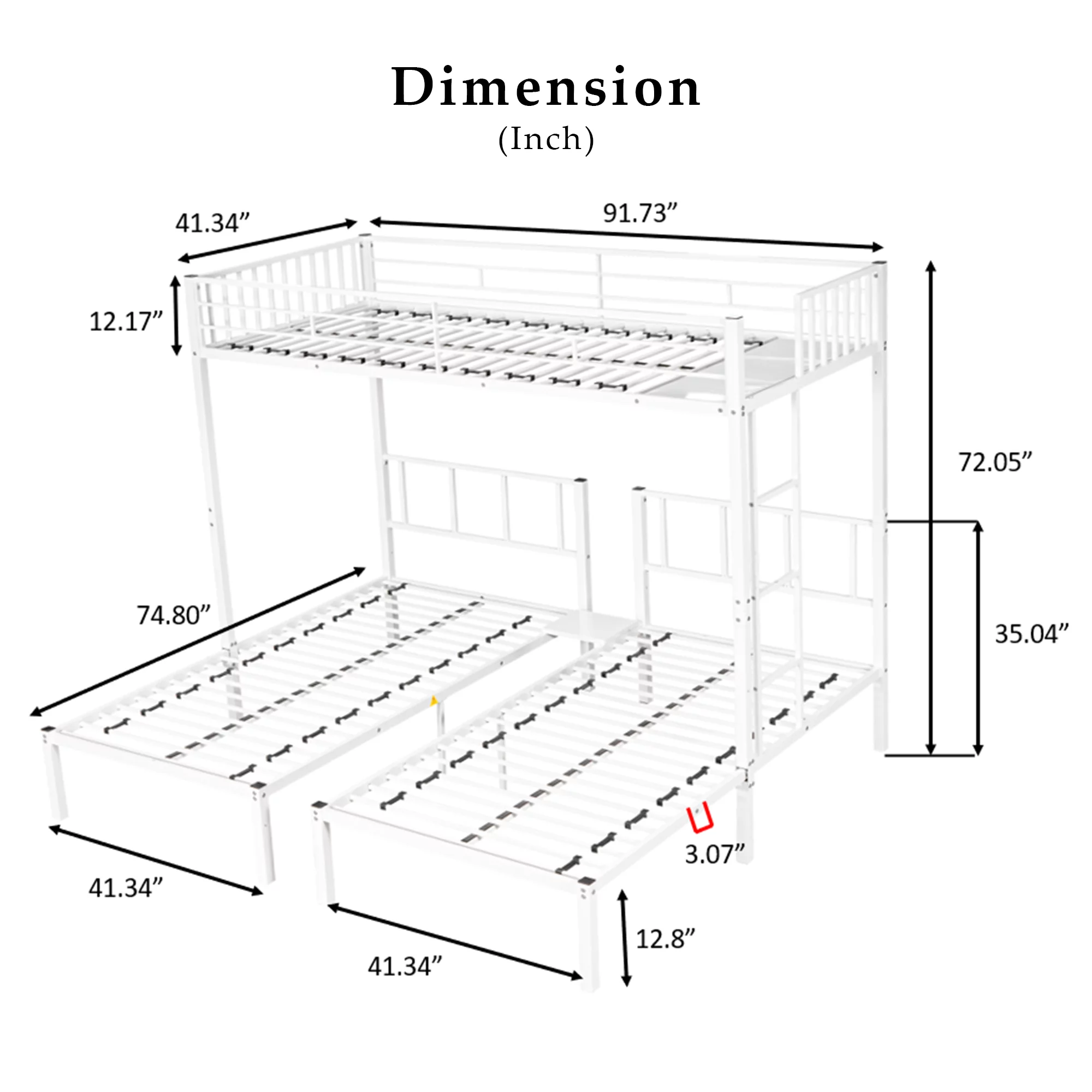 Triple Metal Bunk Bed Twin over Twin with Ladder for Kids, Boys & Girls, Convertible Bunk Set, White - Curated Treasures Market