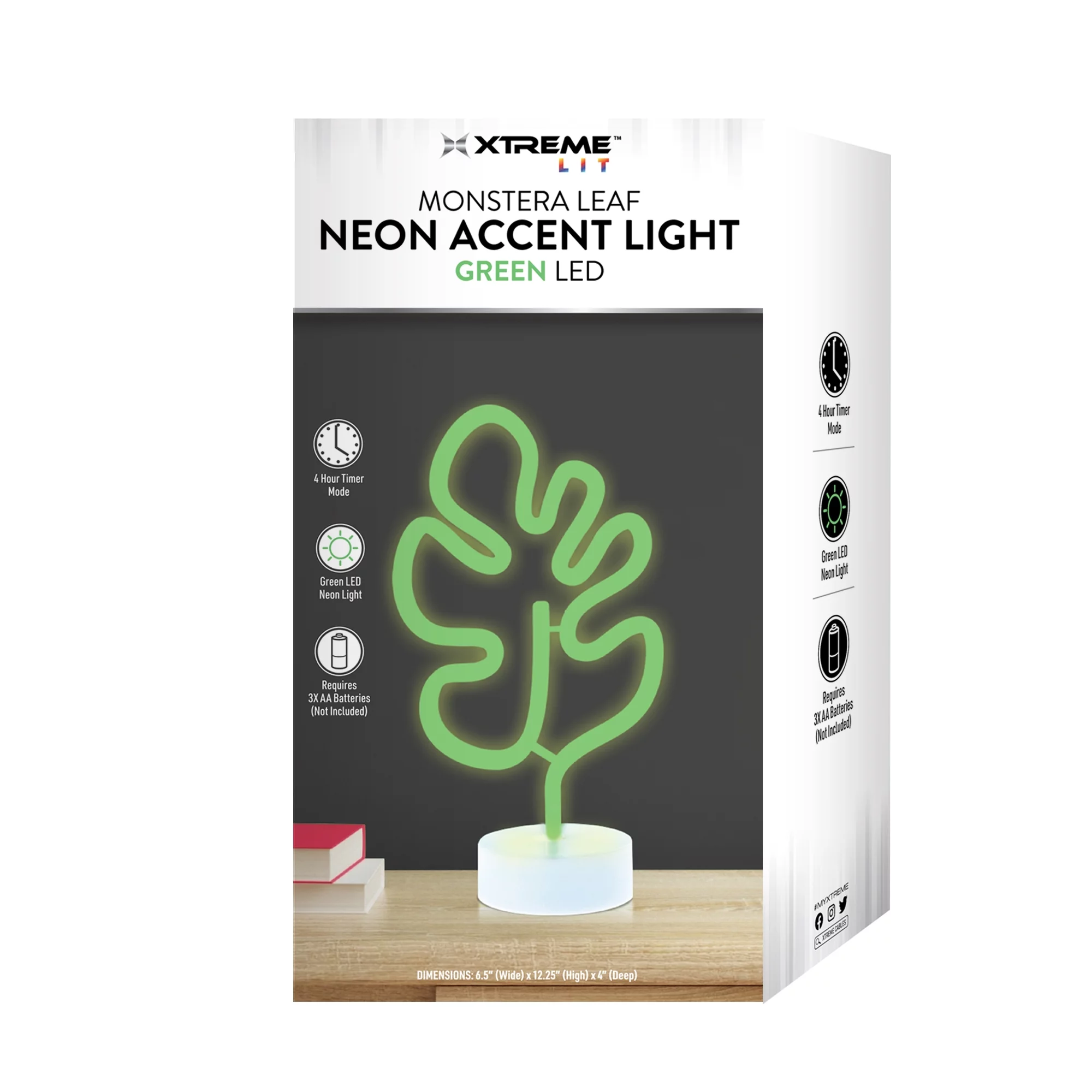 Xtreme Lit 6.5 x 12.25 Neon Monstera Leaf Lamp, Indoor Novelty Plastic Tabletop Sign - Curated Treasures Market