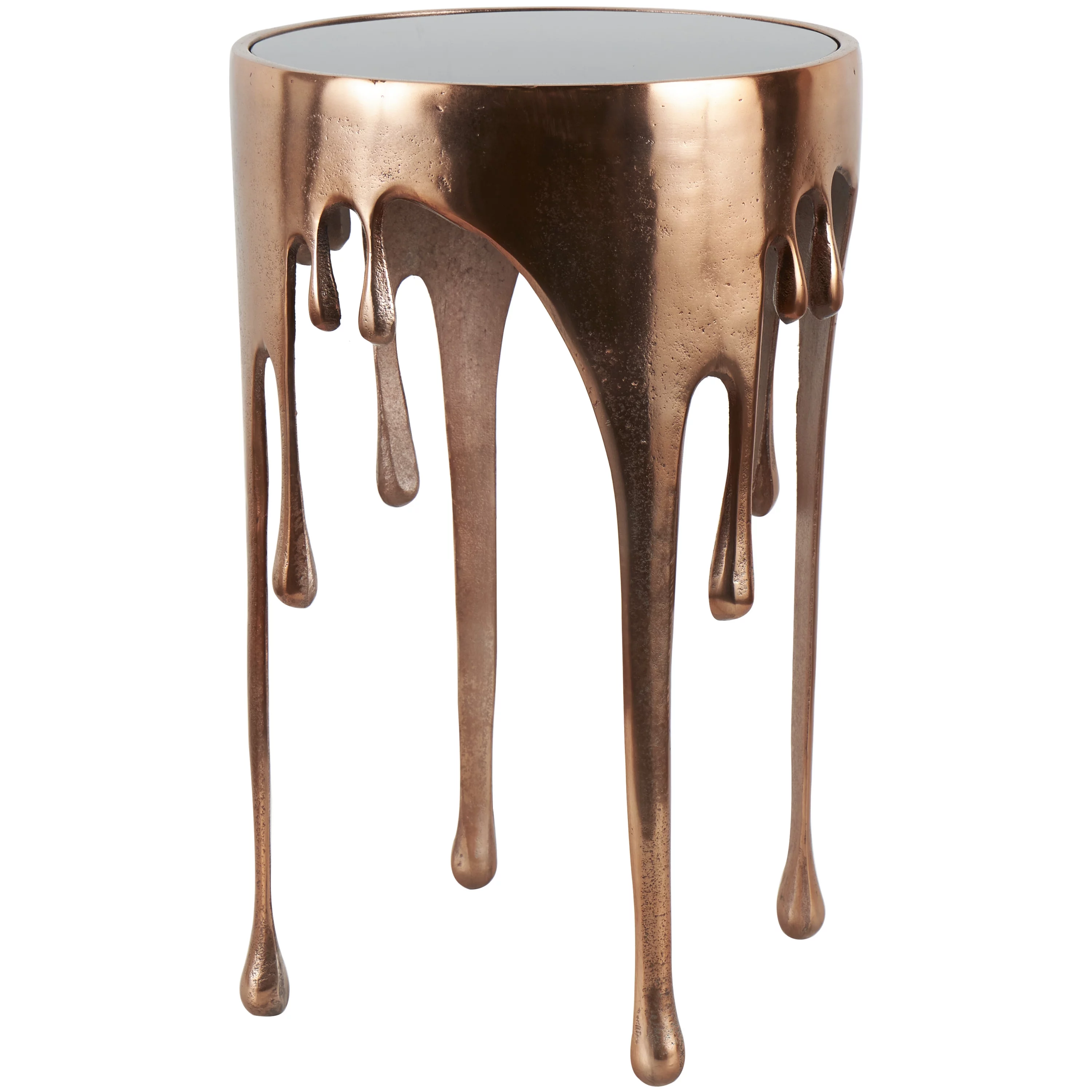 DecMode 16" x 25" Copper Aluminum Drip Accent Table with Melting Design and Shaded Glass Top, 1-Piece - Curated Treasures Market