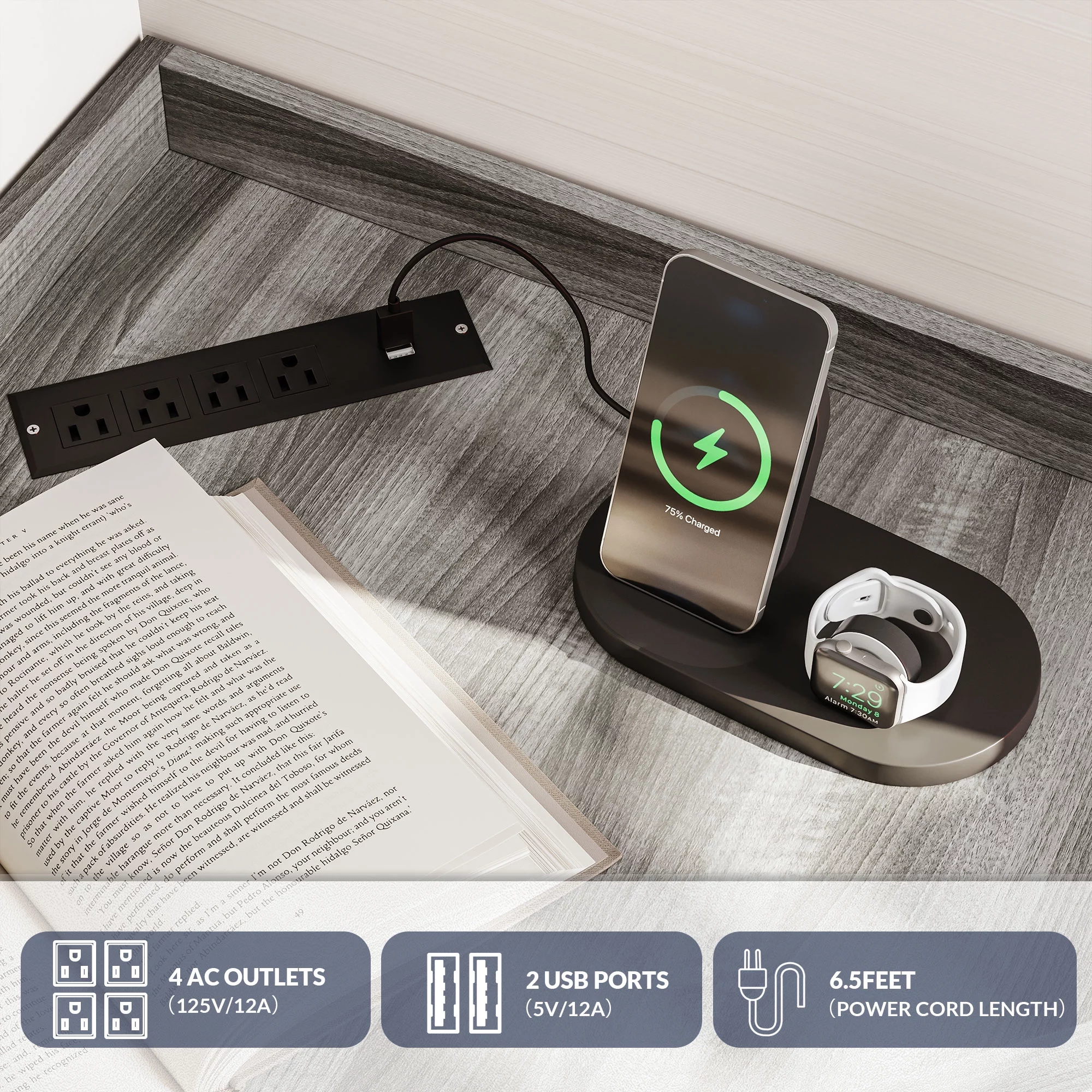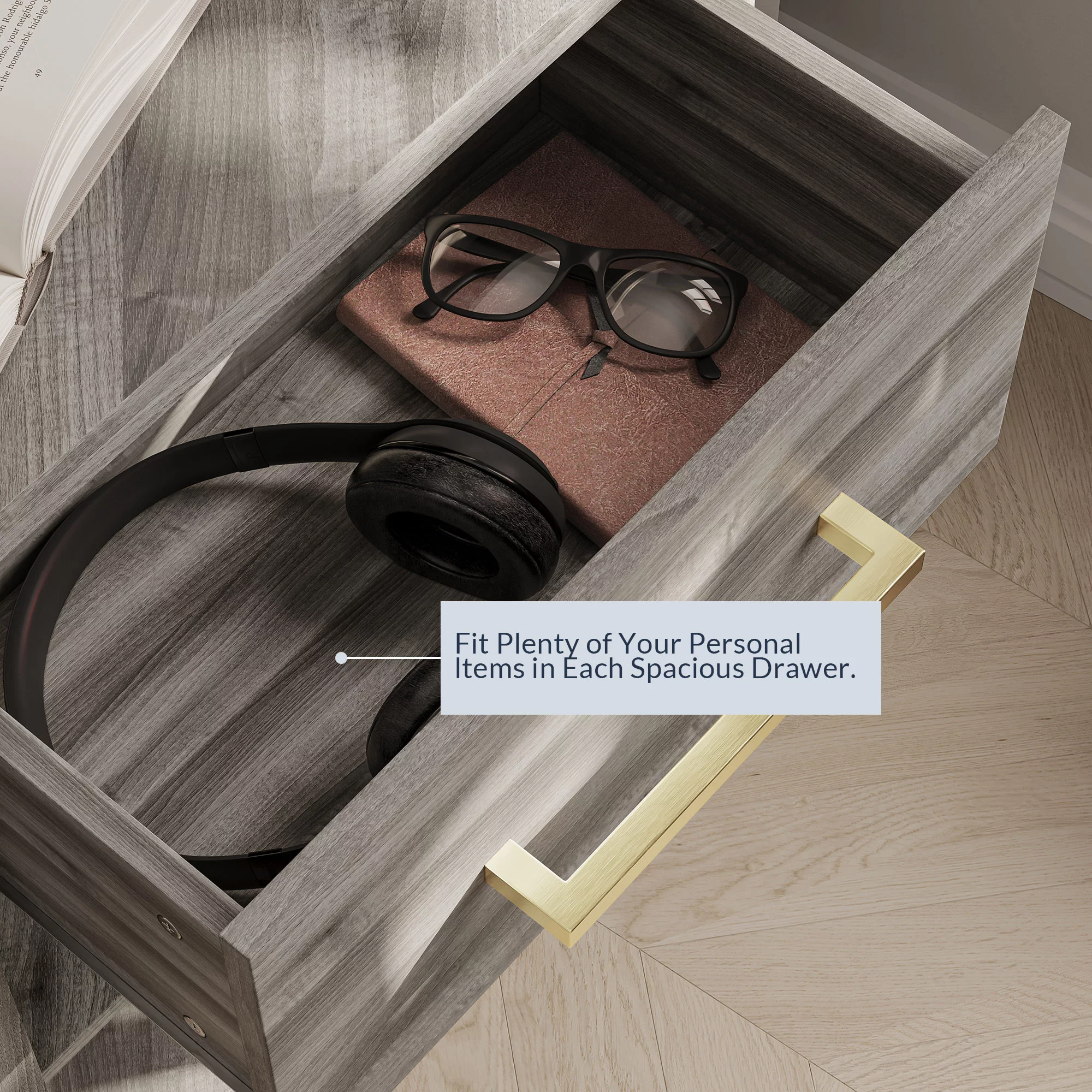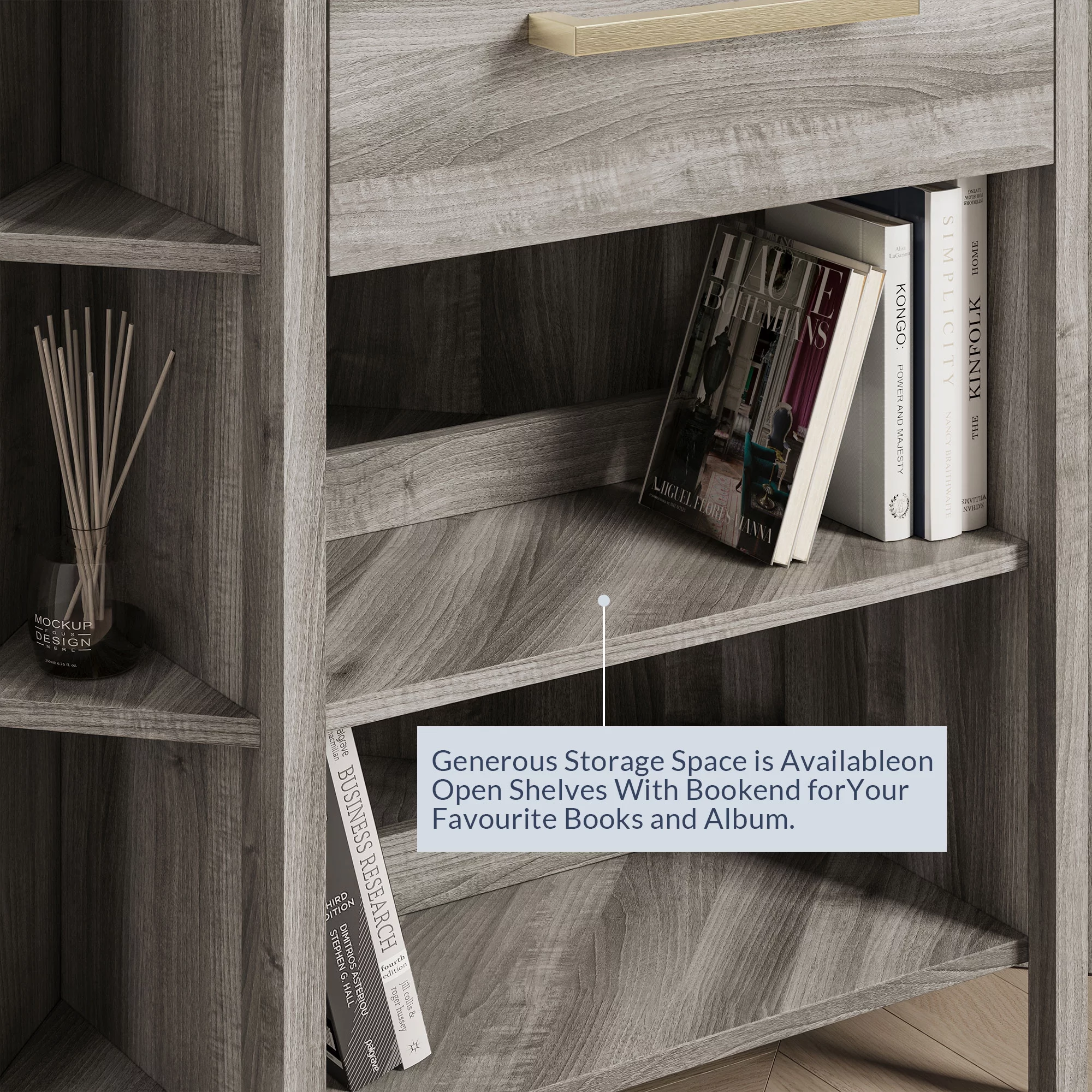 BELLEZE Corner Cabinet with Power Strip, Corner Table with 2 Storage Drawers and 10 Shelves, Store and Organize Home Furniture for Small Space - Sonoma (Gray) - Curated Treasures Market