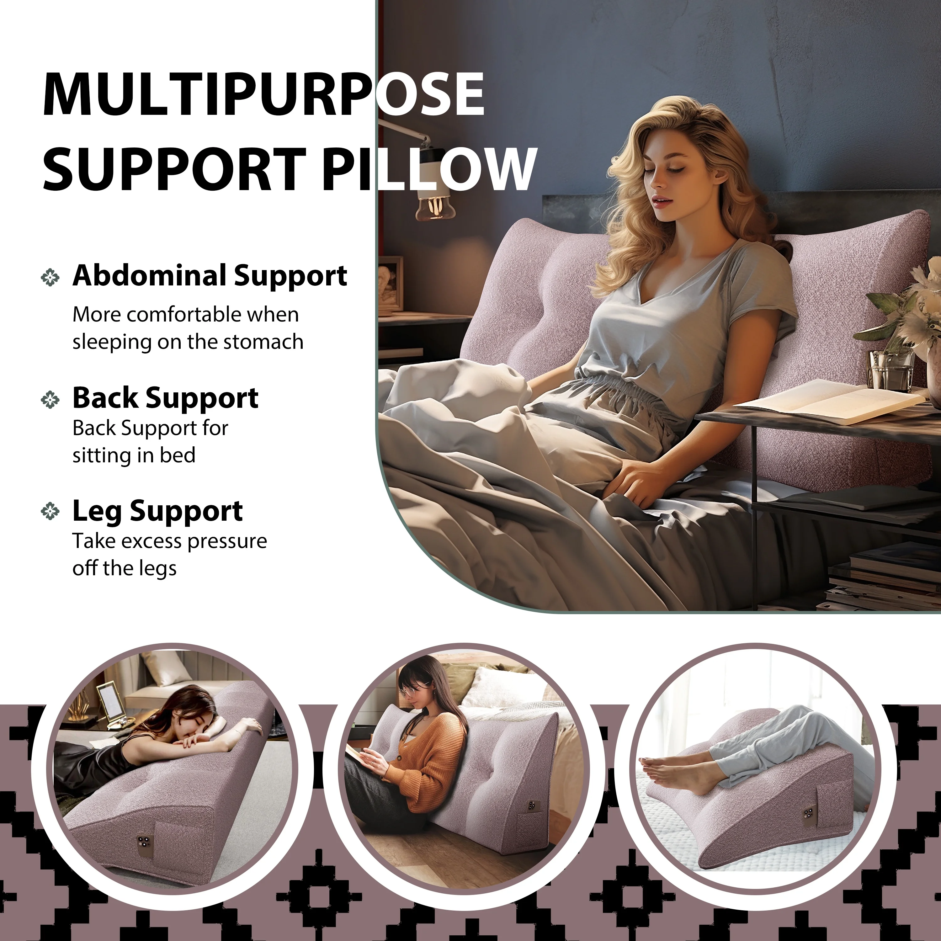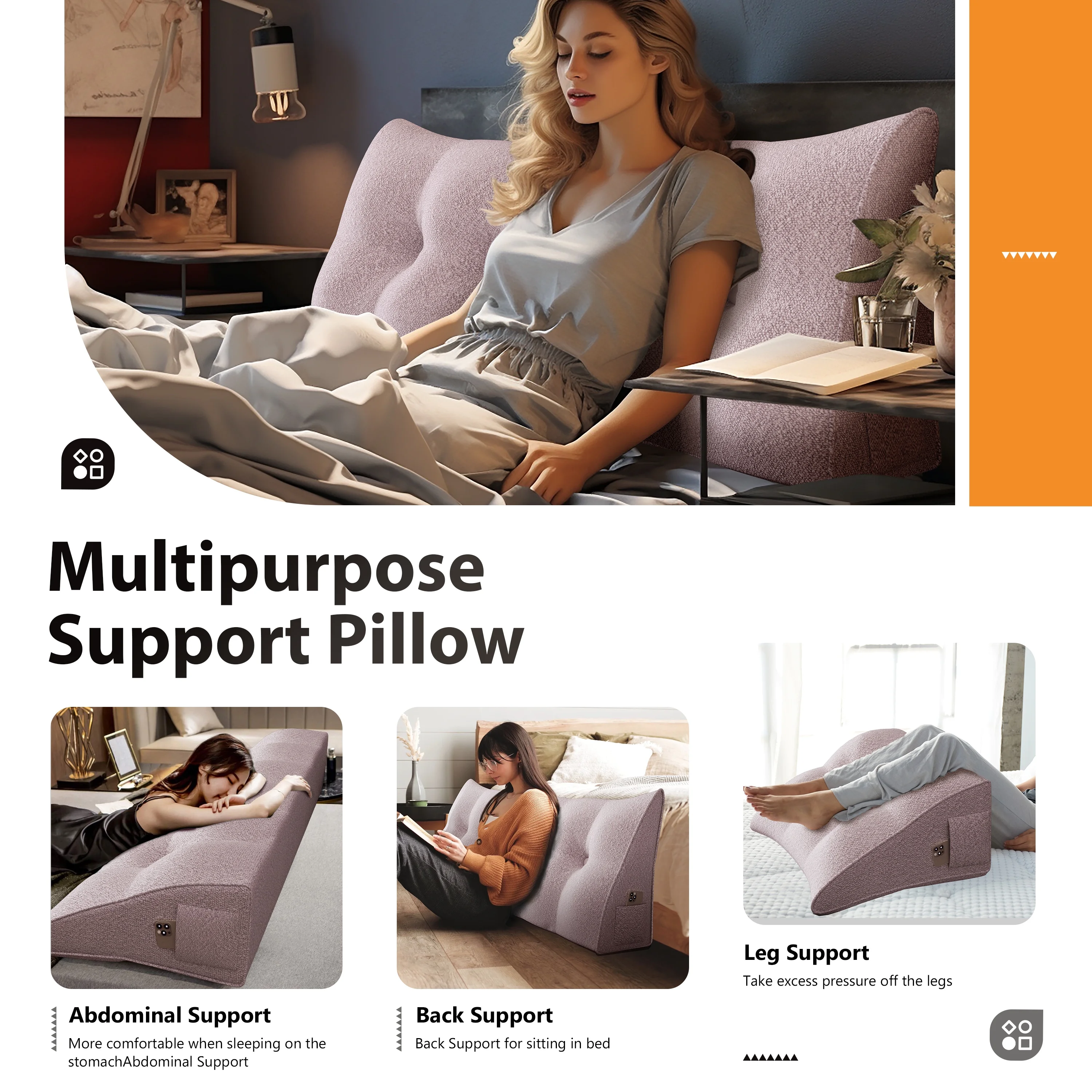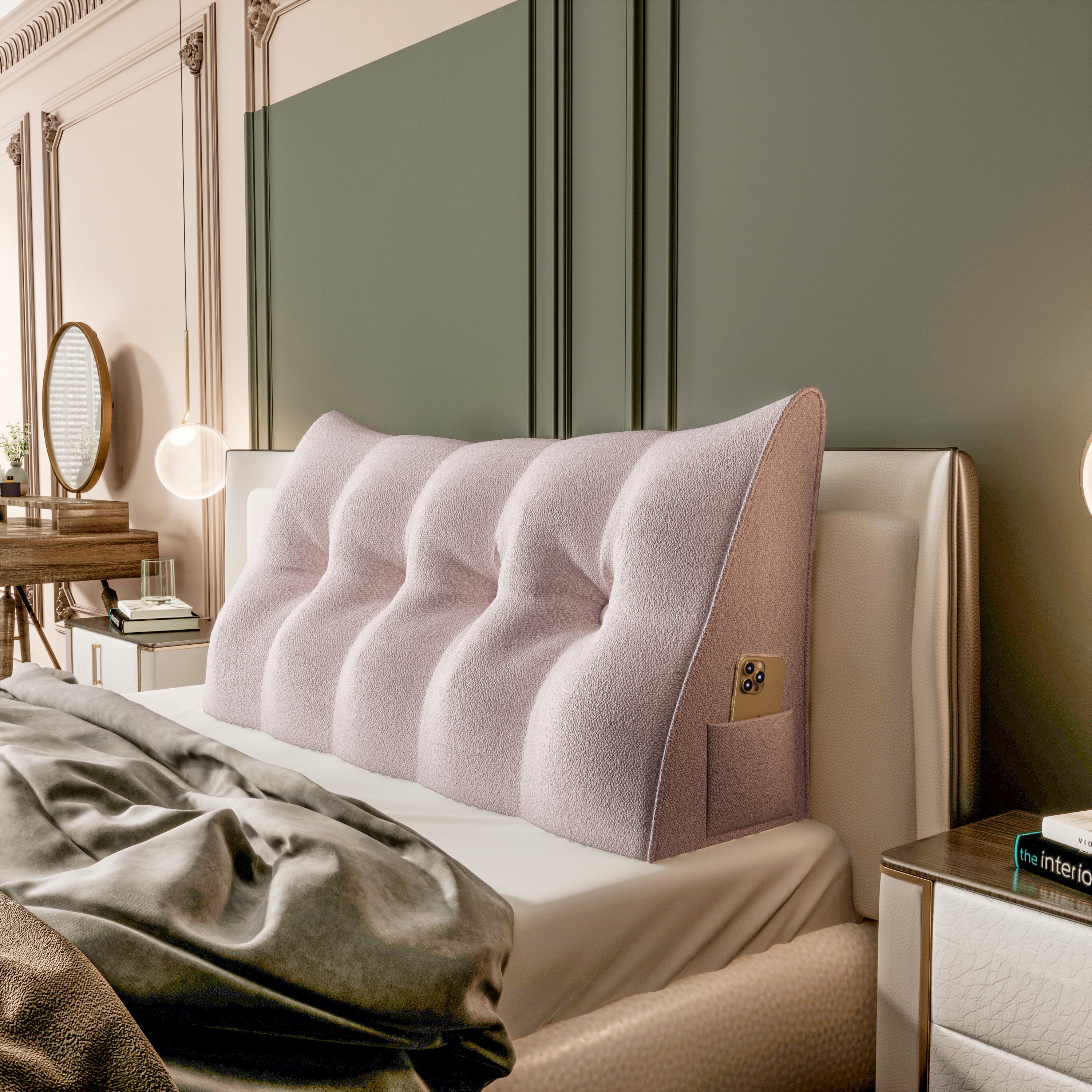 Johnear Large Rest Reading Wedge Pillows Bolster Headboard Backrest Pillow Velvet Cushion Lumber Backrest Daybed Positioning Sofa Bed Rest Reading Pillow Triangular Upholstered (Gray,Cal-King) - Curated Treasures Market