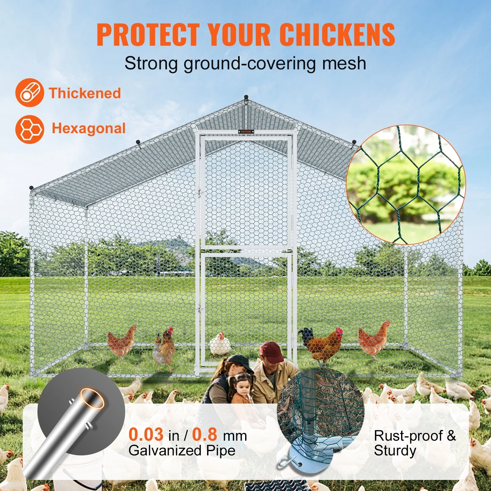 VEVOR Large Metal Chicken Coop with Run Walkin Chicken Coop for Yard with Waterproof Cover 6.6 x 9.8 x 6.6 ft - Peaked Roof - Curated Treasures Market