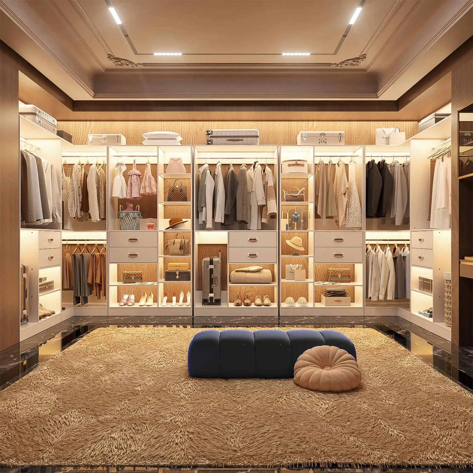 Homieasy Freestanding Closet System with 3 Sets, 110'' Reversible Stand-alone Wardrobe, 80'' Height Cloth Garment Organizer, Walk-in Closet with Hanging Rod, 71"Lx71"Wx80"H, Load 2500 LBS, White - Curated Treasures Market
