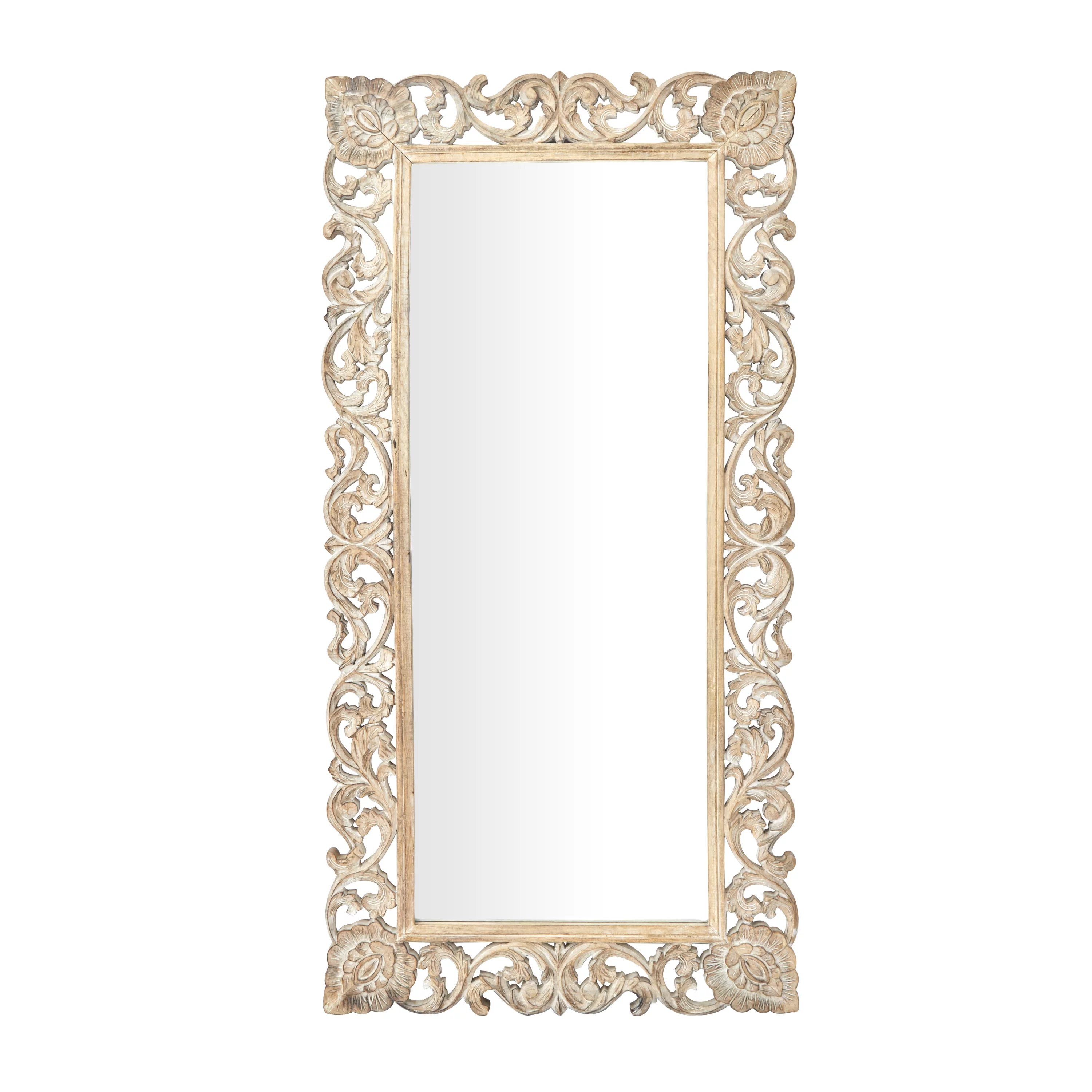 DecMode 36" x 72" Light Brown Intricately Carved Floral Wall Mirror - Curated Treasures Market