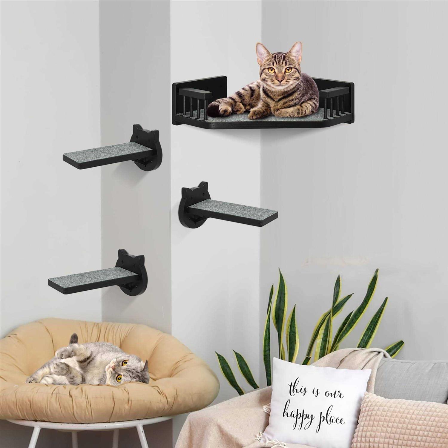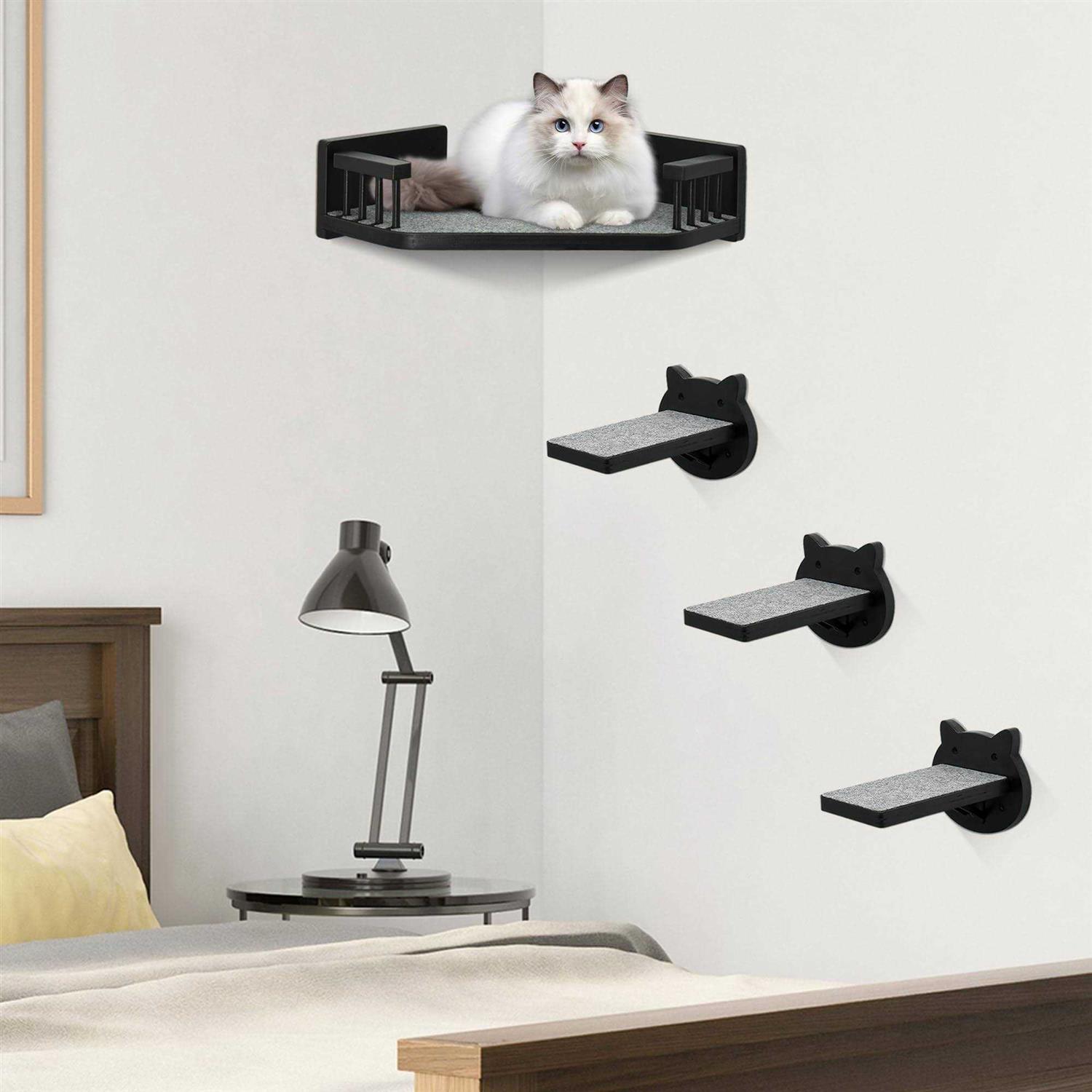 Cat Wall Shelves, Corner Cat Shelves and Perches for Wall Cat Wall Furniture Cat Shelf with 3 Steps