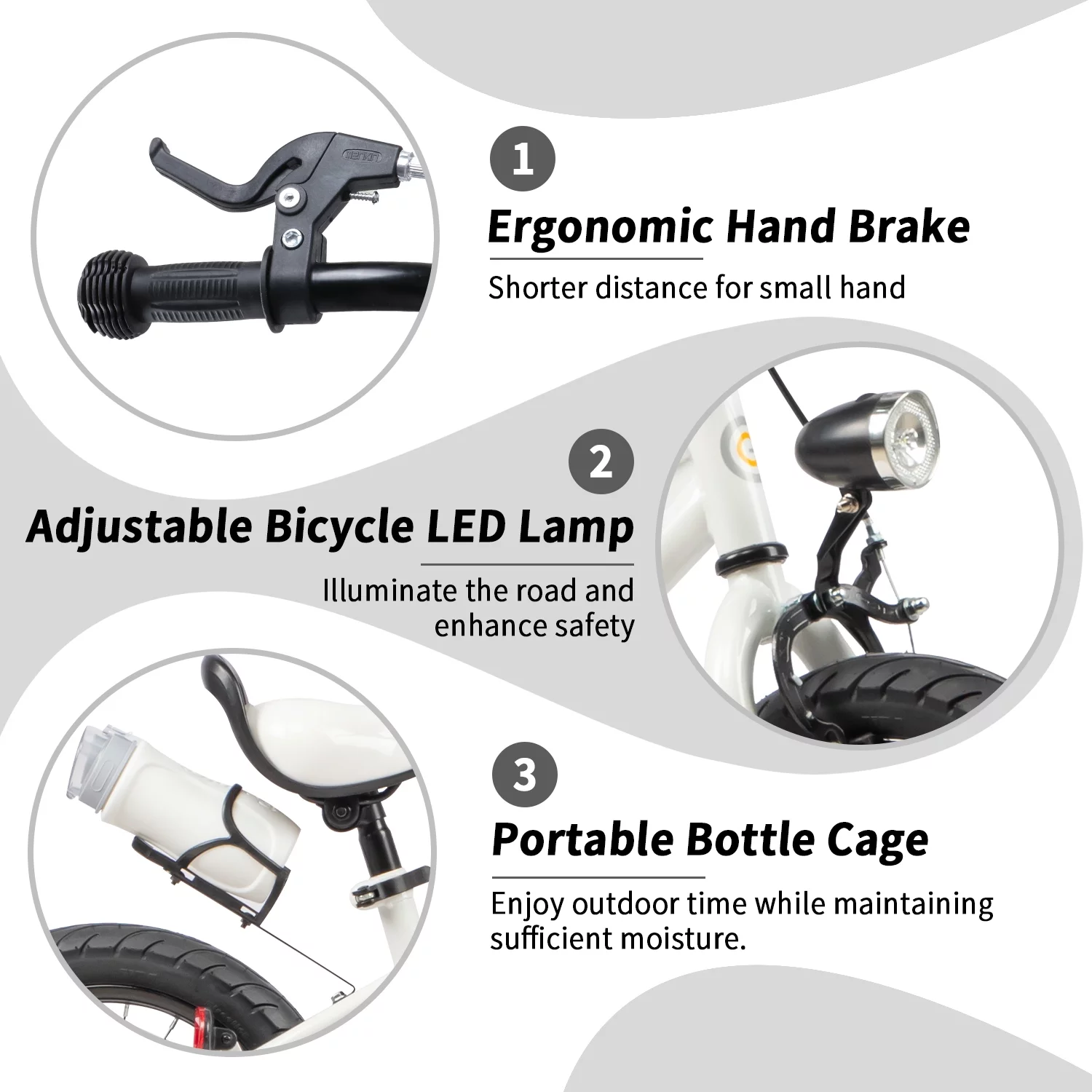 Glerc 12 inch Toddler and Kids Bike for 2-4 Years Old Boys & Girls, White