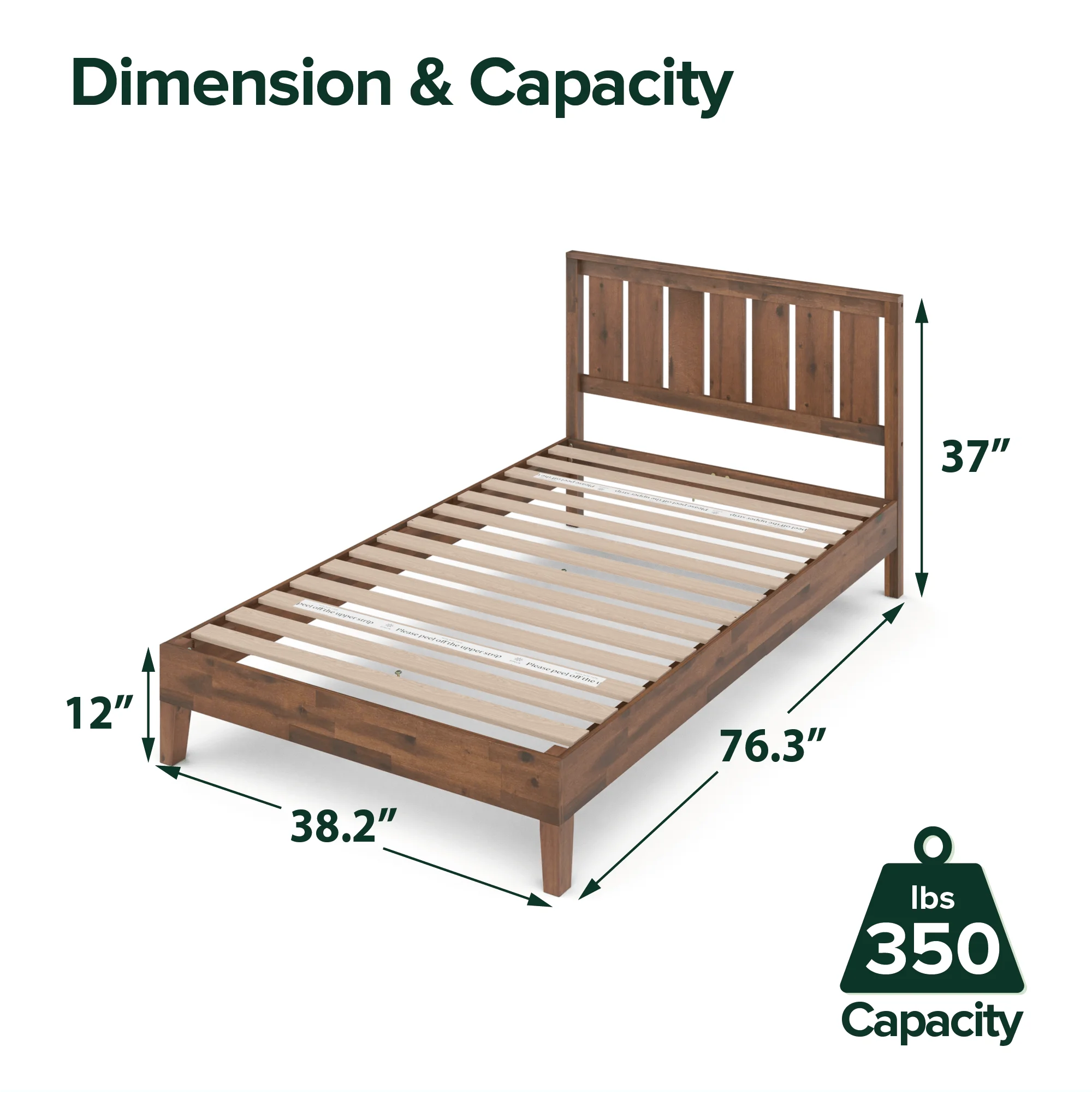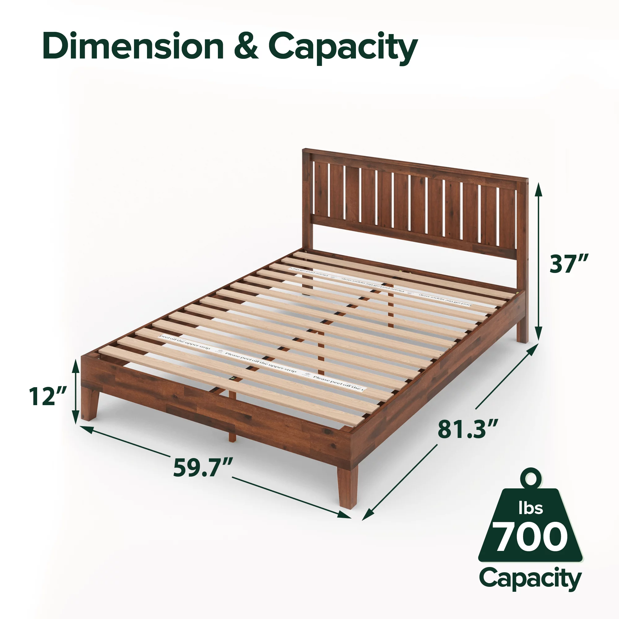 Zinus Vivek 37 Deluxe Wood Platform Bed Frame with Headboard, Queen