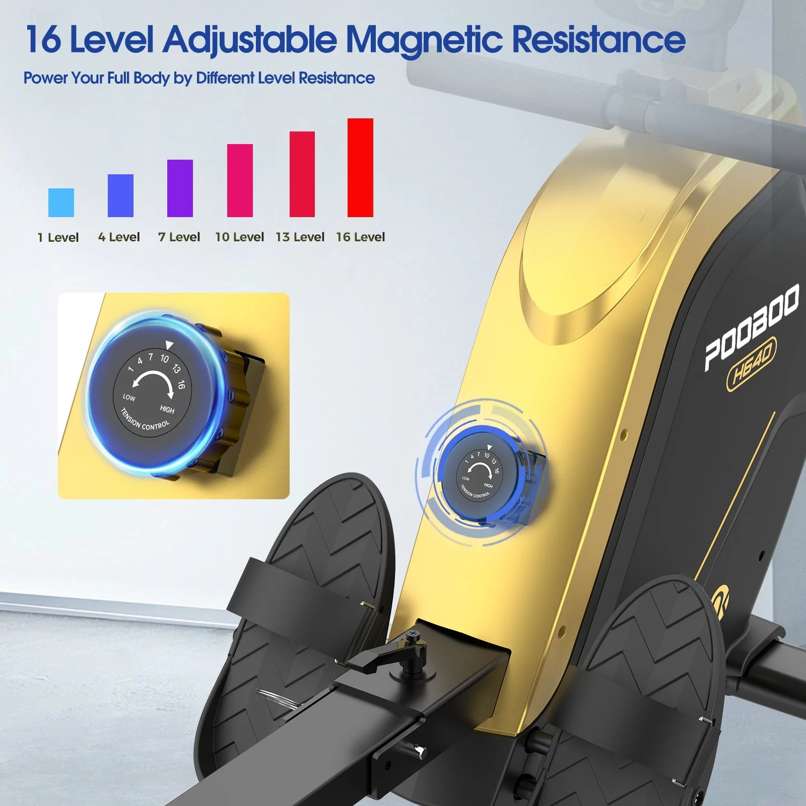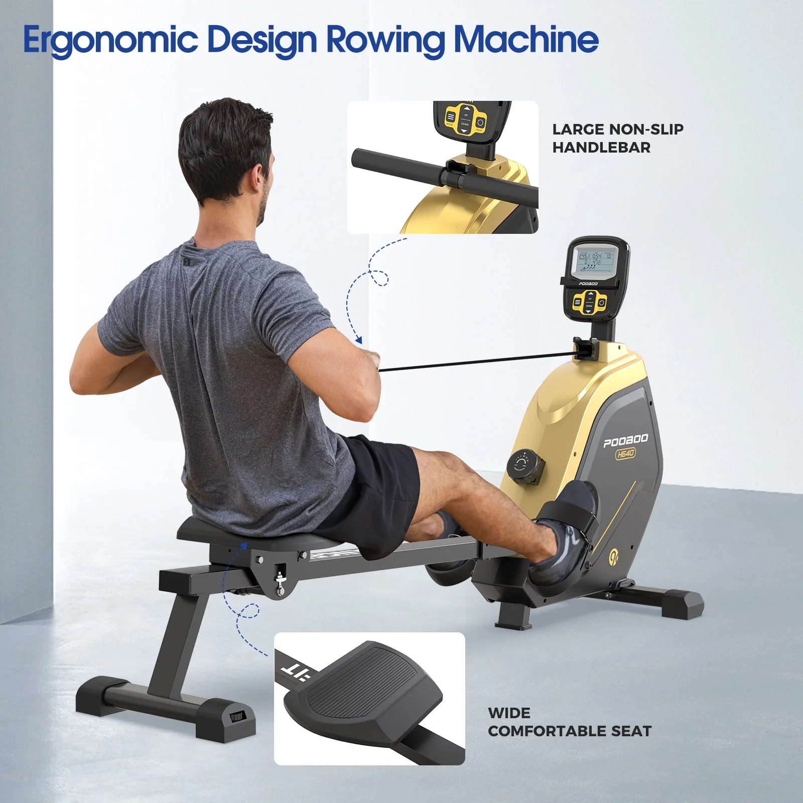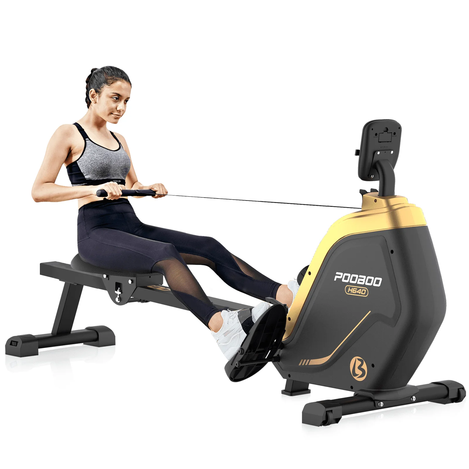 Pooboo Foldable Rowing machine Indoor Home Stationary Magnetic Rower Machine with 16 Level Resistance Digital Monitor & Transport Wheels