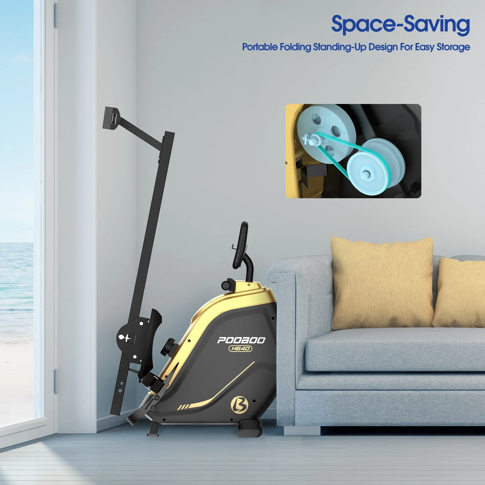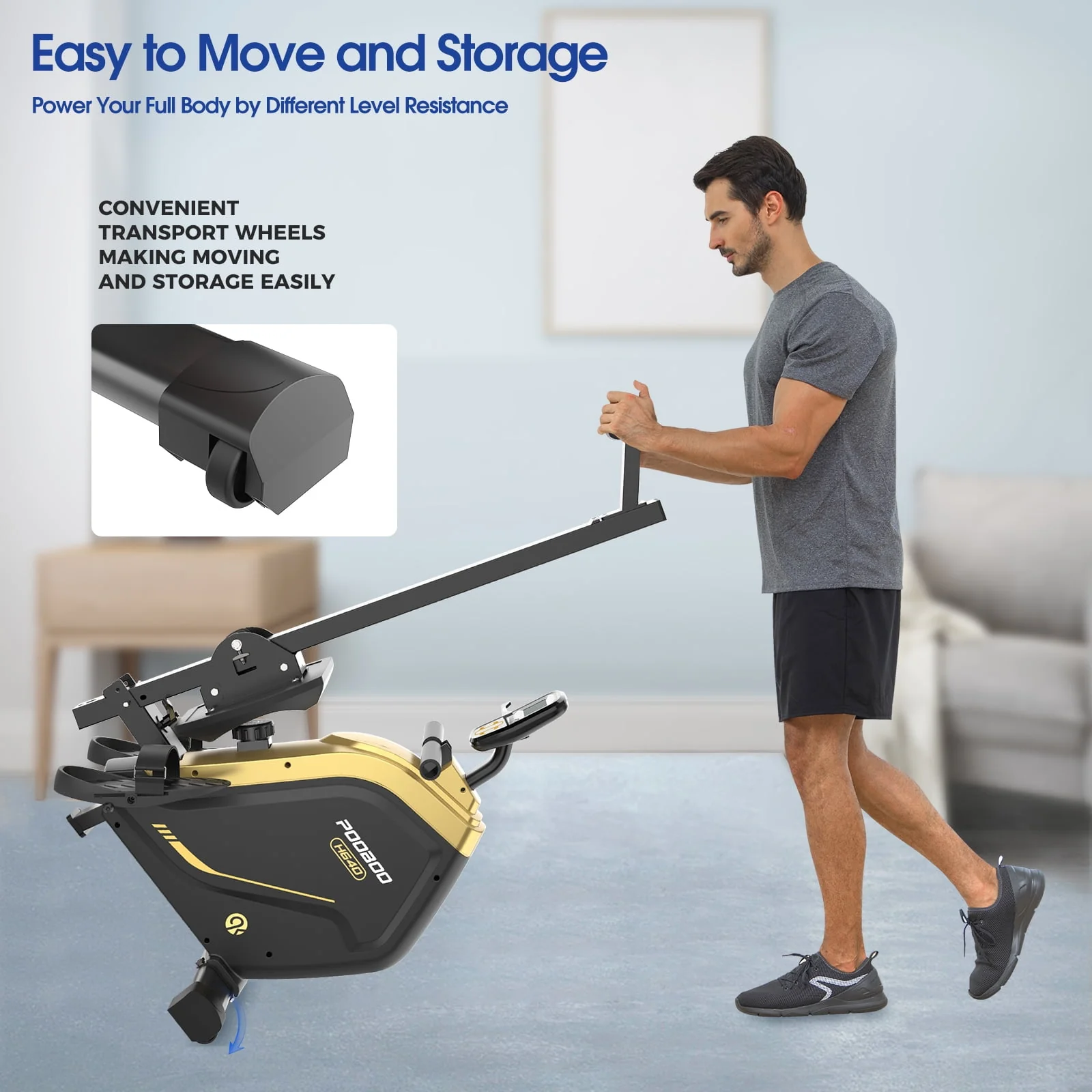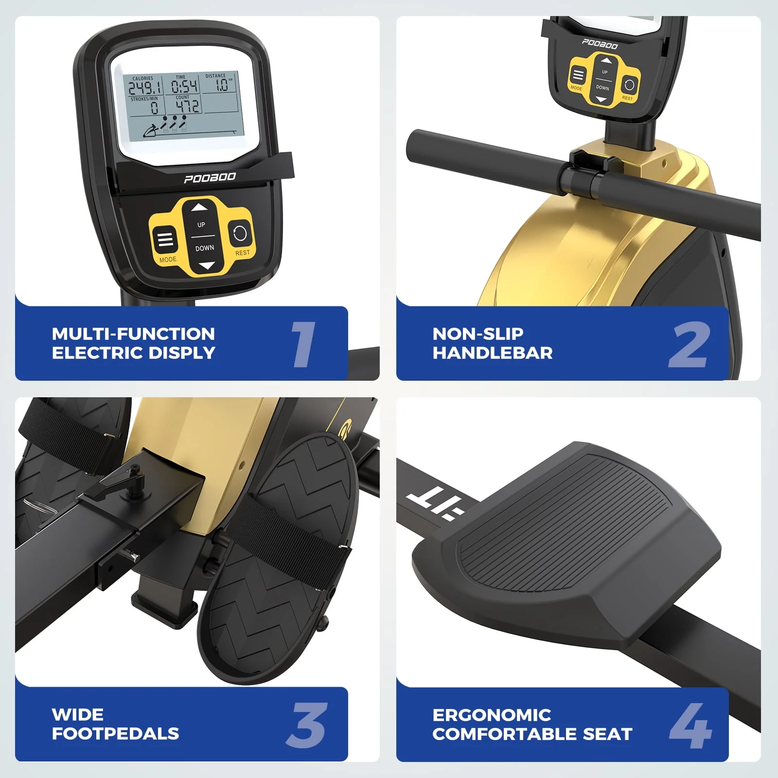 Pooboo Foldable Rowing machine Indoor Home Stationary Magnetic Rower Machine with 16 Level Resistance Digital Monitor & Transport Wheels