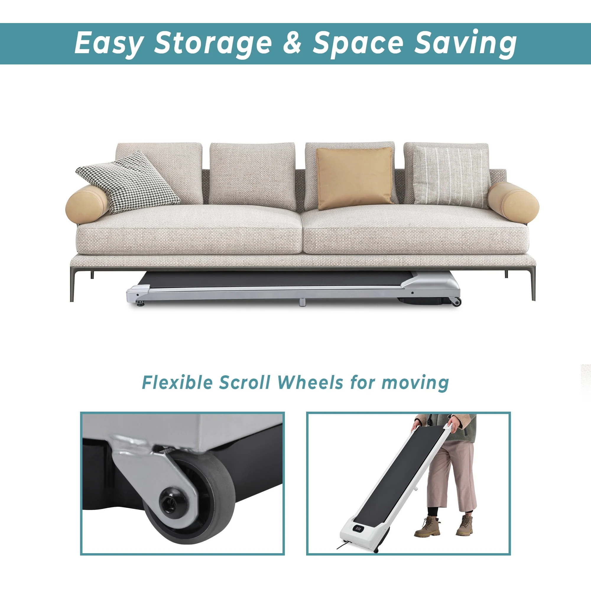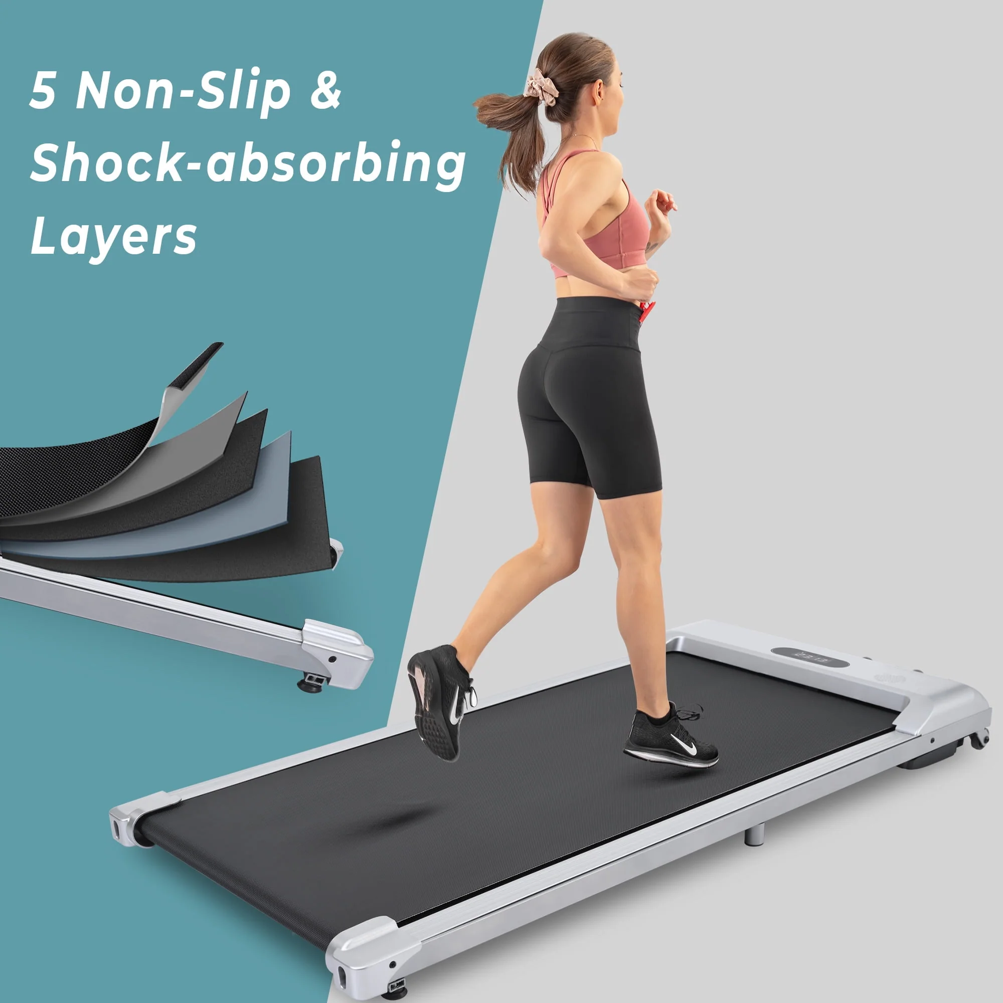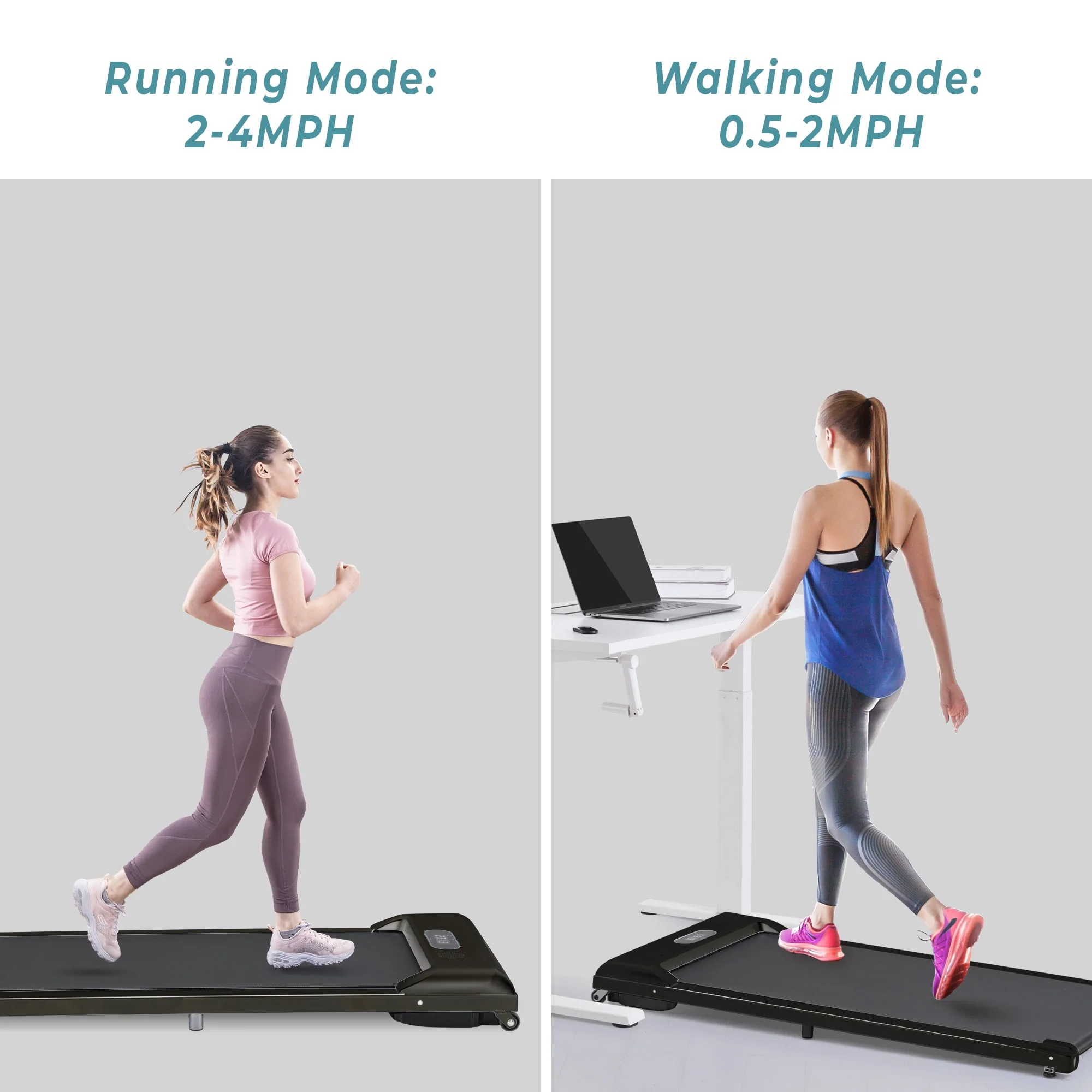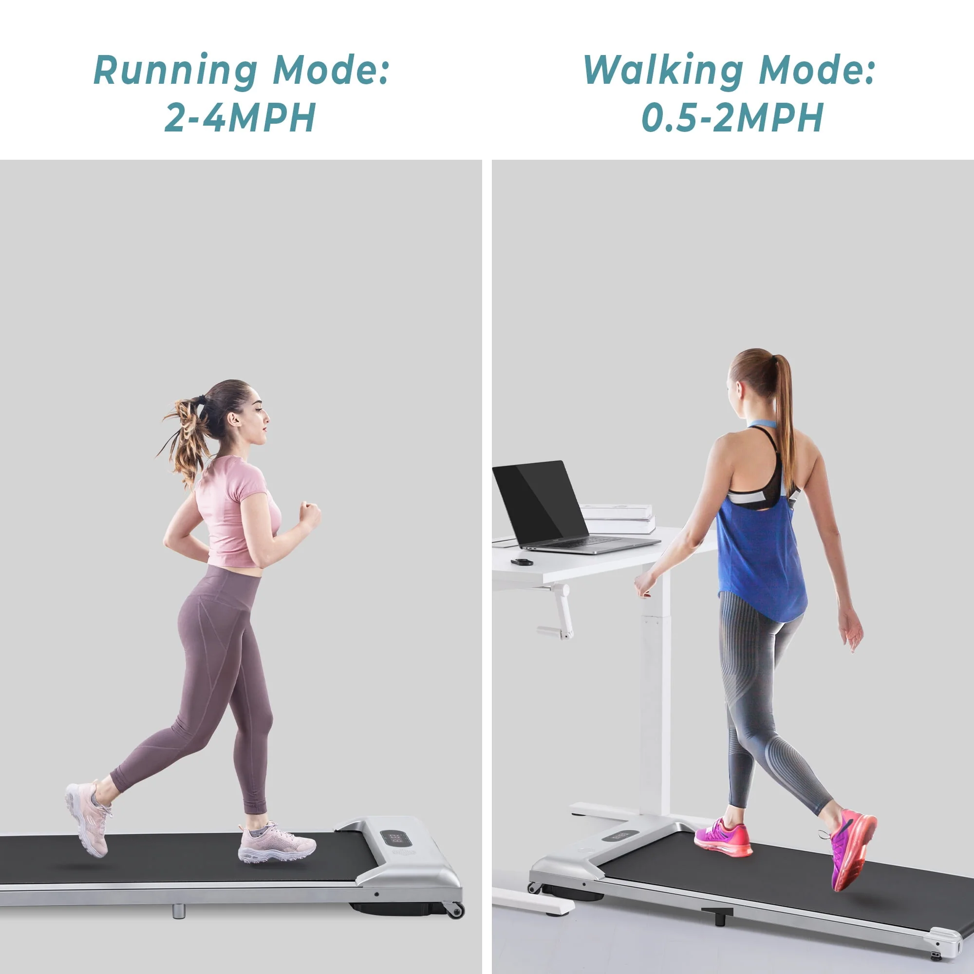 2 IN 1 Under Desk Treadmill 2.5Hp, Ultra-Quiet with Bluetooth App and Speaker Remote Control- Electric Sport Walking Pad Jogging for Home/Office Use, 260 lb, Pink