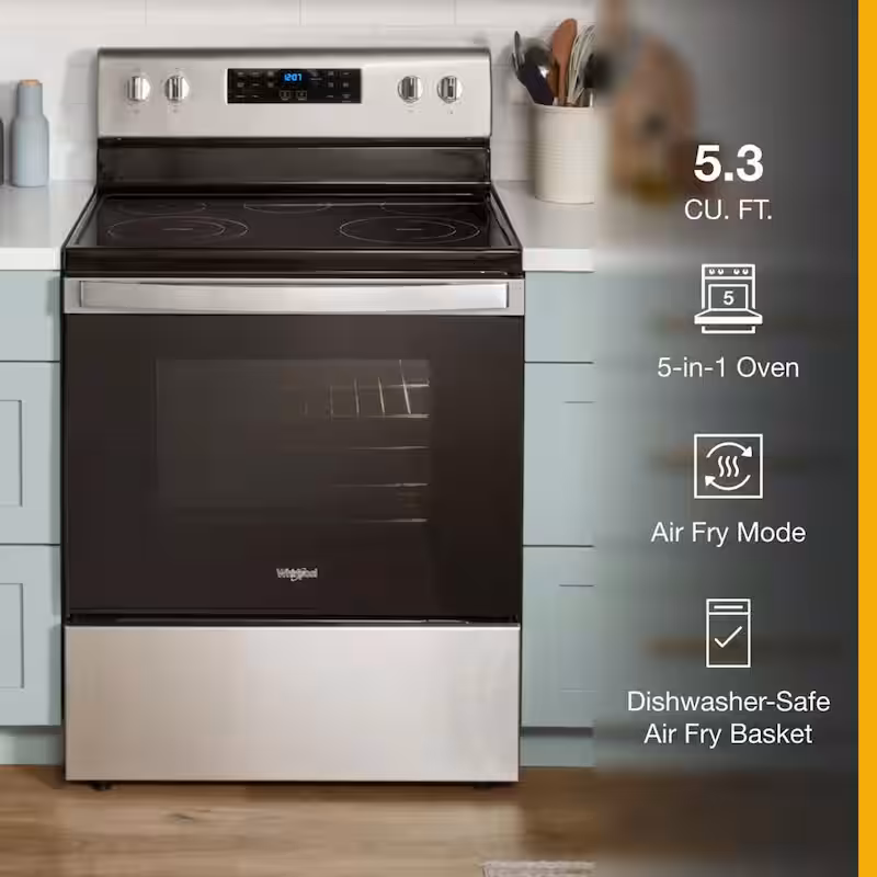 5.3 cu. ft. Single Oven Electric Range with Air Fry Oven in Stainless Steel