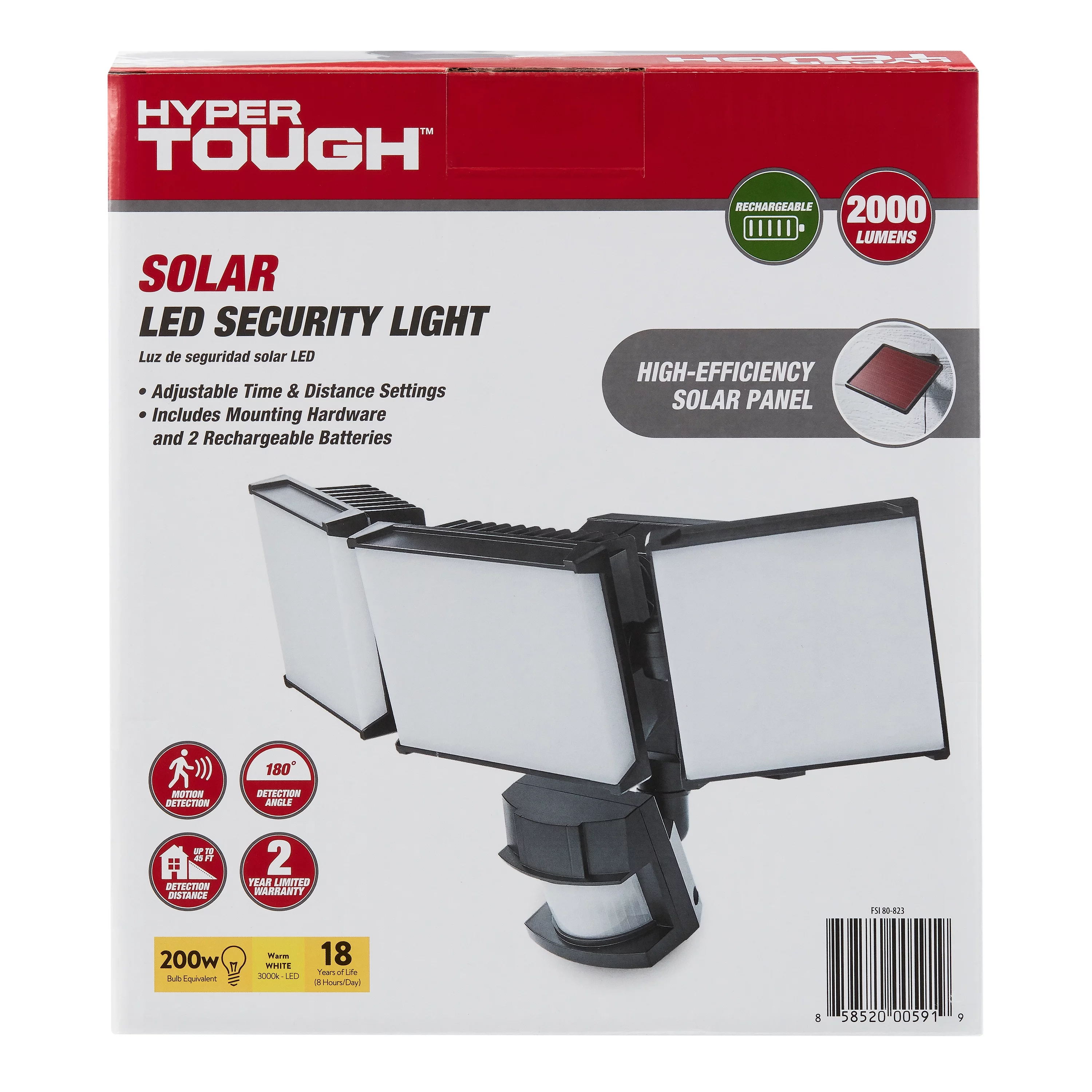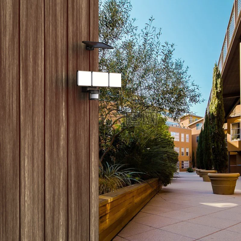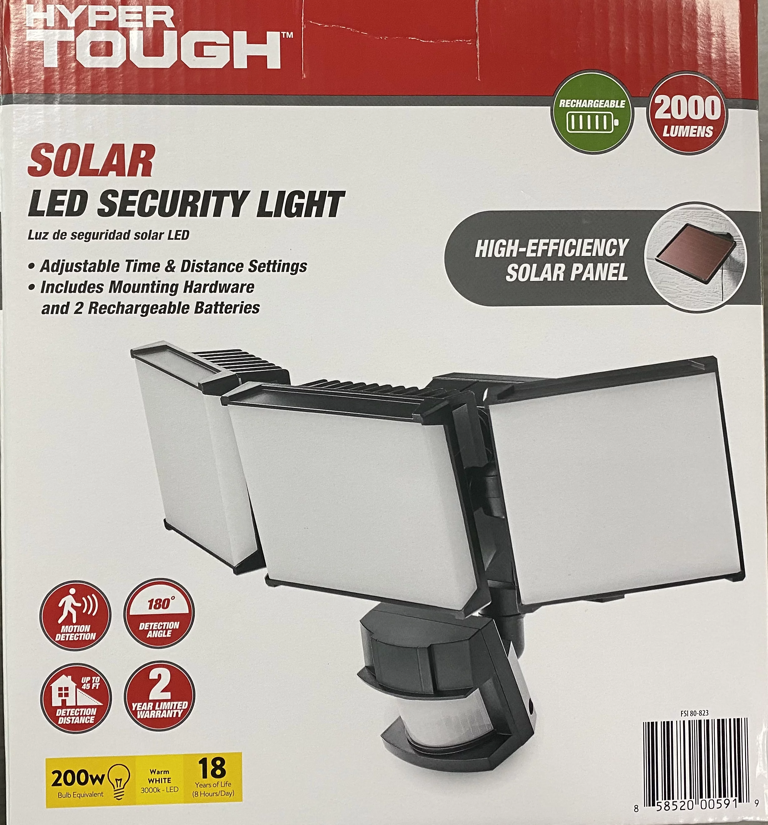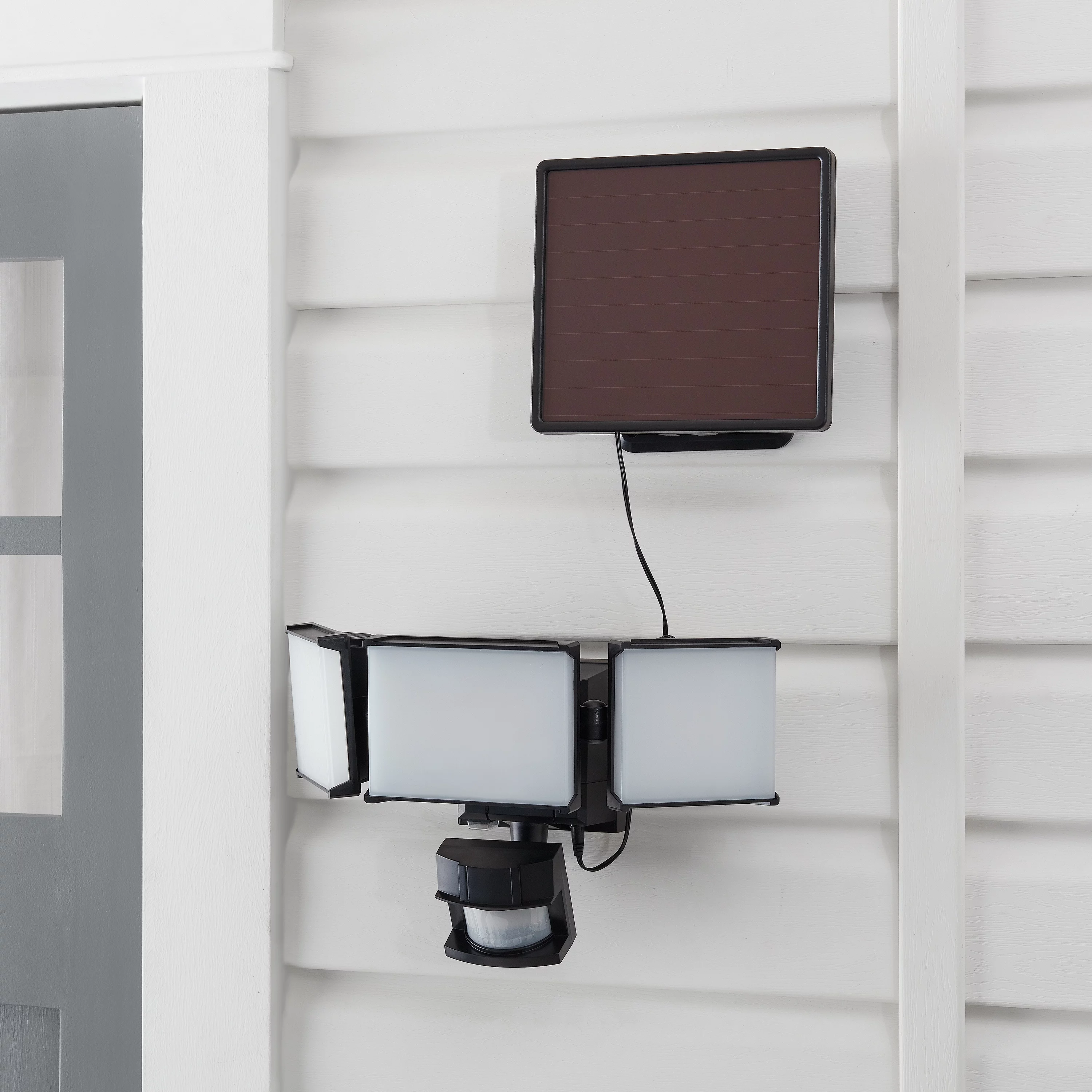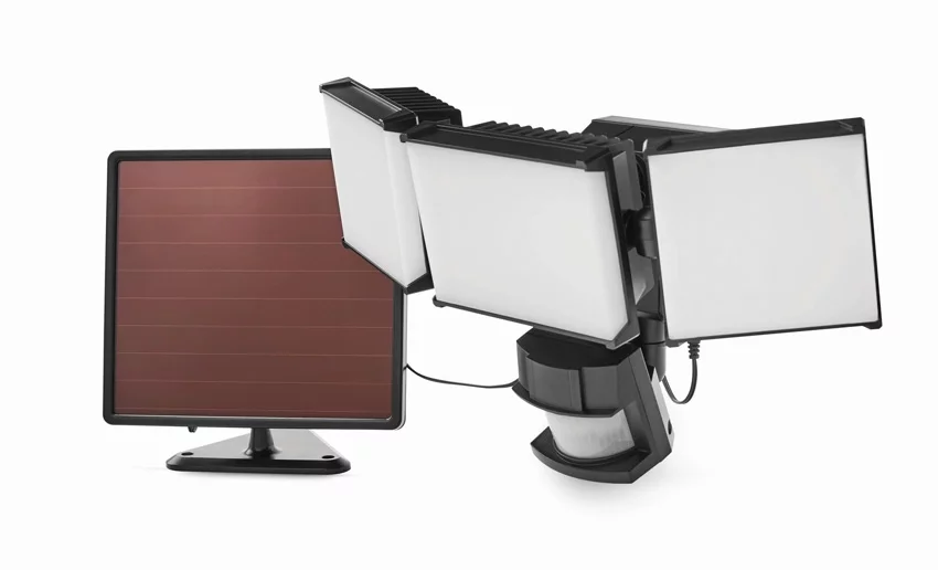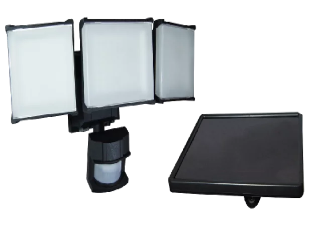 Hyper Tough Solar Three Head LED Motion Sensing Security Flood Light, Outdoor, Black, 2000 Lumen