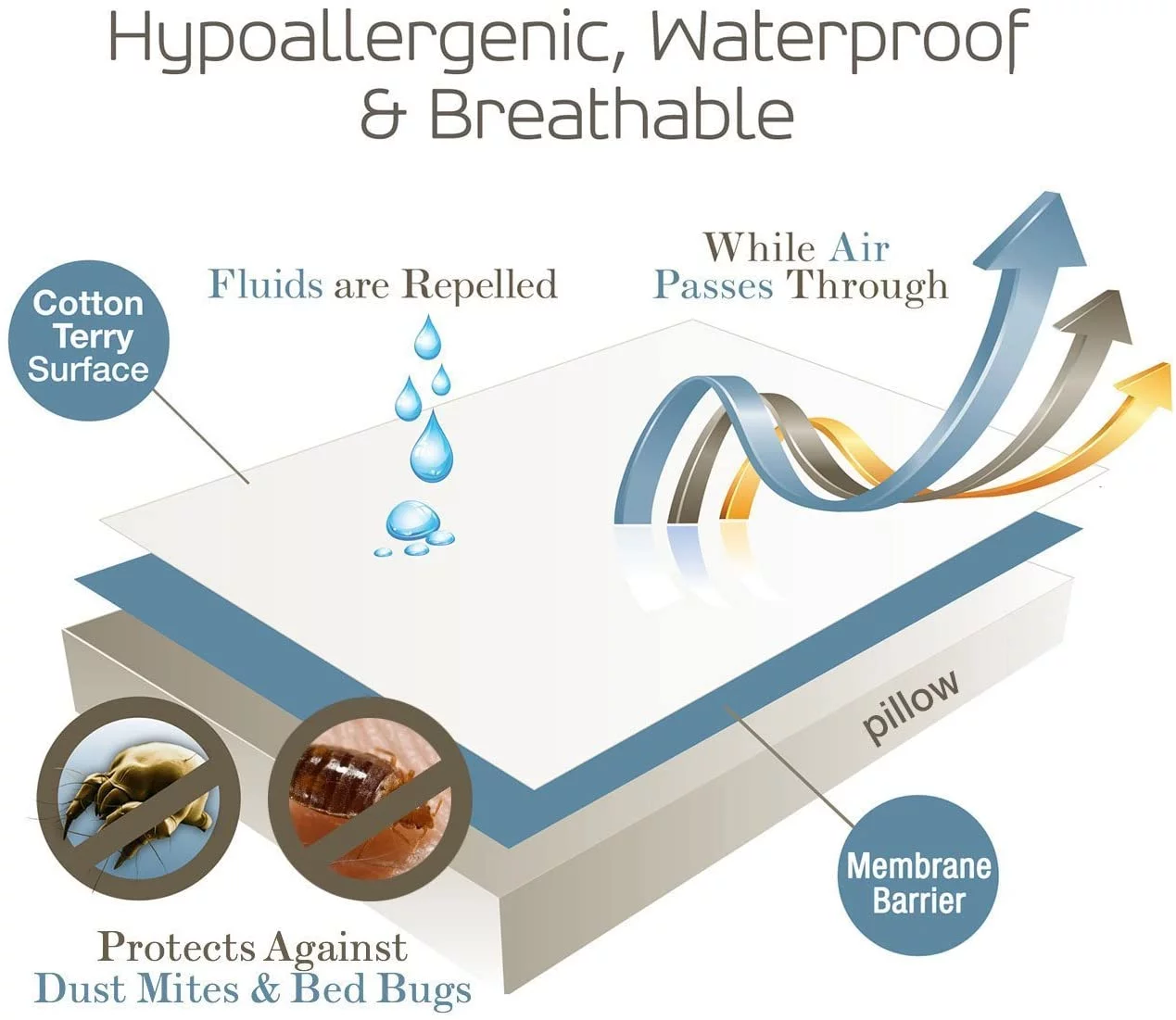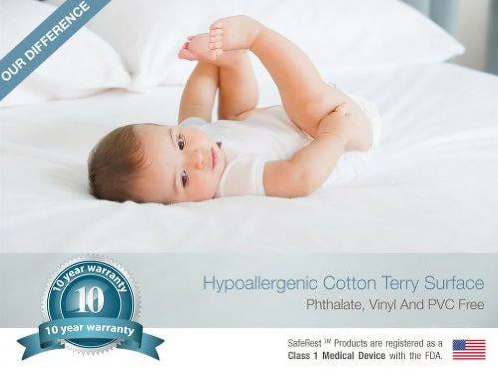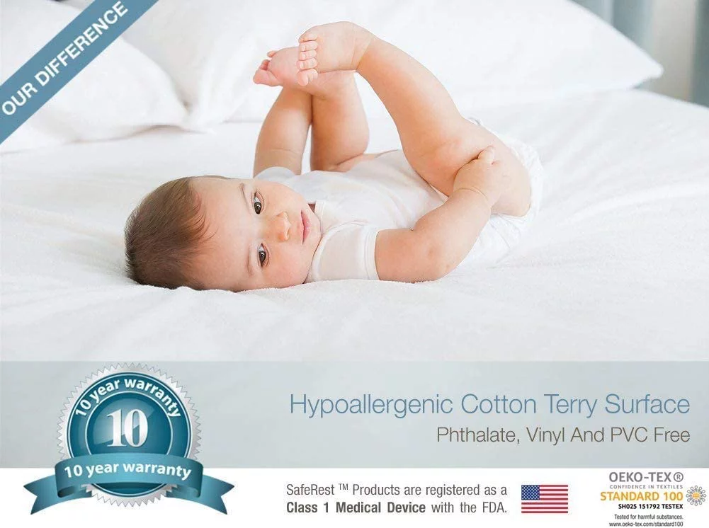 SafeRest Premium Hypoallergenic Bed Bug Proof Zippered Waterproof Pillow Protector (1) Queen Size
