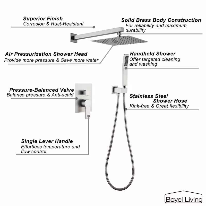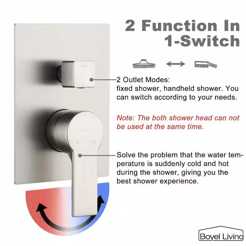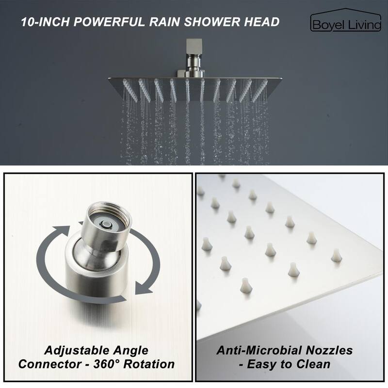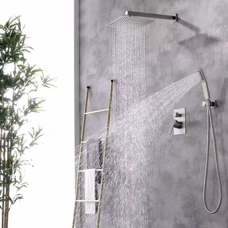 1-Spray Patterns with 2.5 GPM 10 in. Wall Mount Dual Shower Heads with Pressure Balance Valve in Brushed Nickel