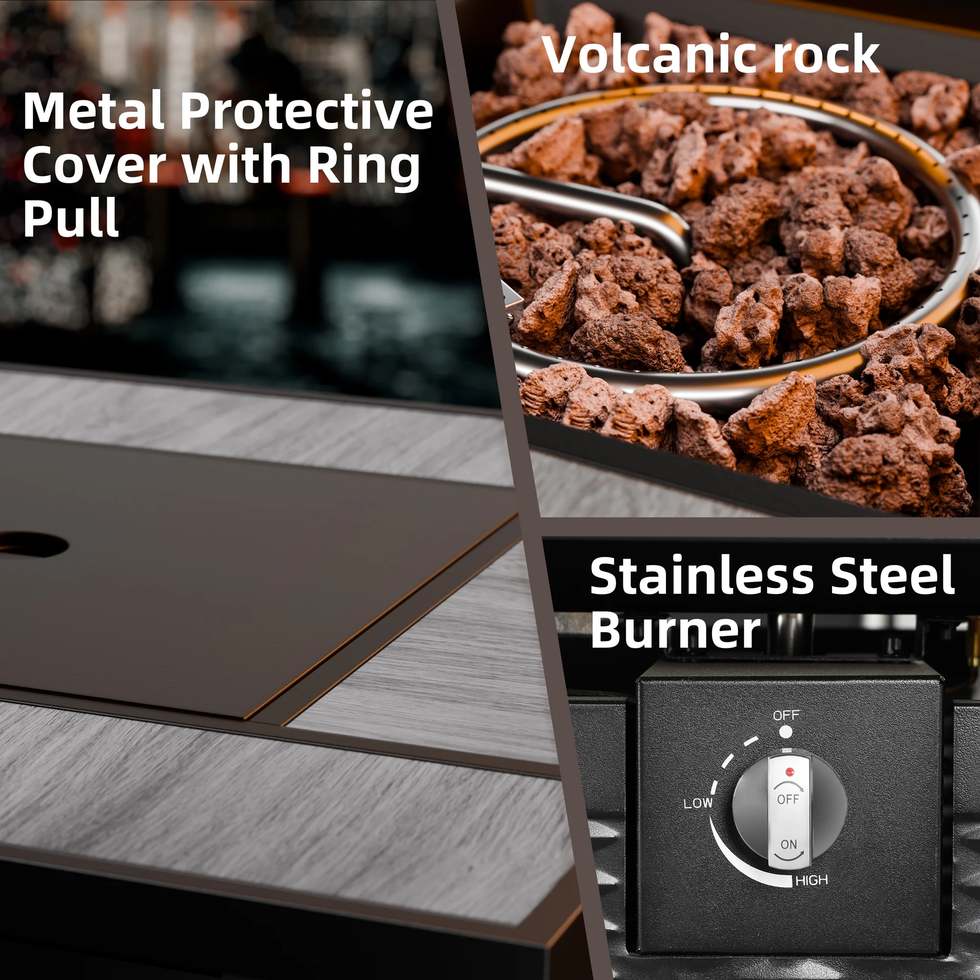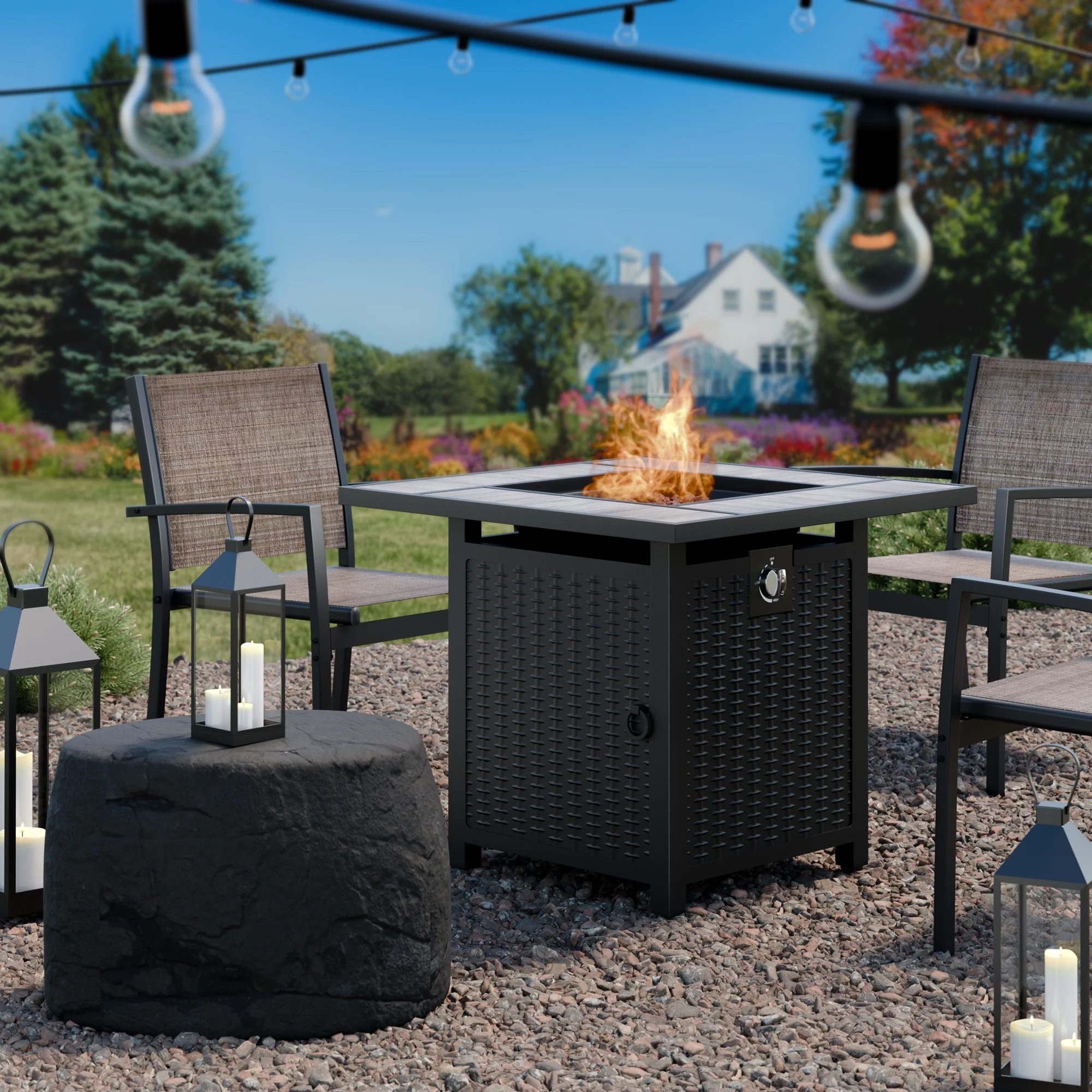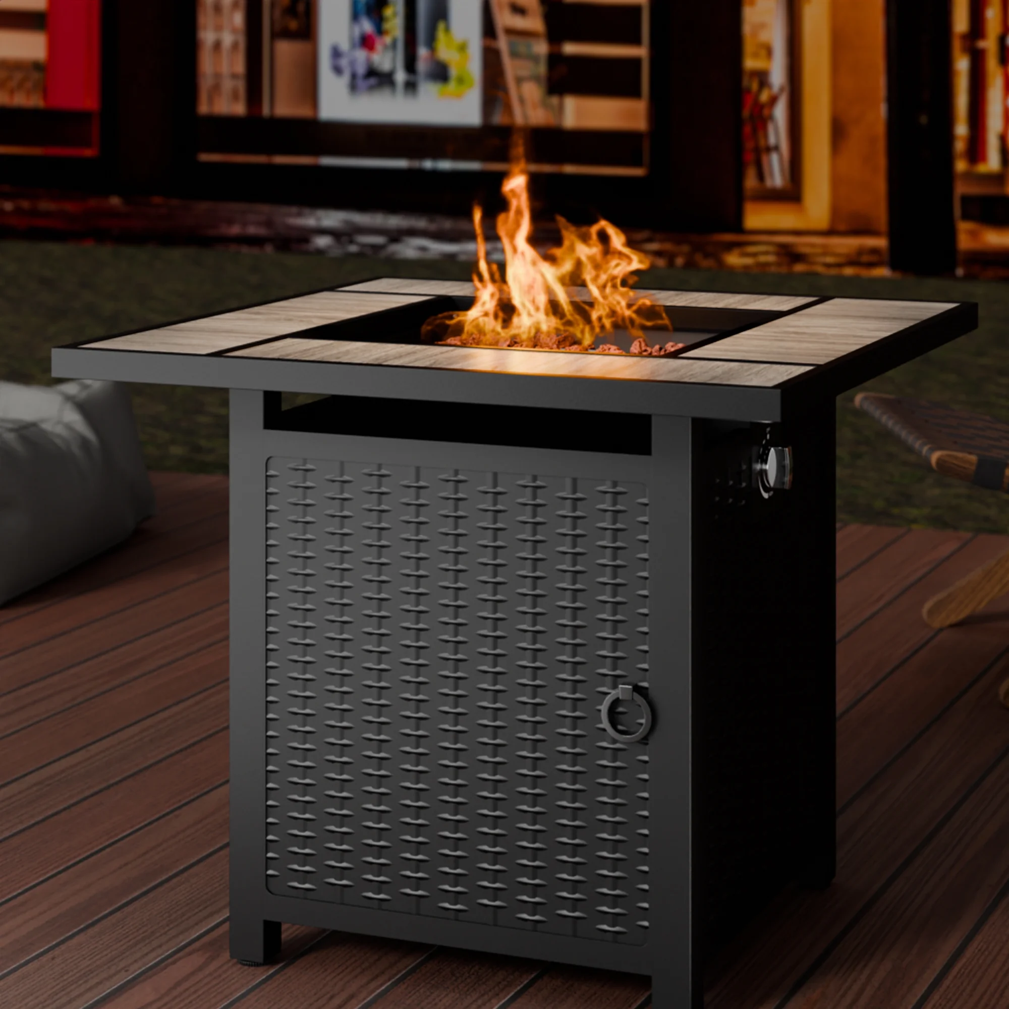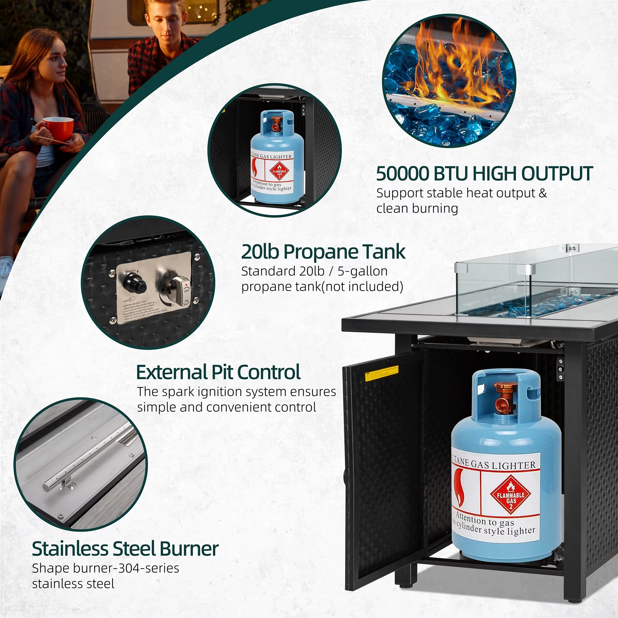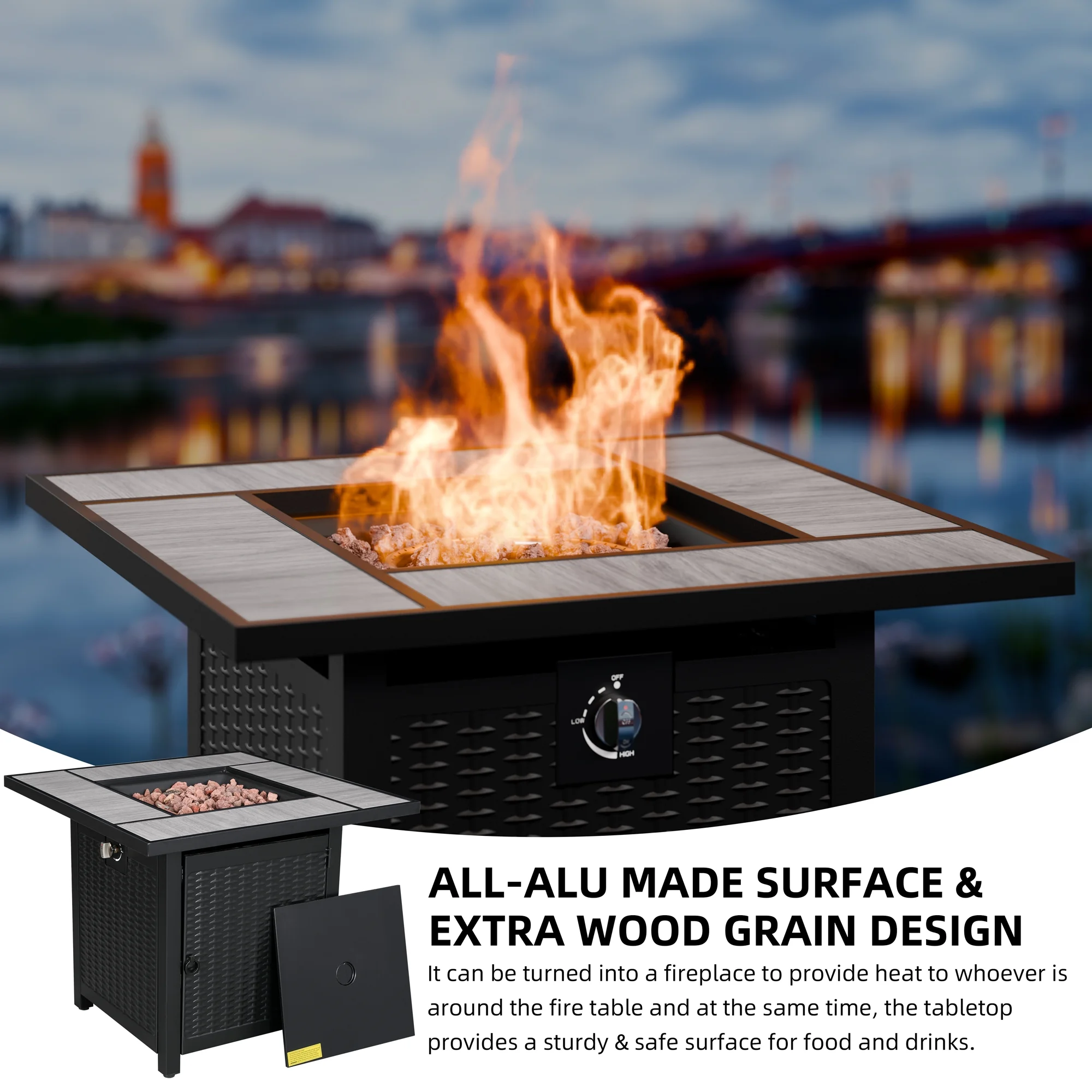 Walsunny 45 Propane Fire Pit Table 50,000 BTU Steel Gas Fire Pit with Removable Lid & Waterproof Cover and Tables