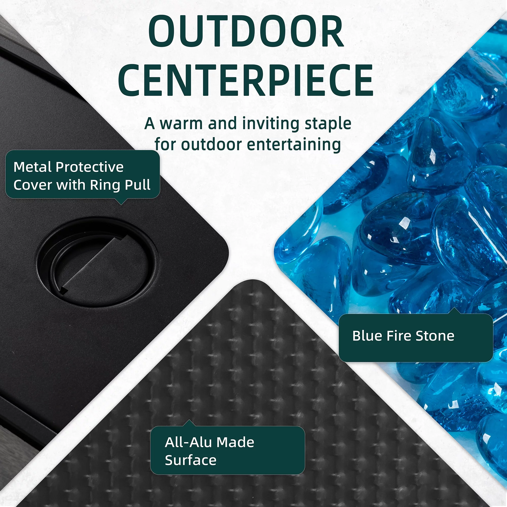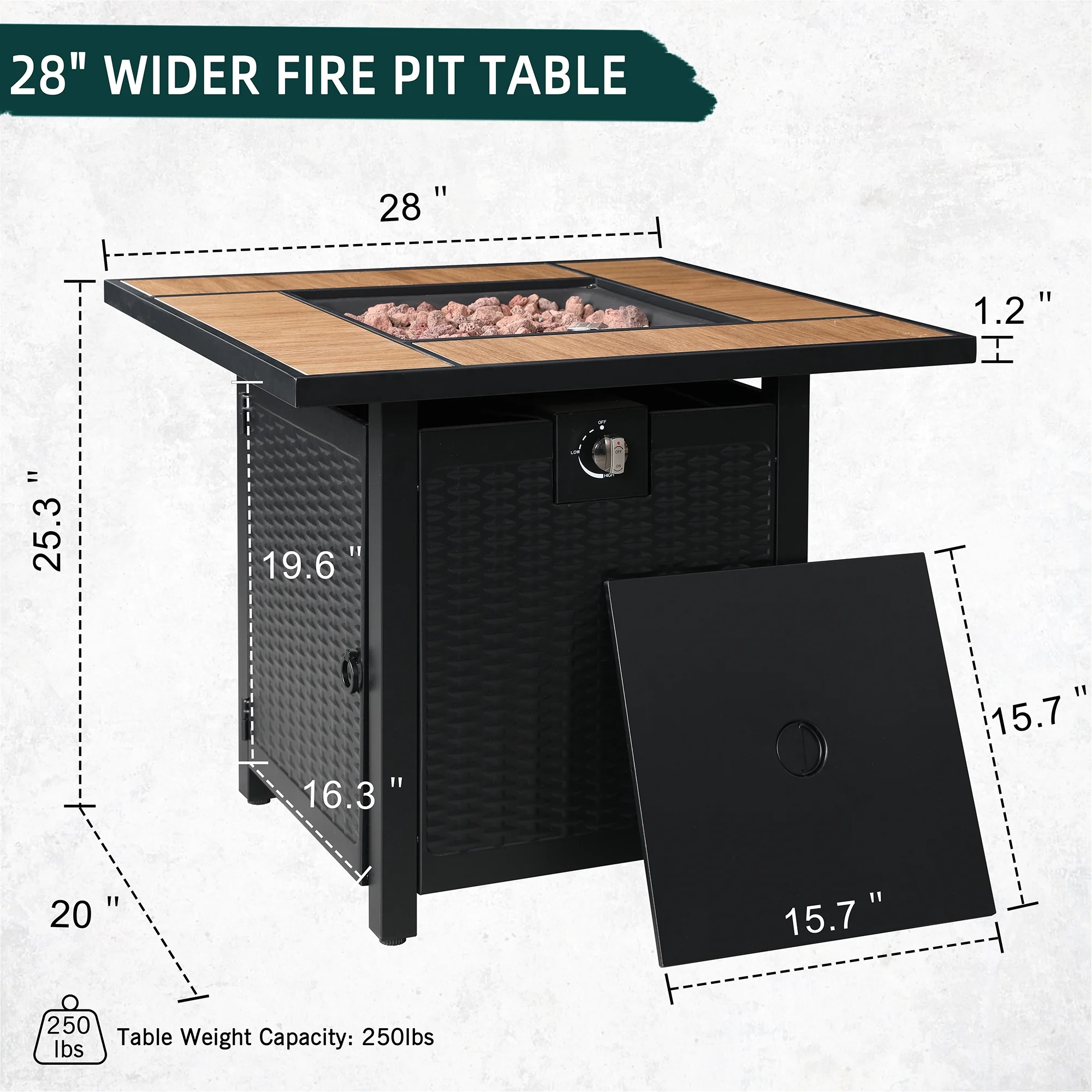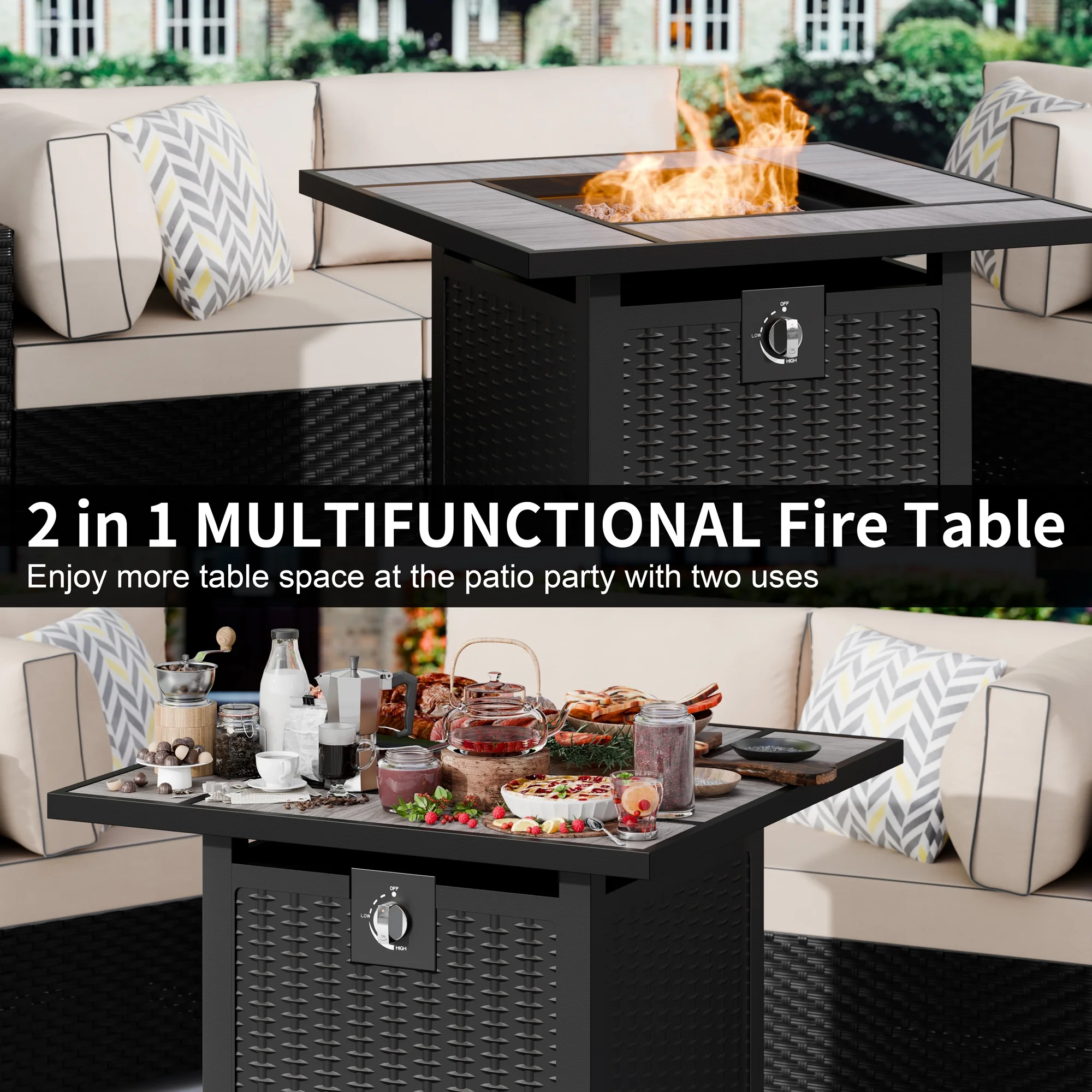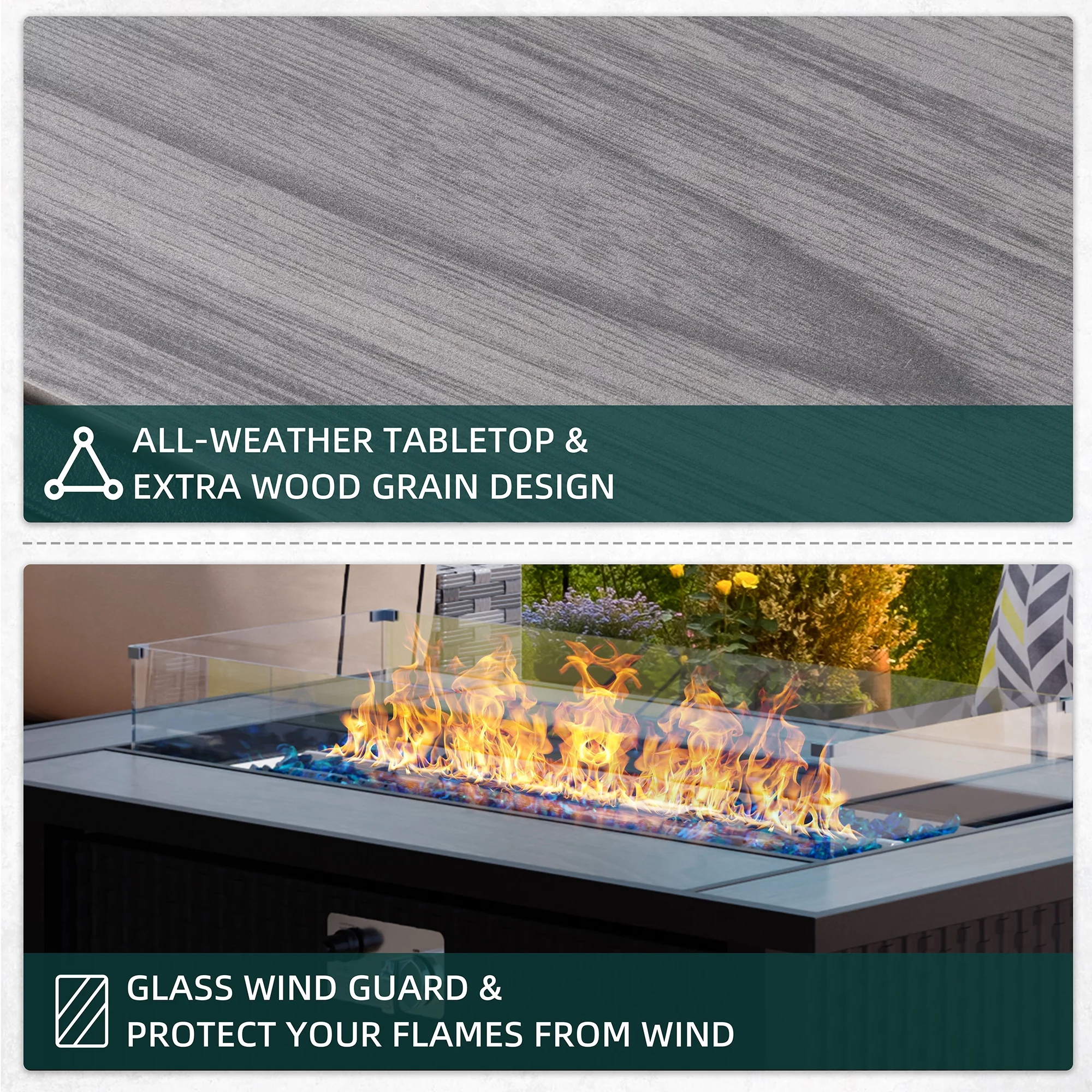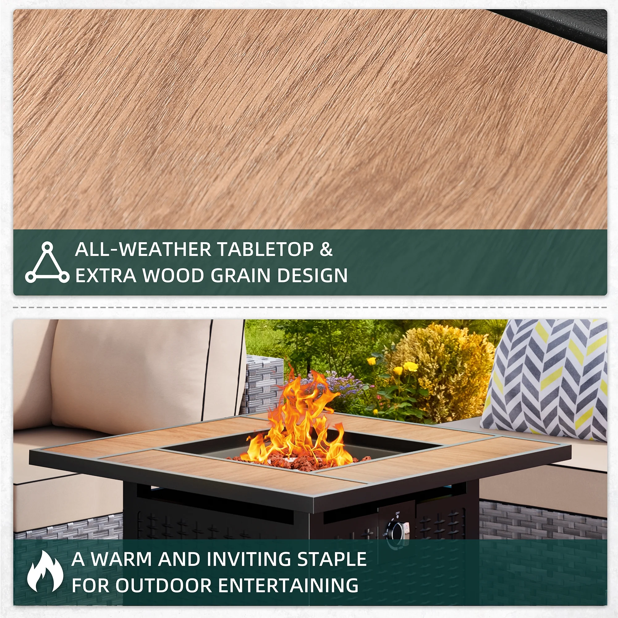 Walsunny 45 Propane Fire Pit Table 50,000 BTU Steel Gas Fire Pit with Removable Lid & Waterproof Cover and Tables