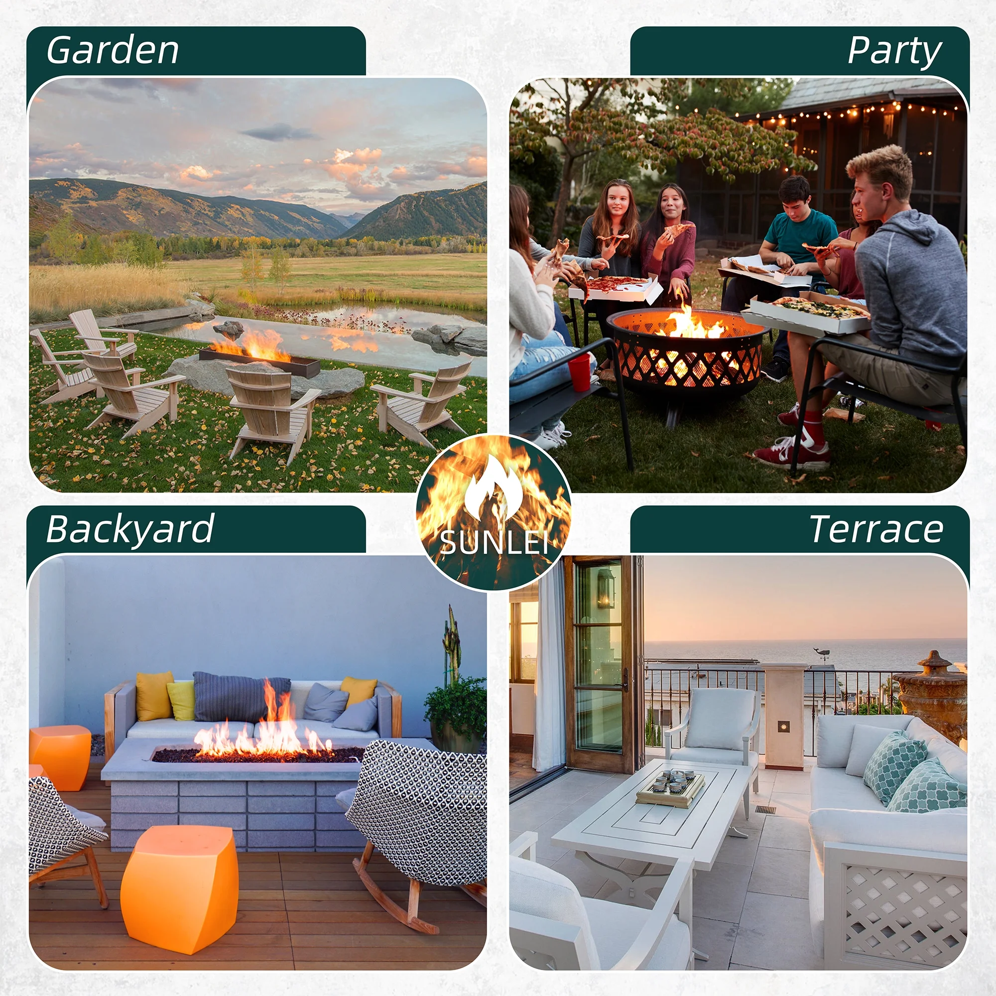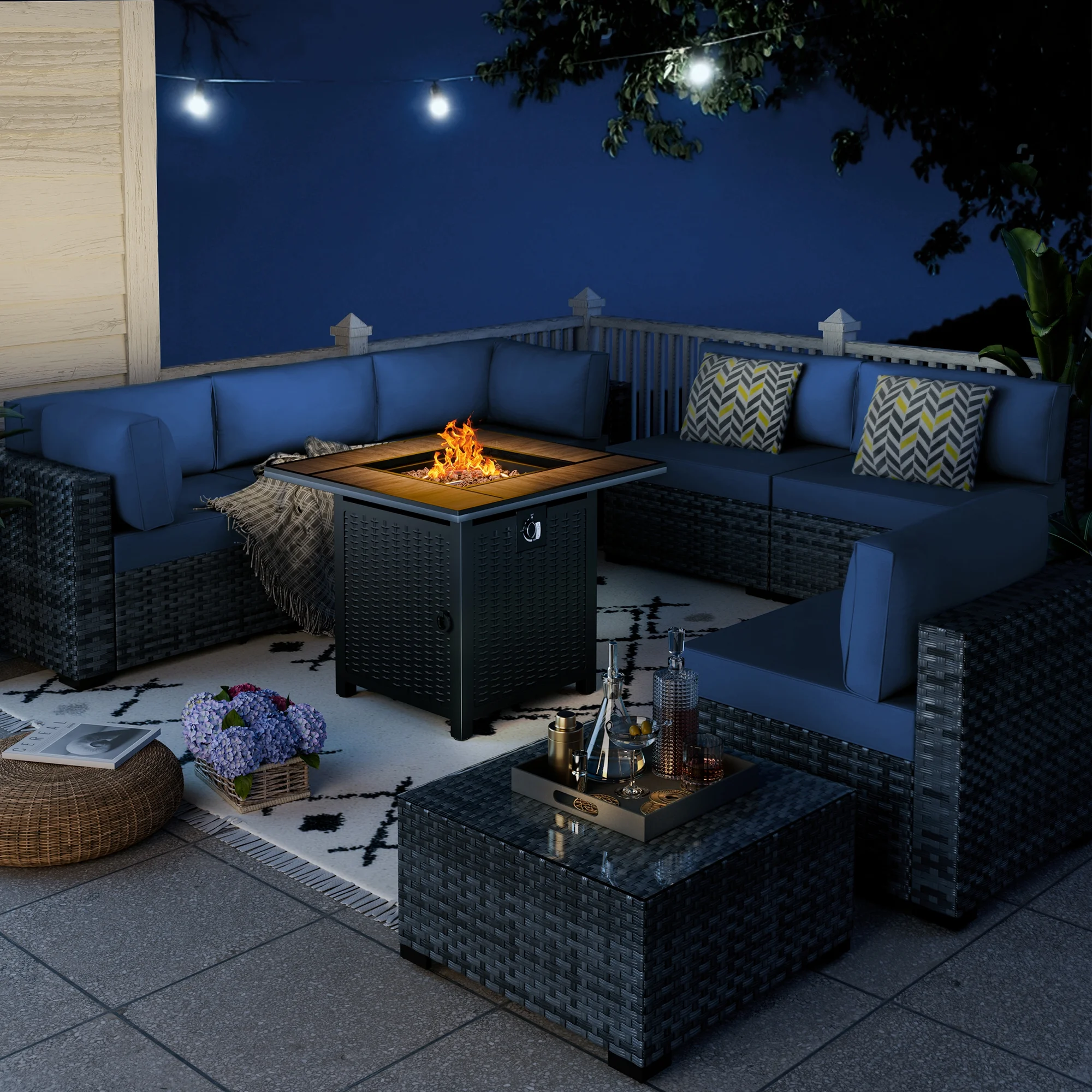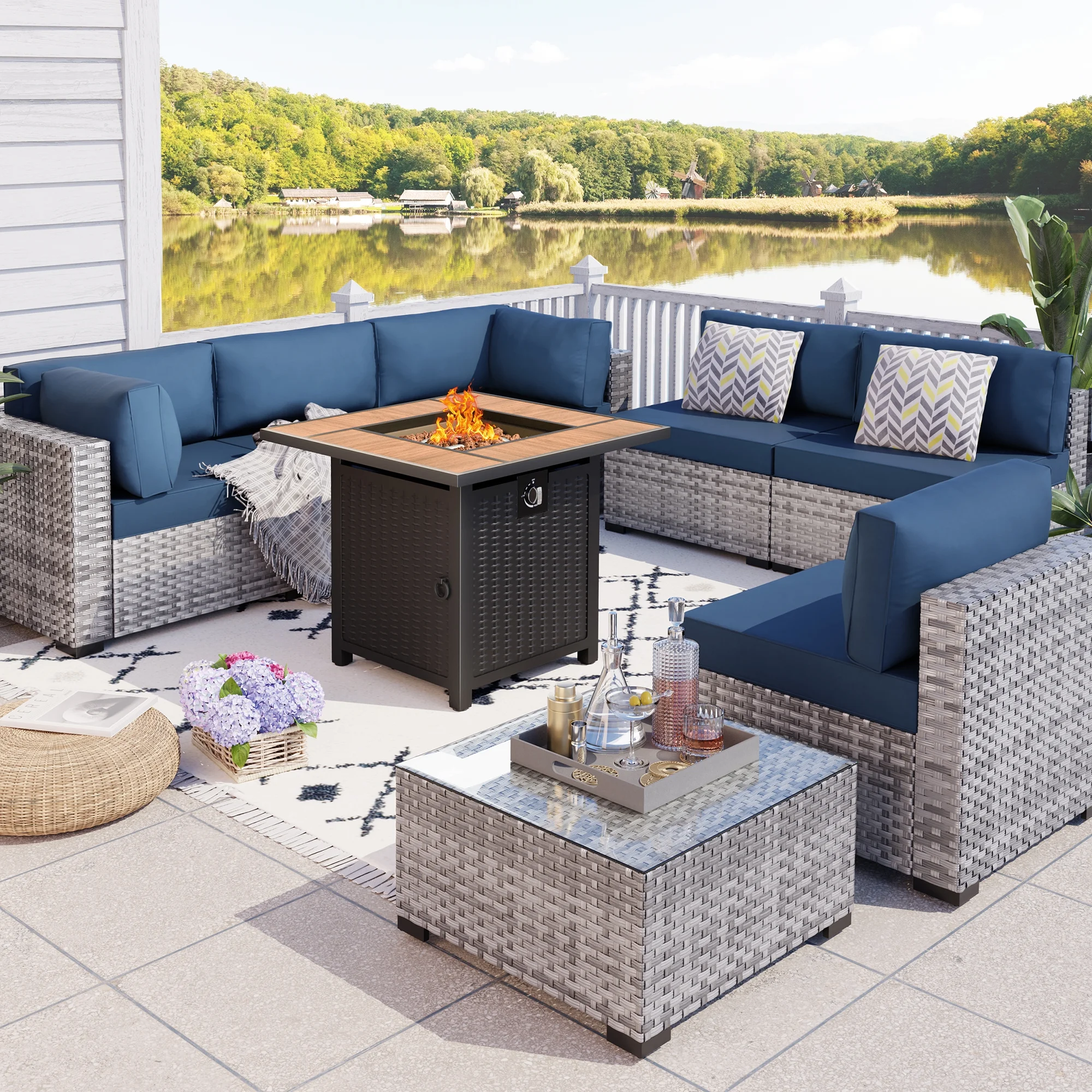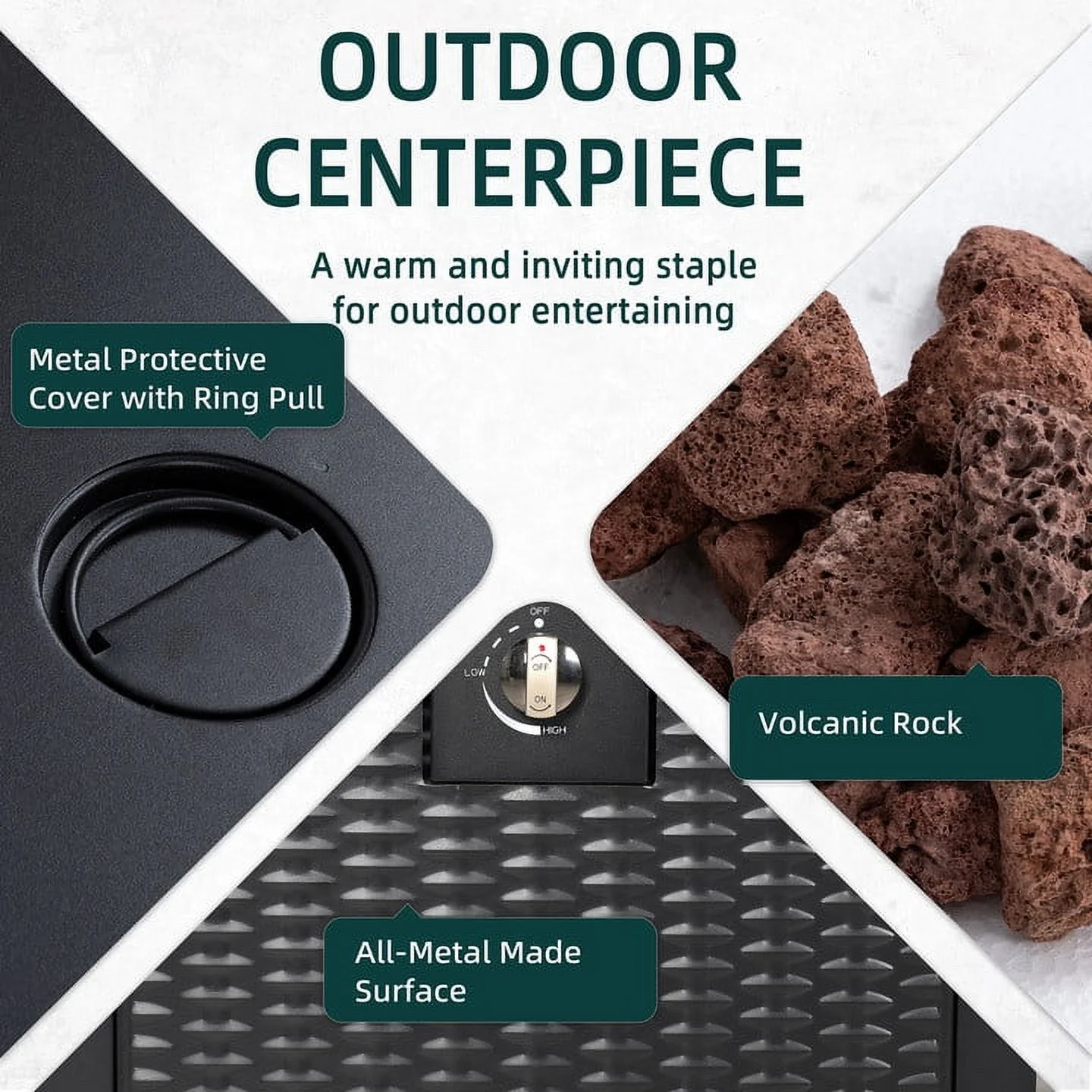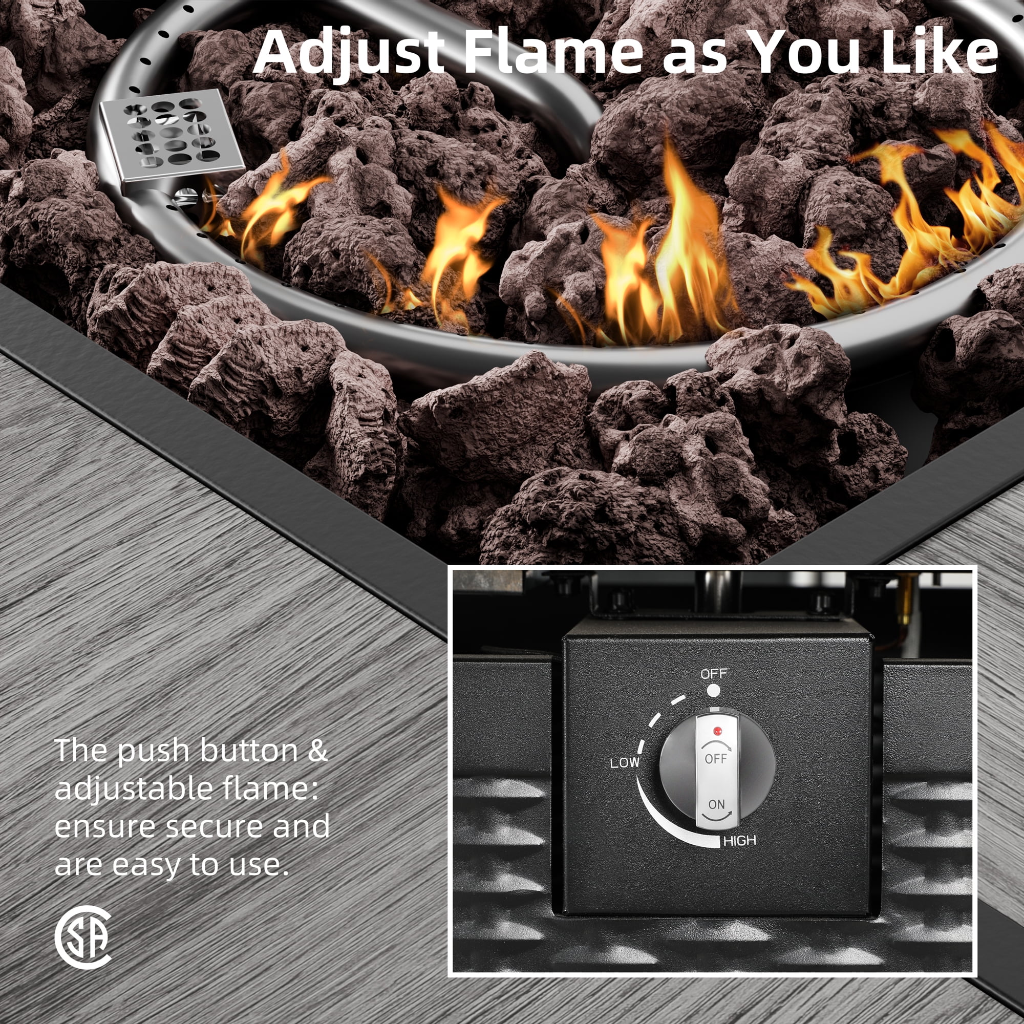 Walsunny 45 Propane Fire Pit Table 50,000 BTU Steel Gas Fire Pit with Removable Lid & Waterproof Cover and Tables