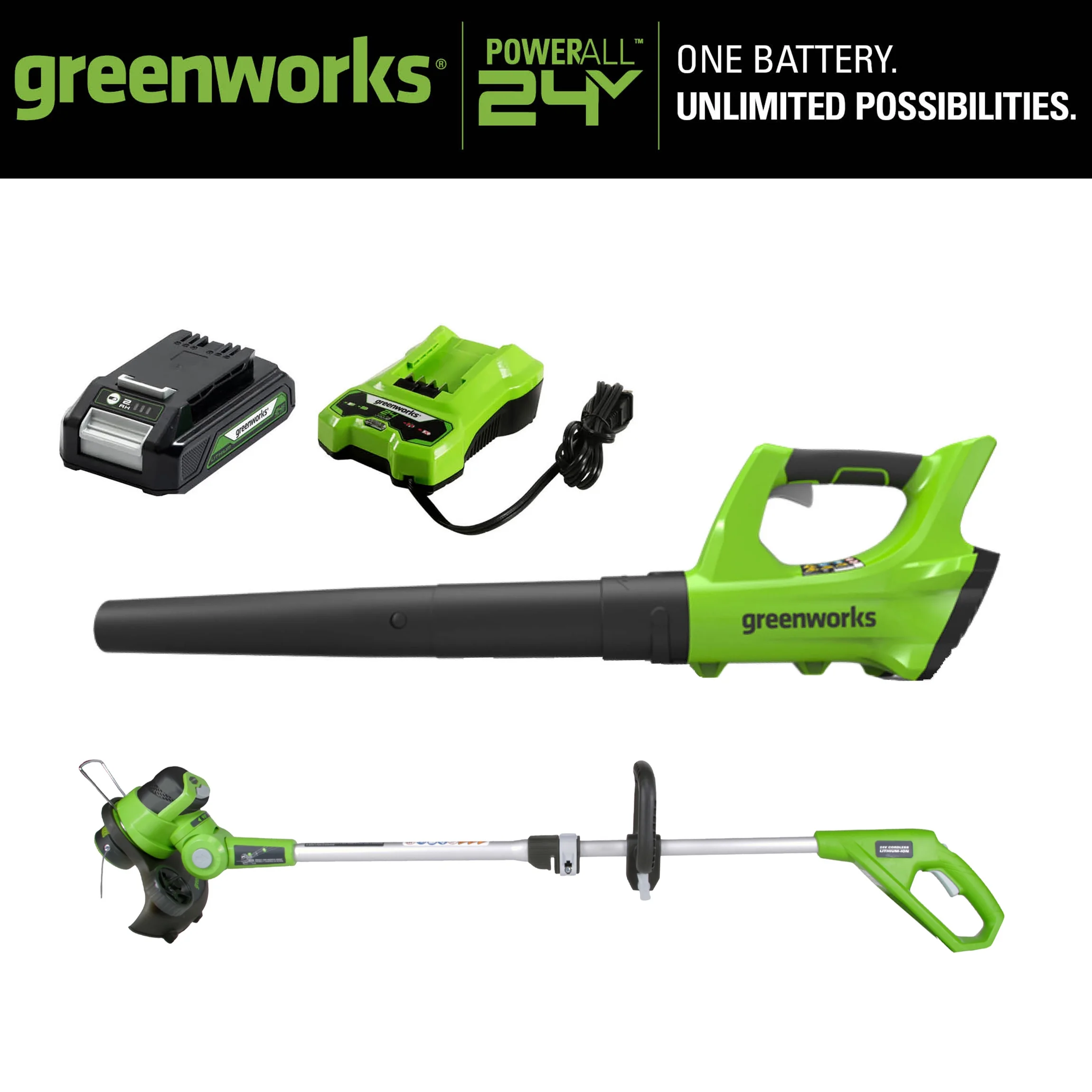 Greenworks 24V Cordless String Trimmer and Blower Combo, 2Ah Battery and Charger Included