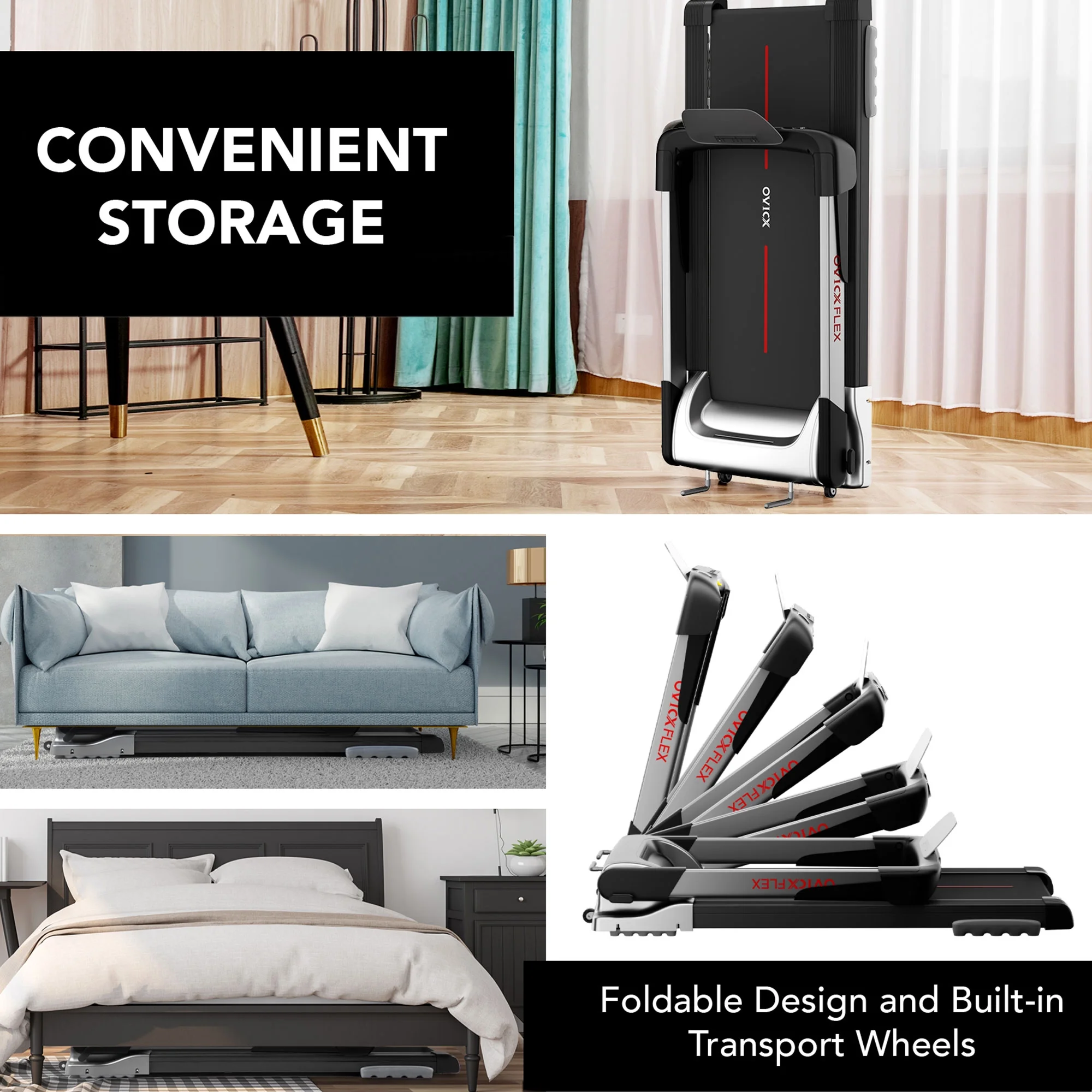 OVICX Portable Folding Flex Treadmill w/ Bluetooth & Fitness Tracking App