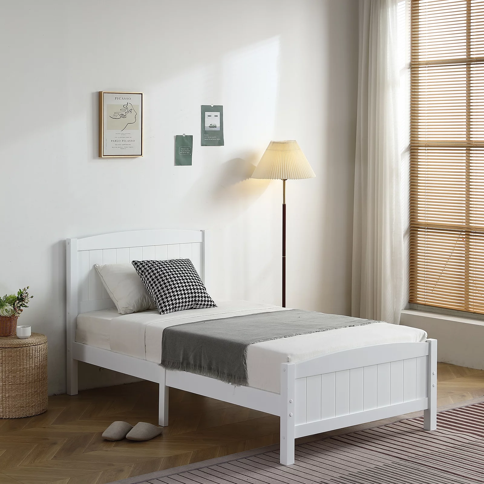 Twin Pine Single-Layer Core Vertical Stripe Full-Board Curved Bed Head With The Same Bed Foot White Wooden Bed(Alternate code: 58465471)