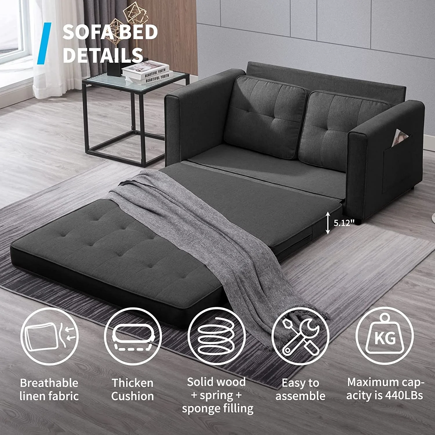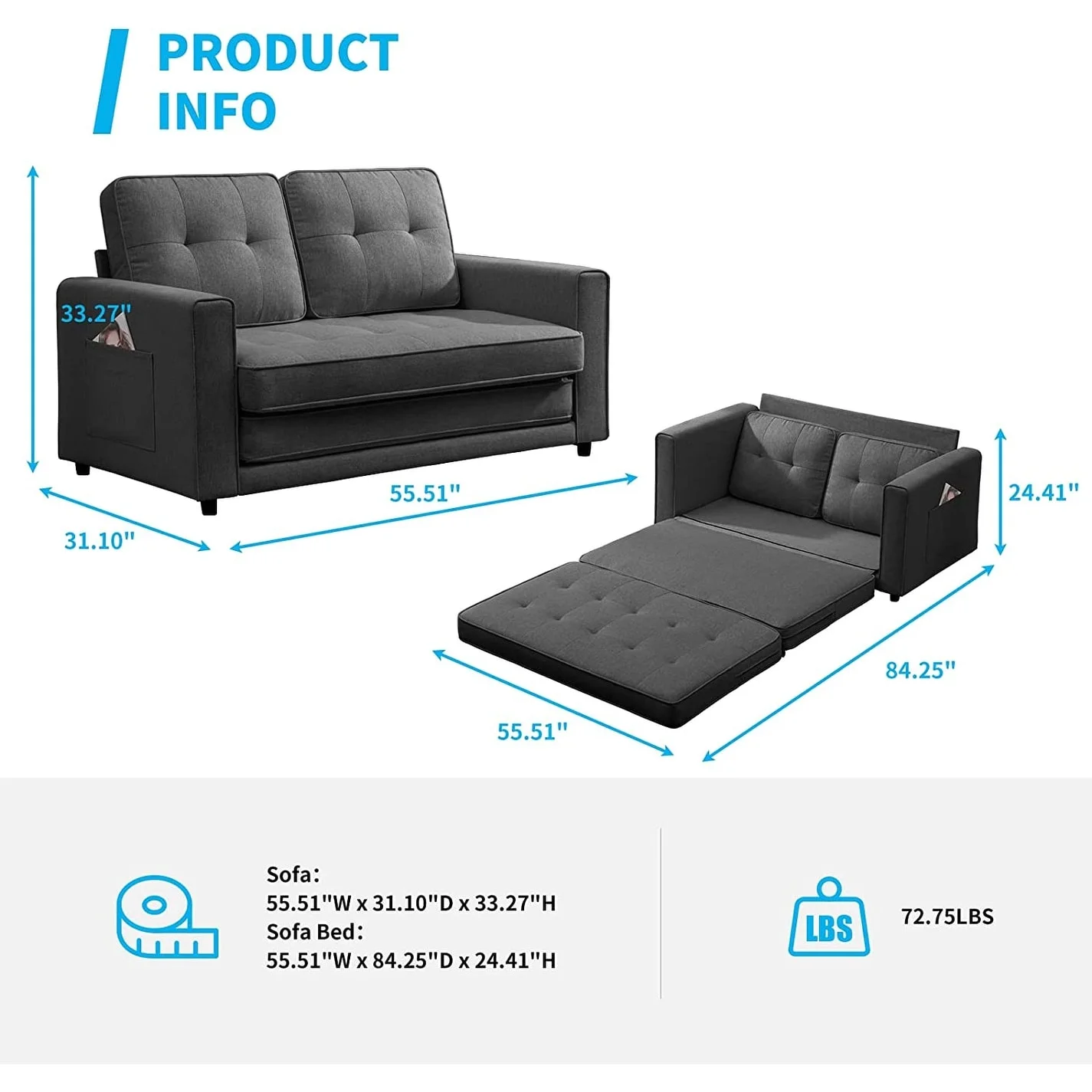 Mixoy 84"Modern 3-in-1 Loveseat Sleeper Sofa,Multi-Function Tri-Fold Fold Out Floor Sofa Bed Dark Grey - Curated Treasures Market
