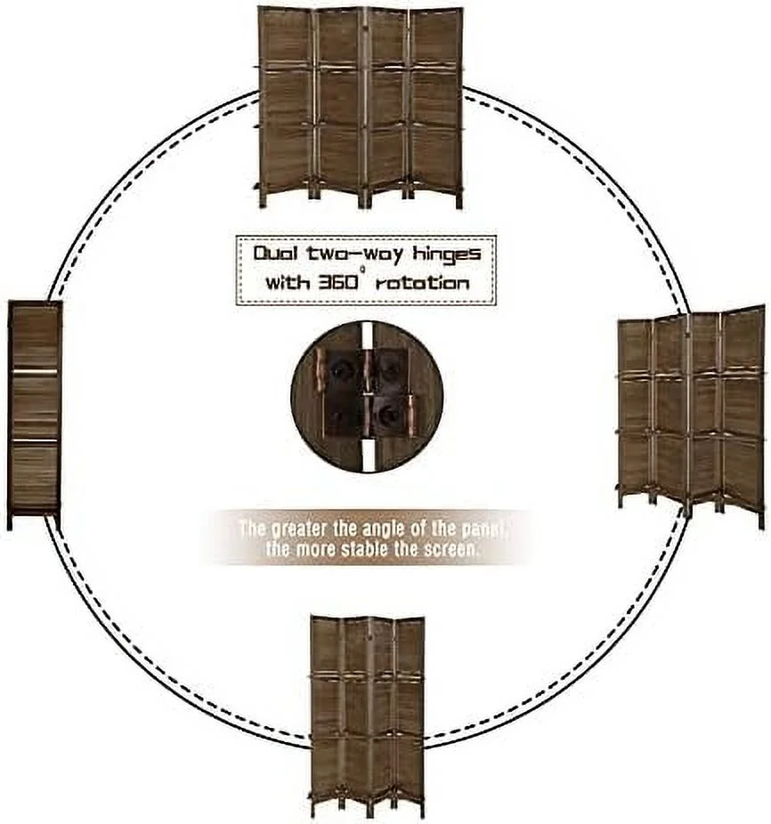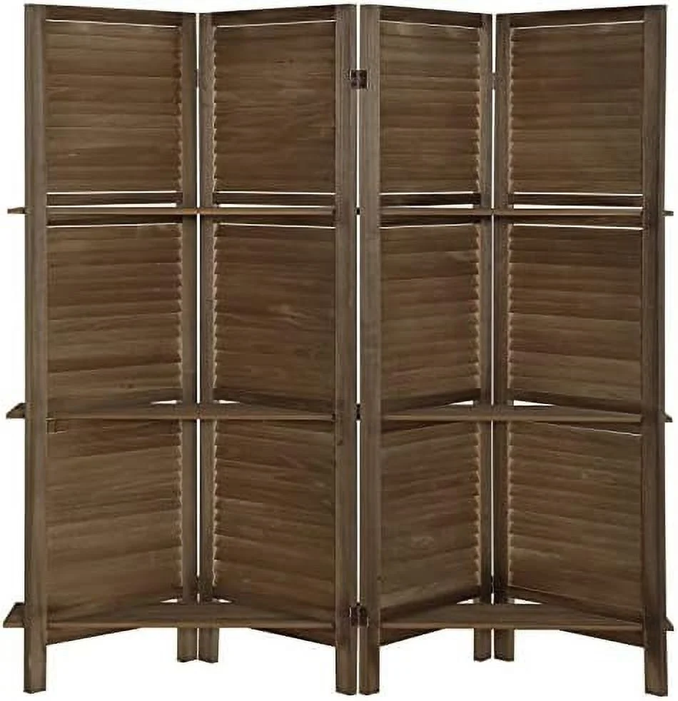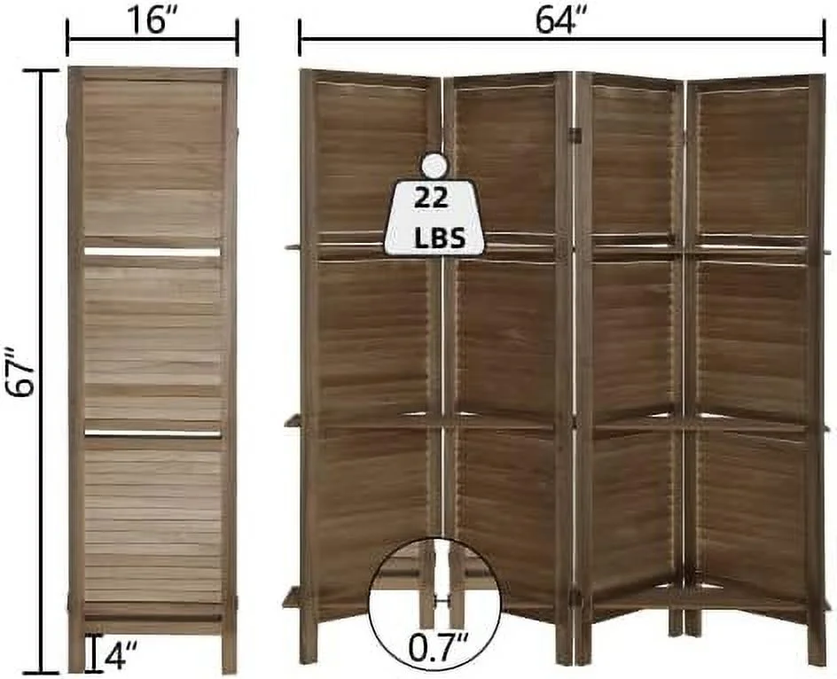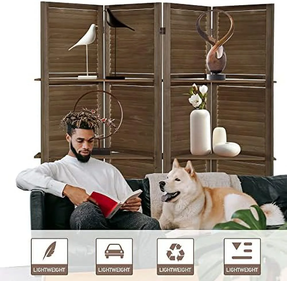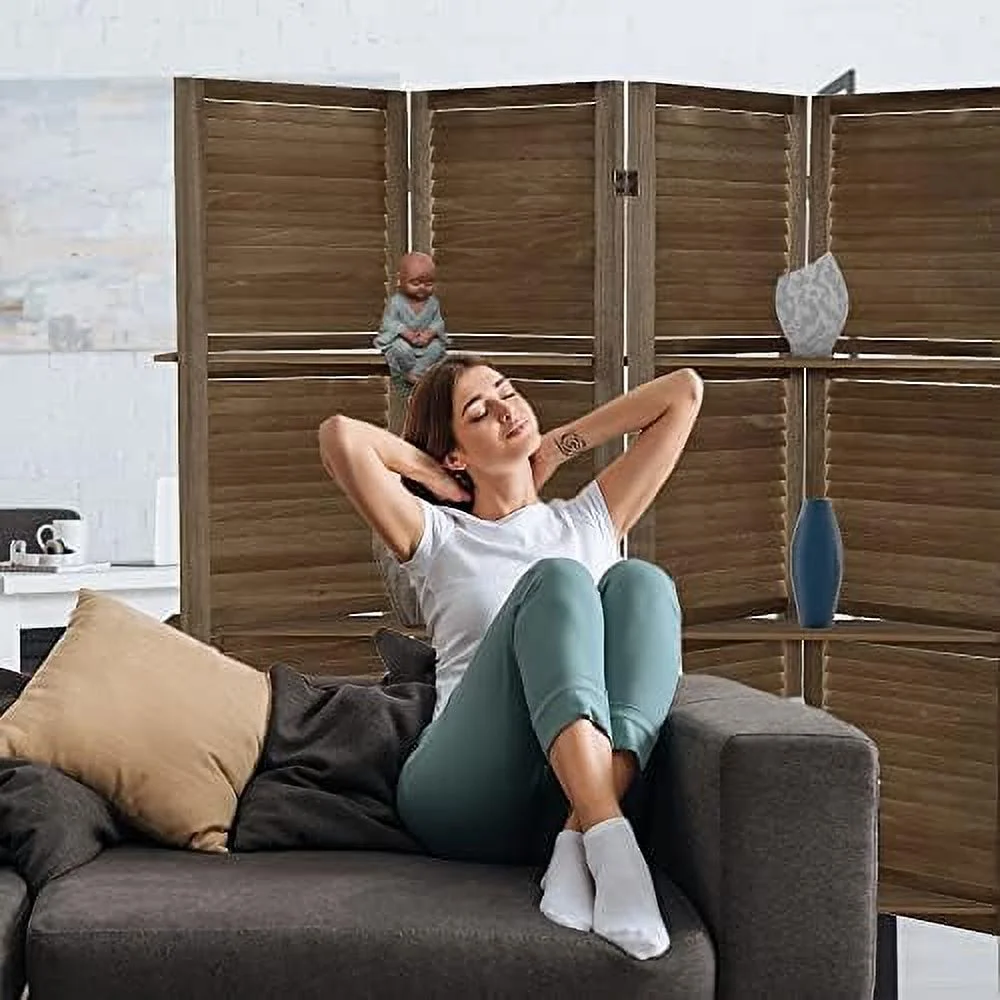 JYHOME 6 Panel Room Divider with Shelves Fully Assembled 5.6Ft Folding Privacy Screens Wooden Room Dividers and Room Separator for Home Bedroom Dark Brown - Curated Treasures Market
