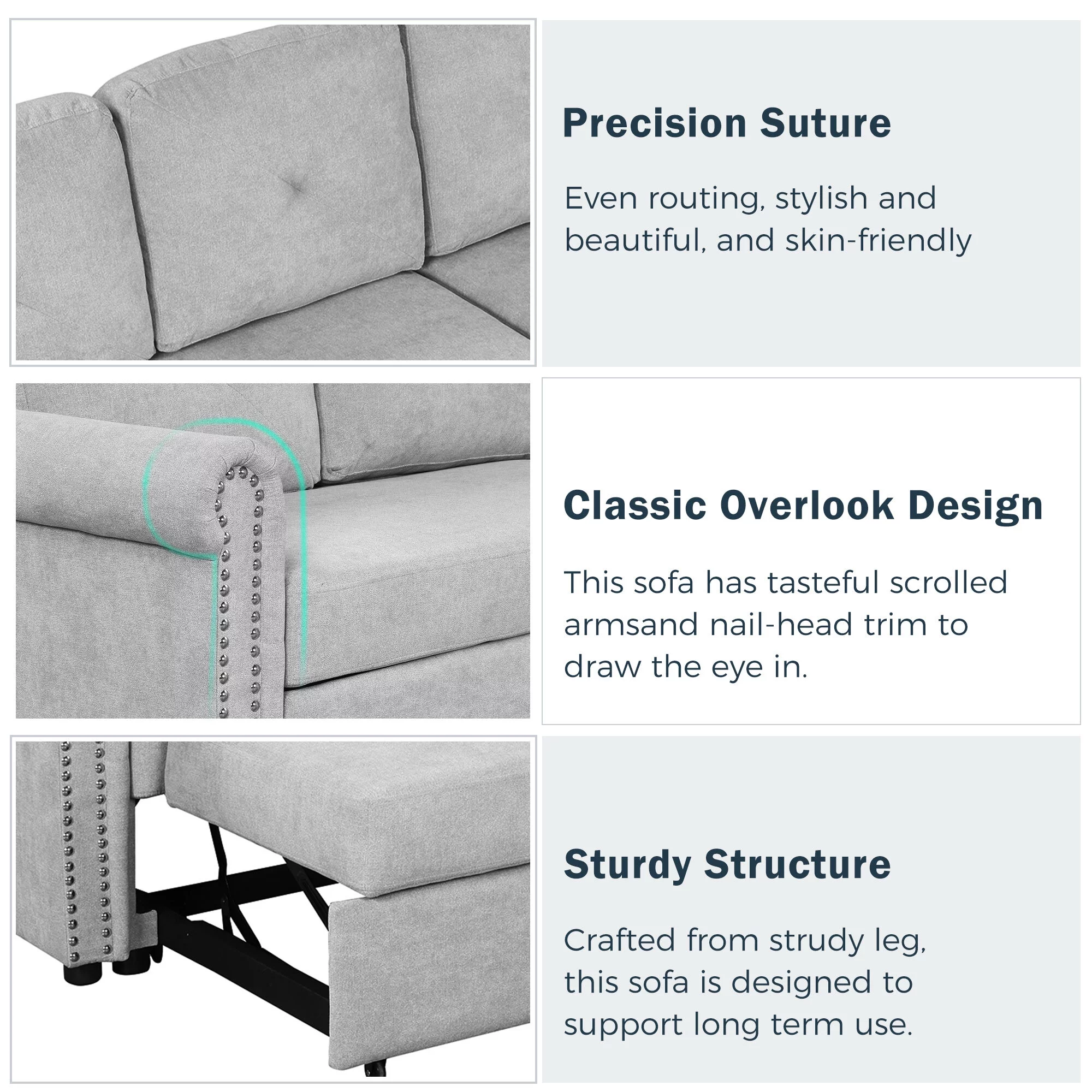 Euroco 83" L Shaped Sofa Bed Modern Convertible Sleeper Sofa Bed with Storage Chaise, Gray - Curated Treasures Market