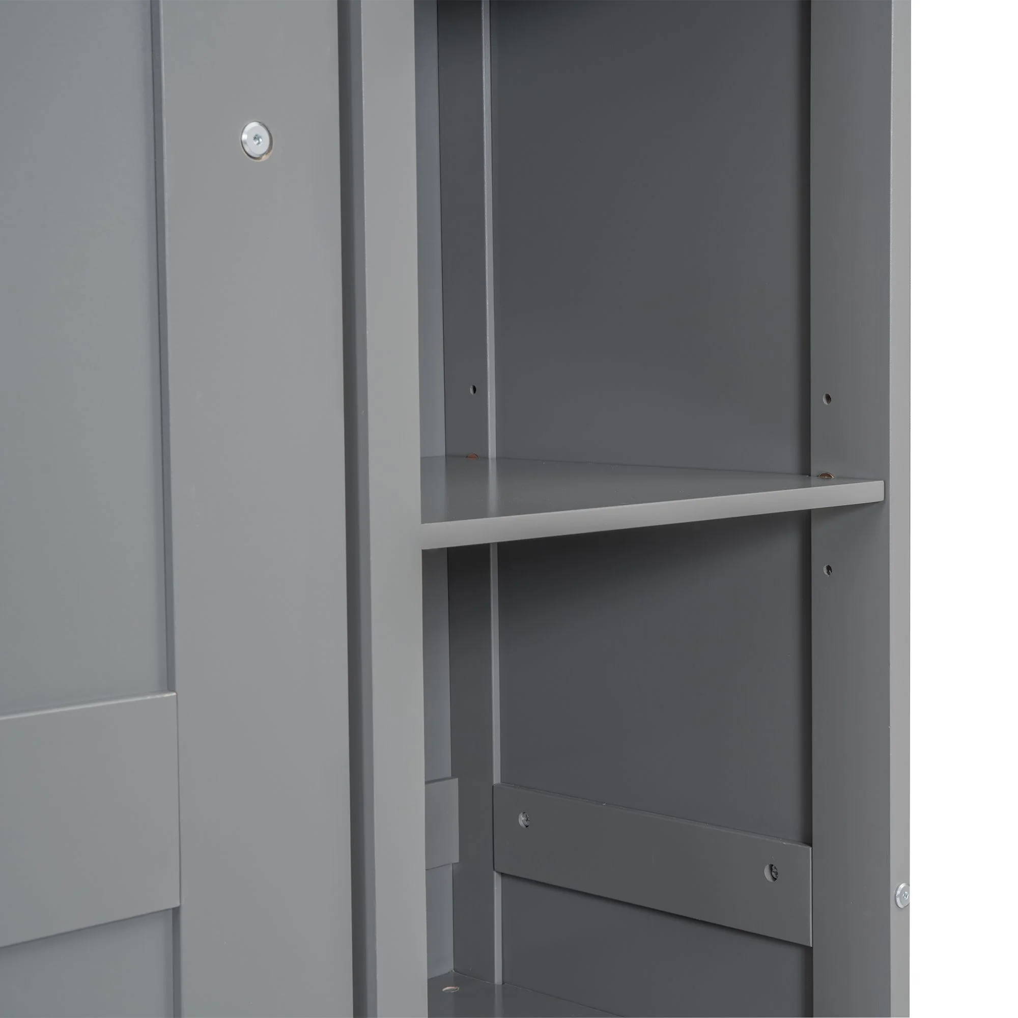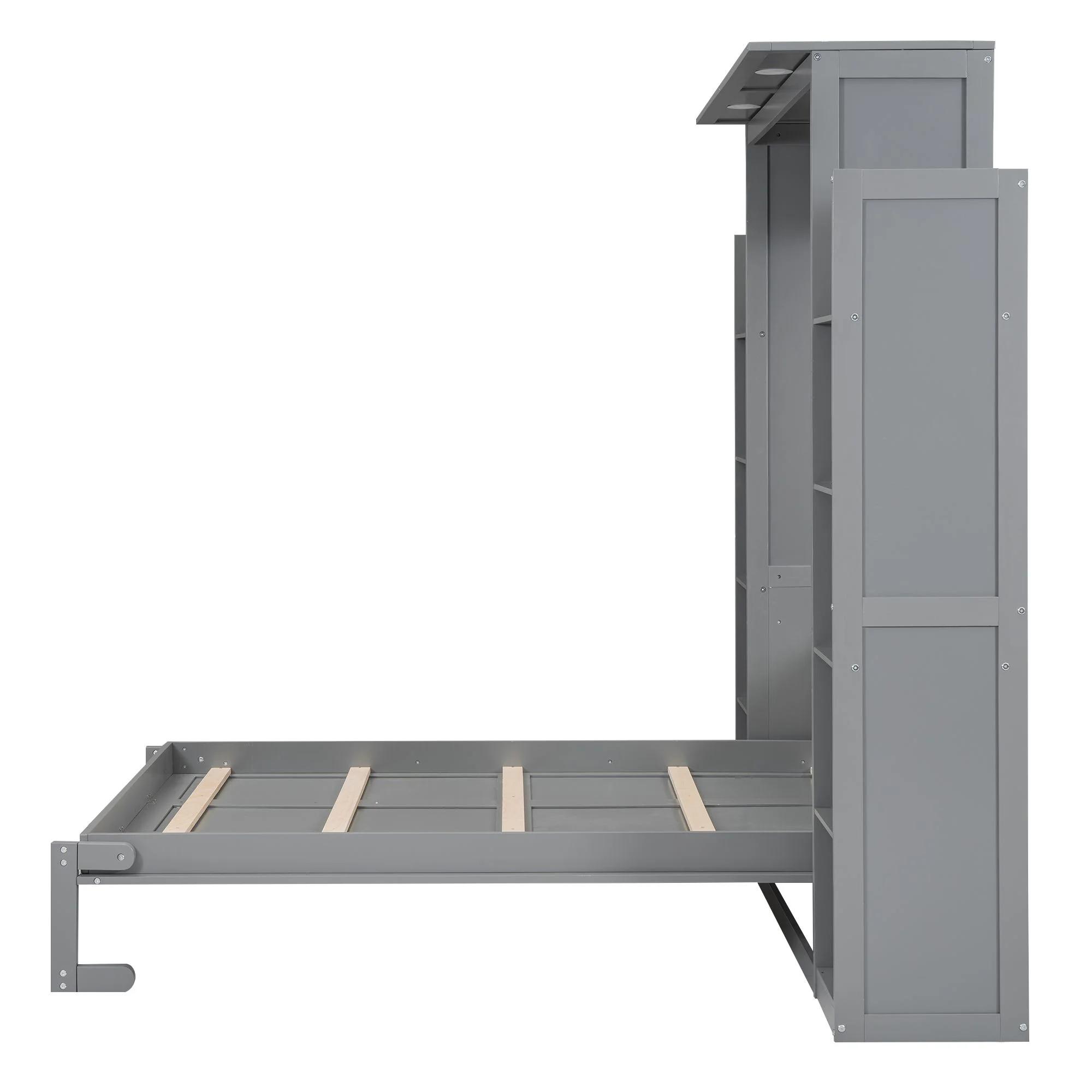 Practical Design Solid Wood Bed Frame Murphy Bed Wall Bed with Shelves and LED Lights, Platform Bed Frame, Mid Century Bedframe, Wood Foundation(Gray, Full) - Curated Treasures Market