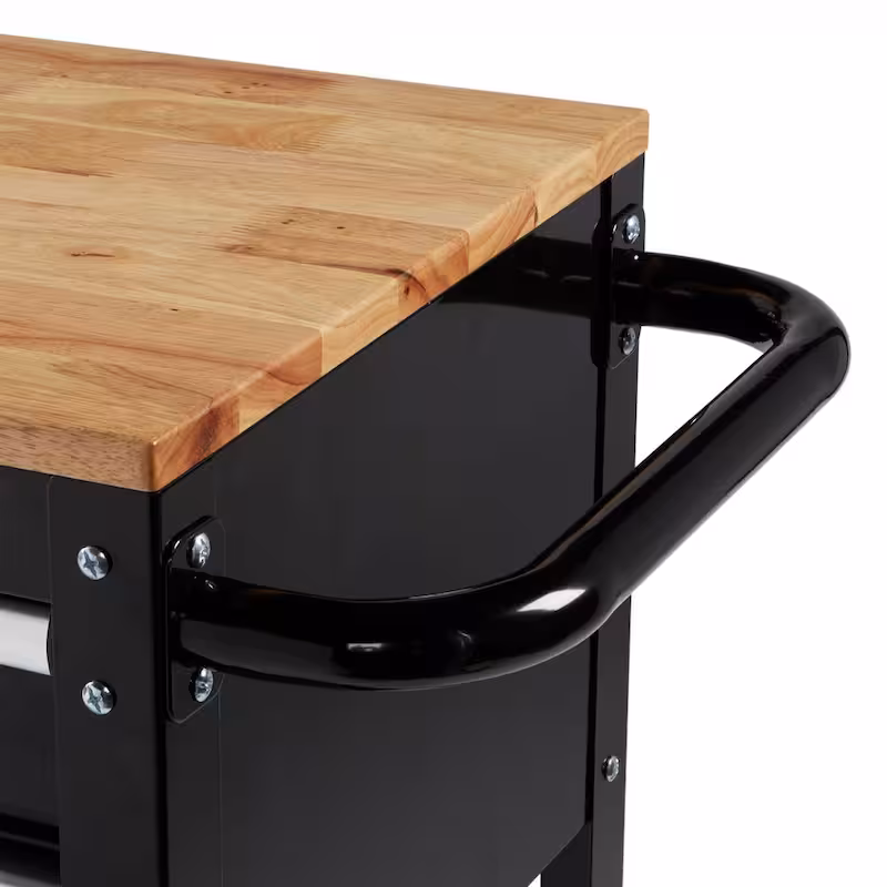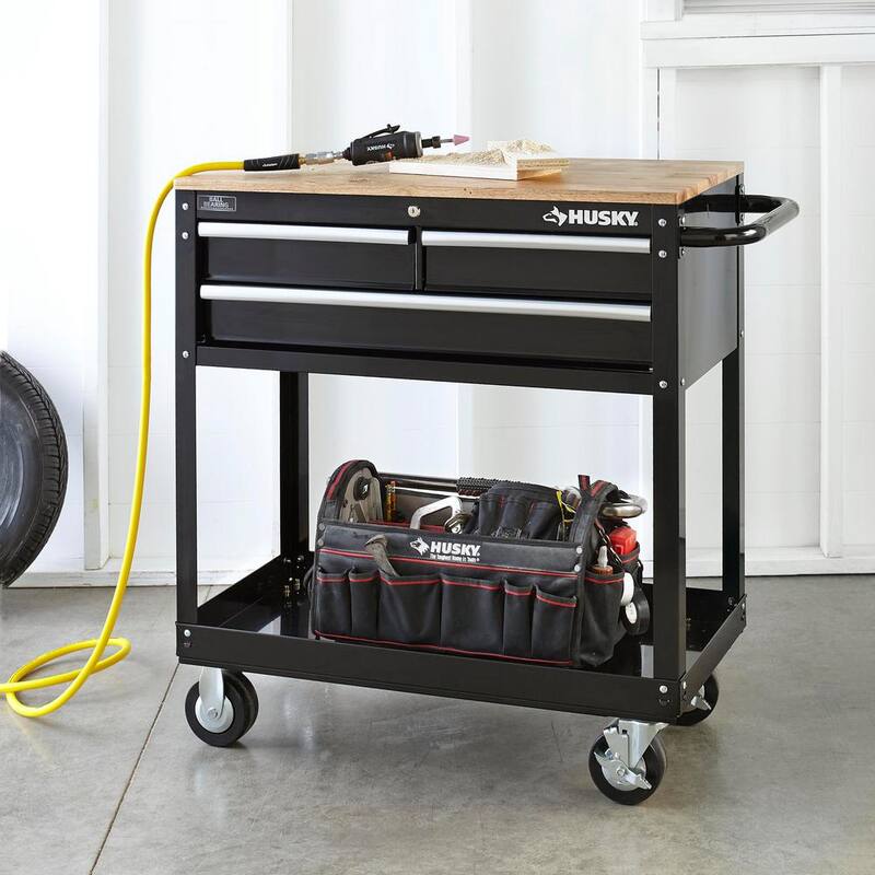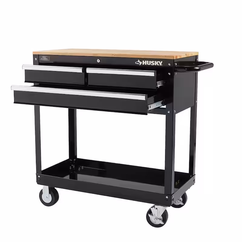 Tool Storage 3-Drawer 36 in. W Standard Duty Gloss Black Rolling Tool Cart with Hardwood Top