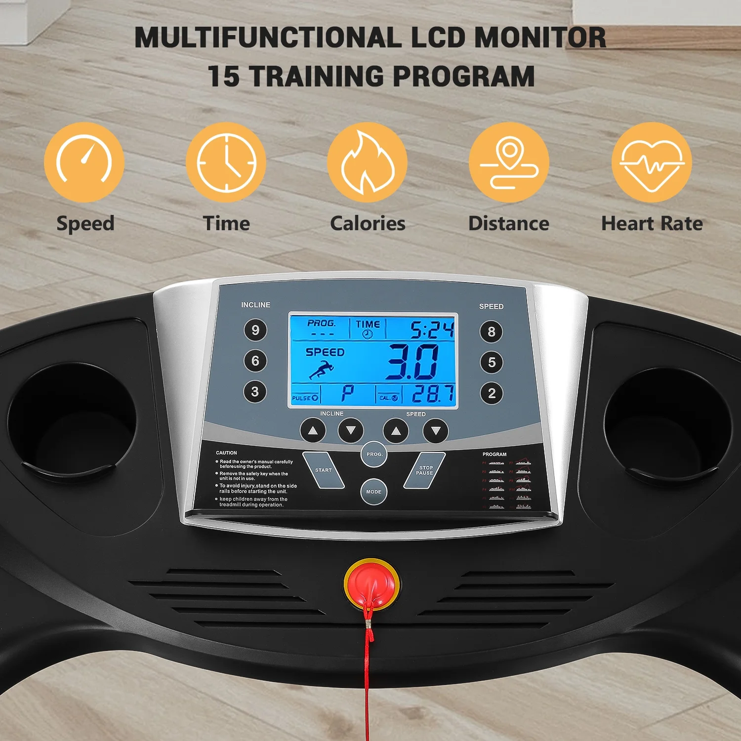 MARNUR 2.5 HP Treadmill with 12% Auto Incline, 220 lb Weight Capacity, 0.5-8.5 mph