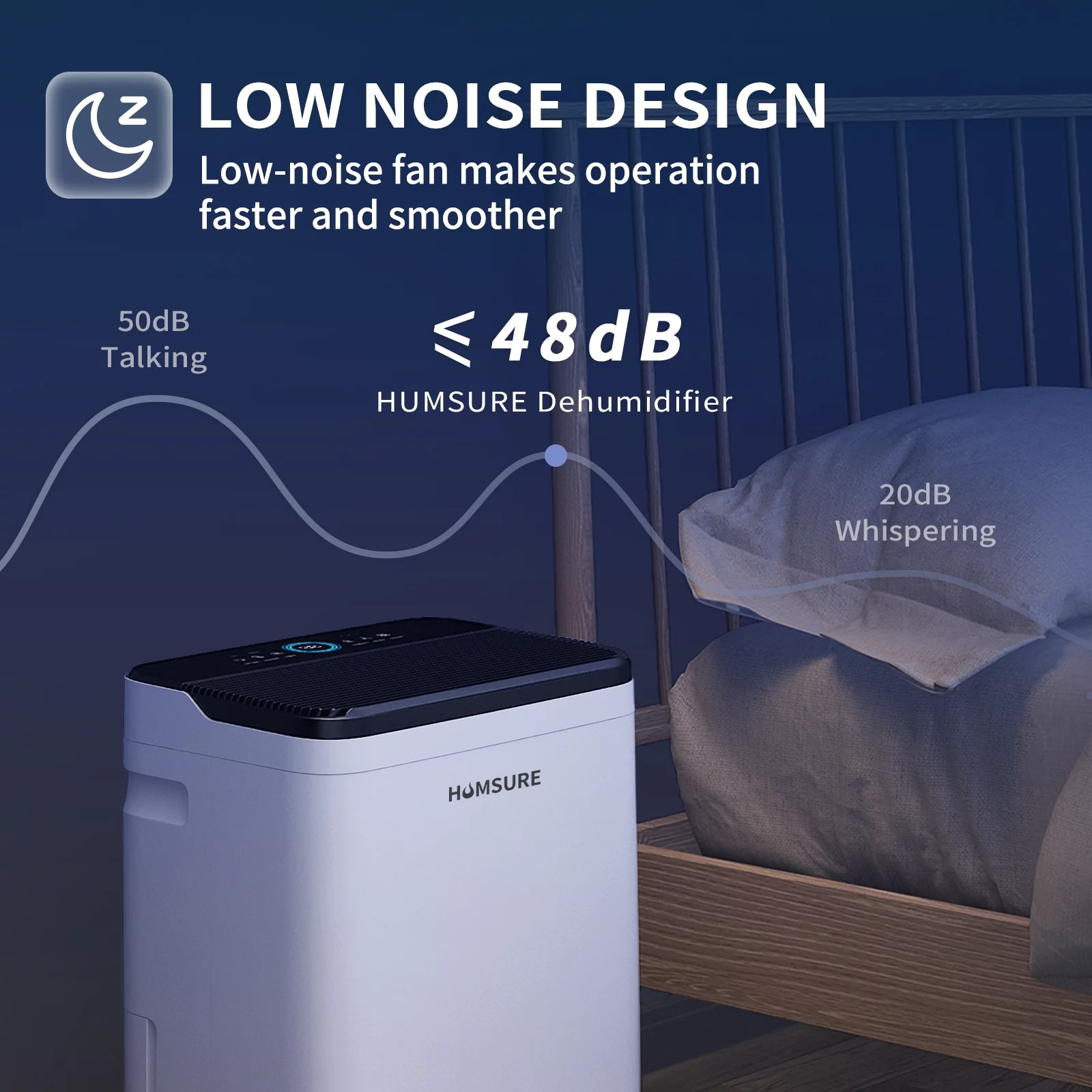 HUMSURE Dehumidifier 50 Pint Intelligent Humidity Control, 4,500 sq. ft. for Basements, Large Rooms, Bathrooms, Max Moisture Removal 70 Pints (95 F, 95% RH)