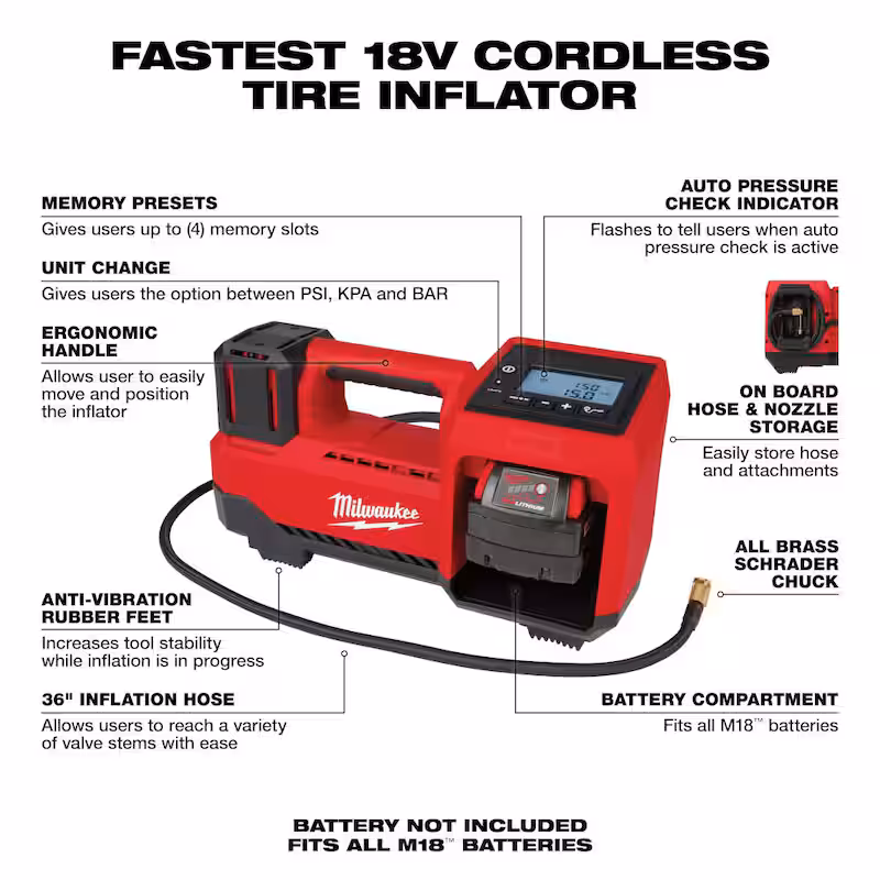 M18 18-Volt Lithium-Ion Cordless Inflator with Two 6.0Ah Batteries and Charger