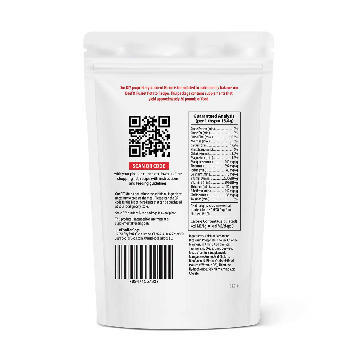 JustFoodForDogs Beef & Russet Potato Do It Yourself Nutrient Blend Dog Food