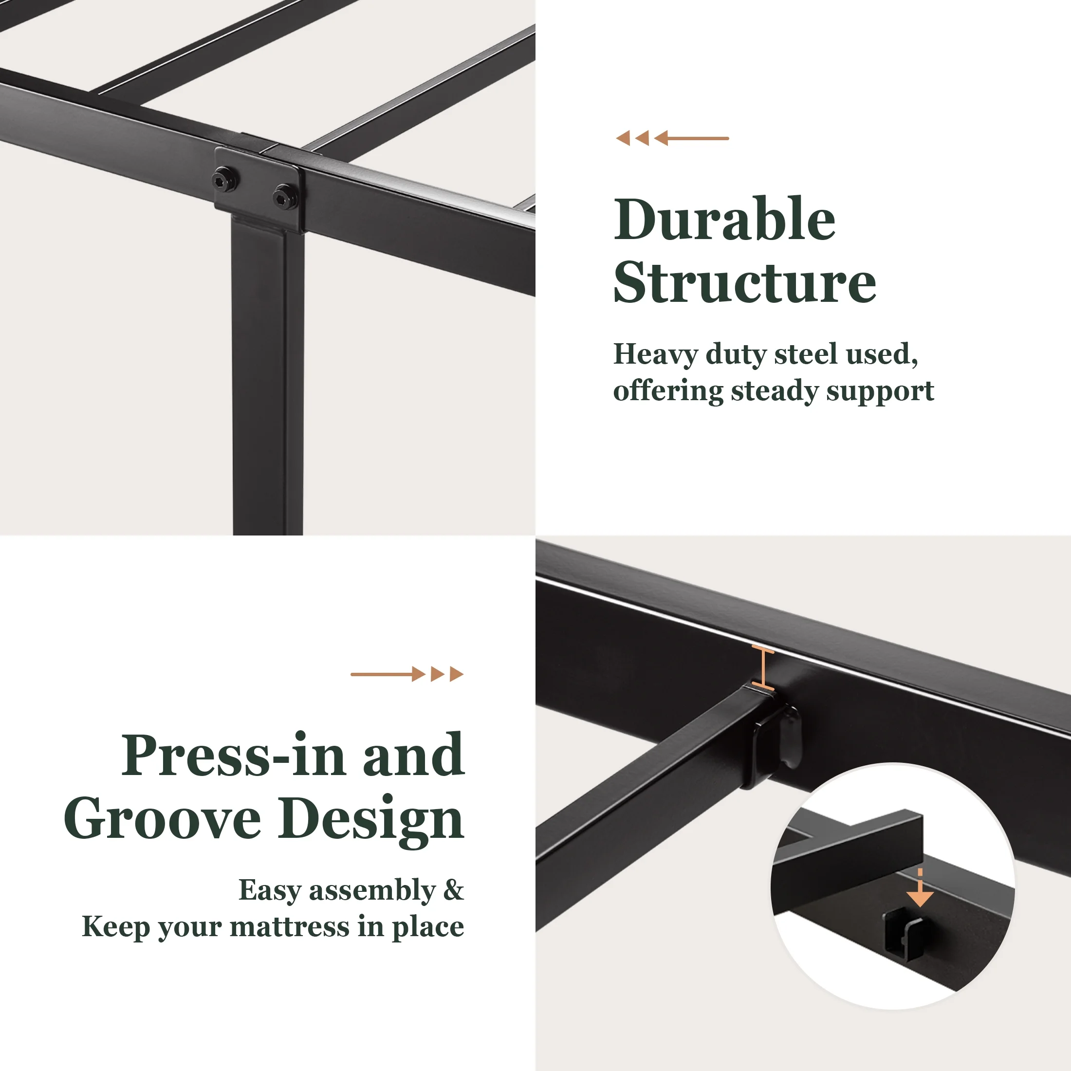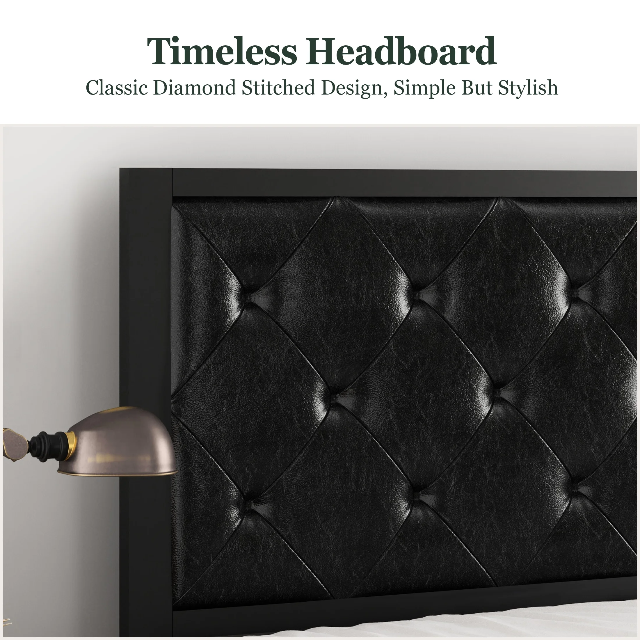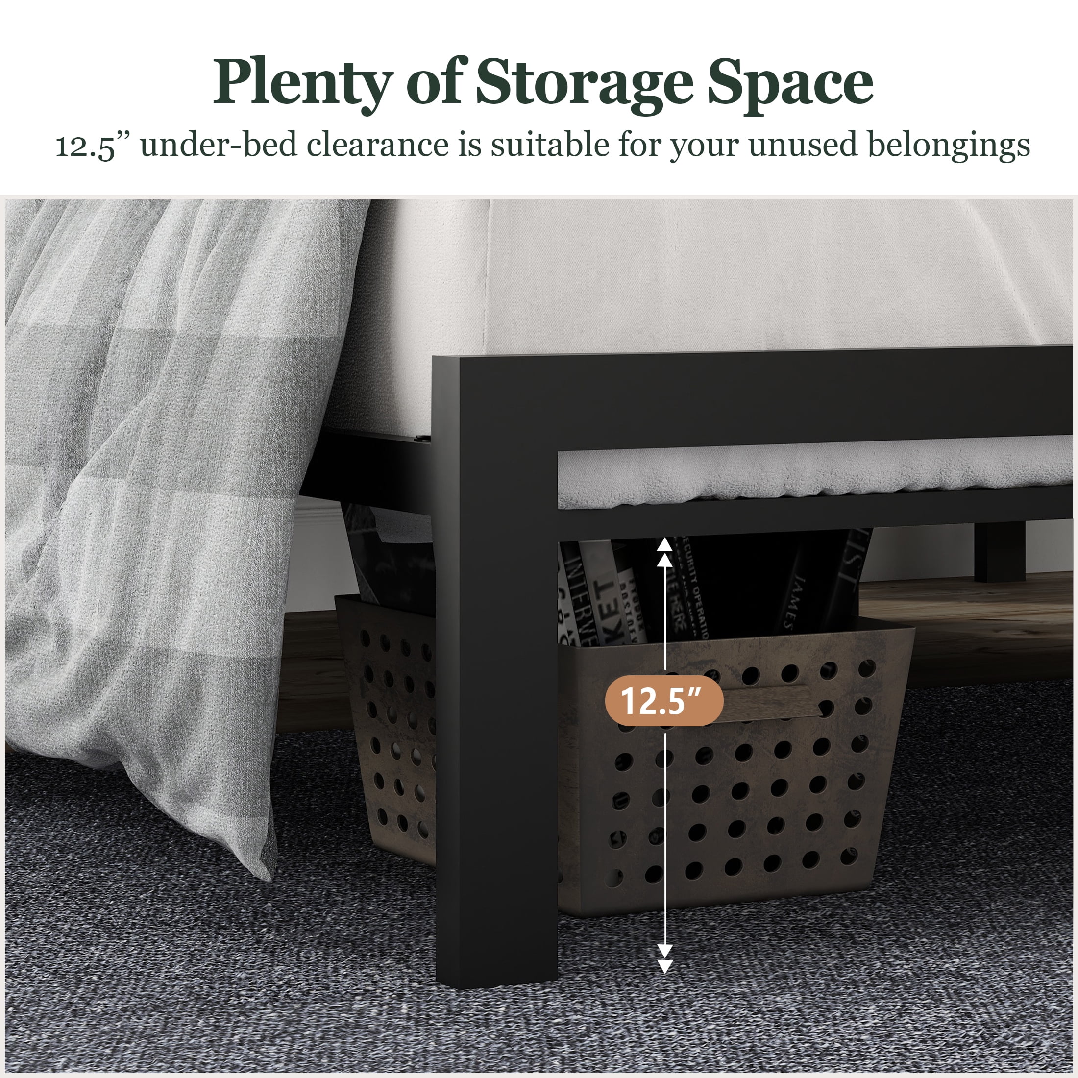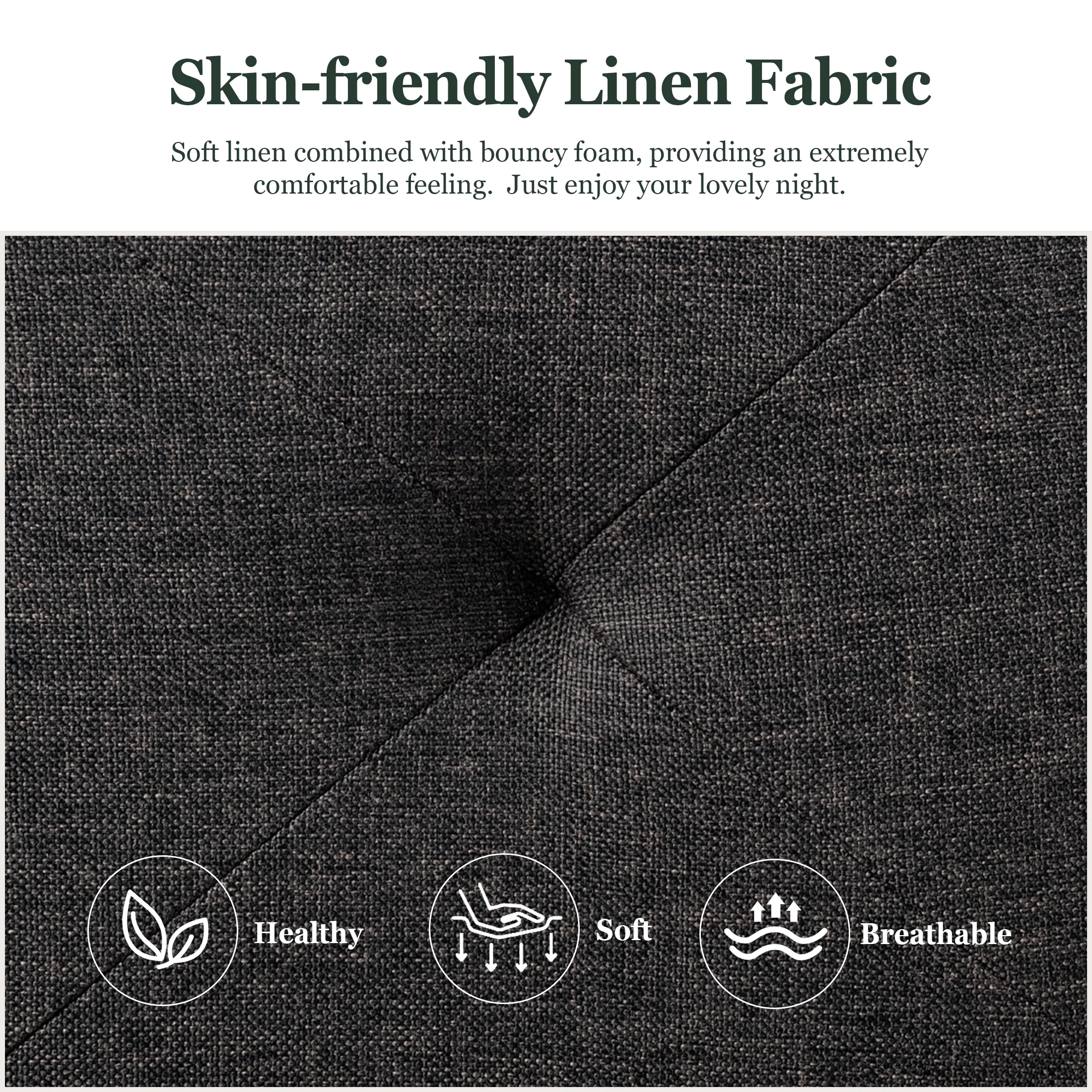 Amolife Twin Size Metal Bed Frame with Upholstered Headboard, Dark Grey