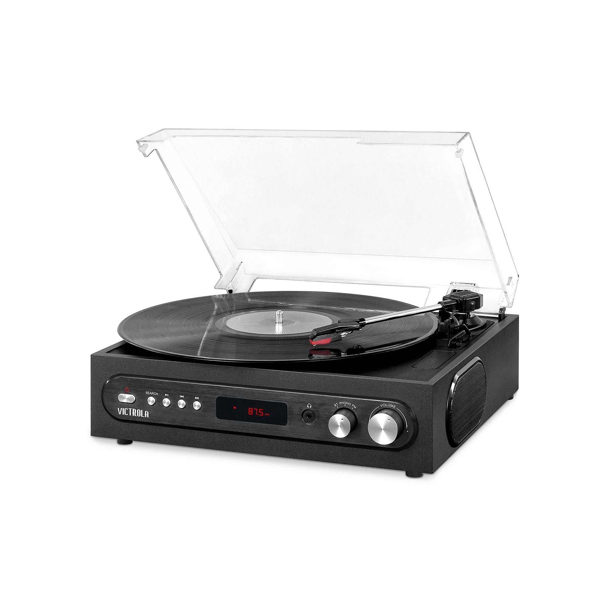 Victrola All-in-1 Bluetooth Record Player with Built in Speakers and 3-Speed Turntable (Black) - Megean