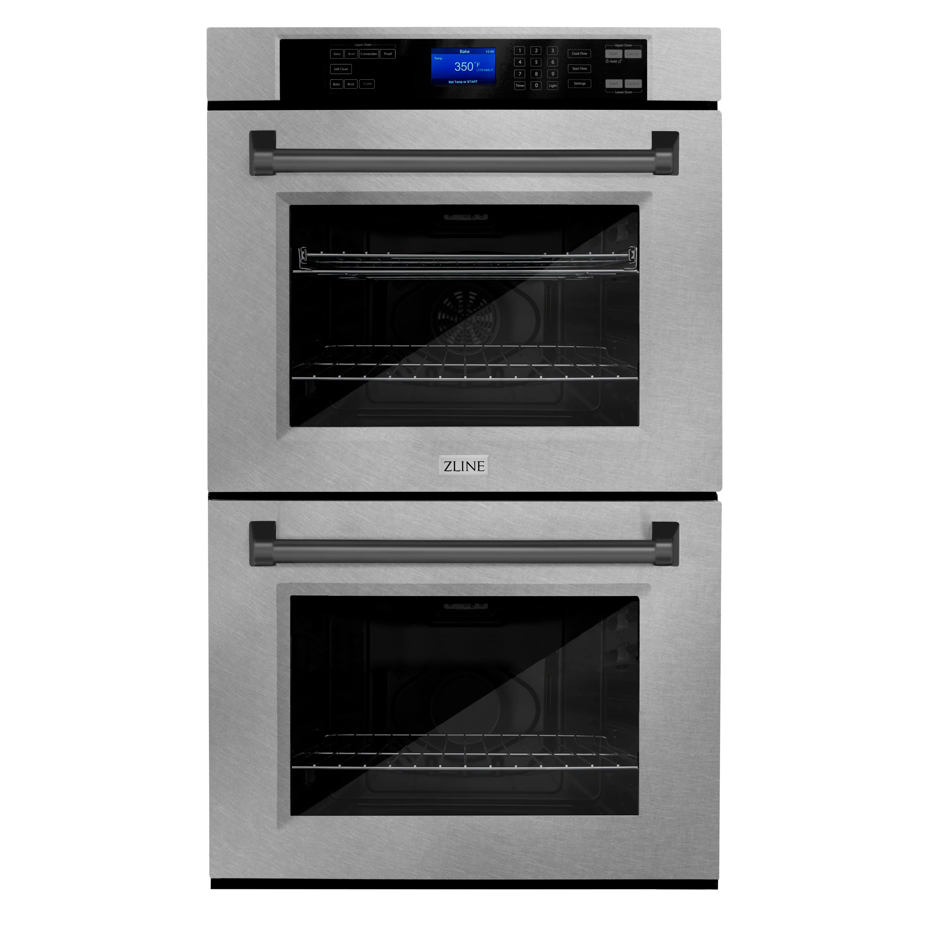 ZLINE 30 In. Autograph Edition Double Wall Oven with Self Clean and True Convection in DuraSnow® Stainless Steel and Matte Black, AWDSZ-30-MB