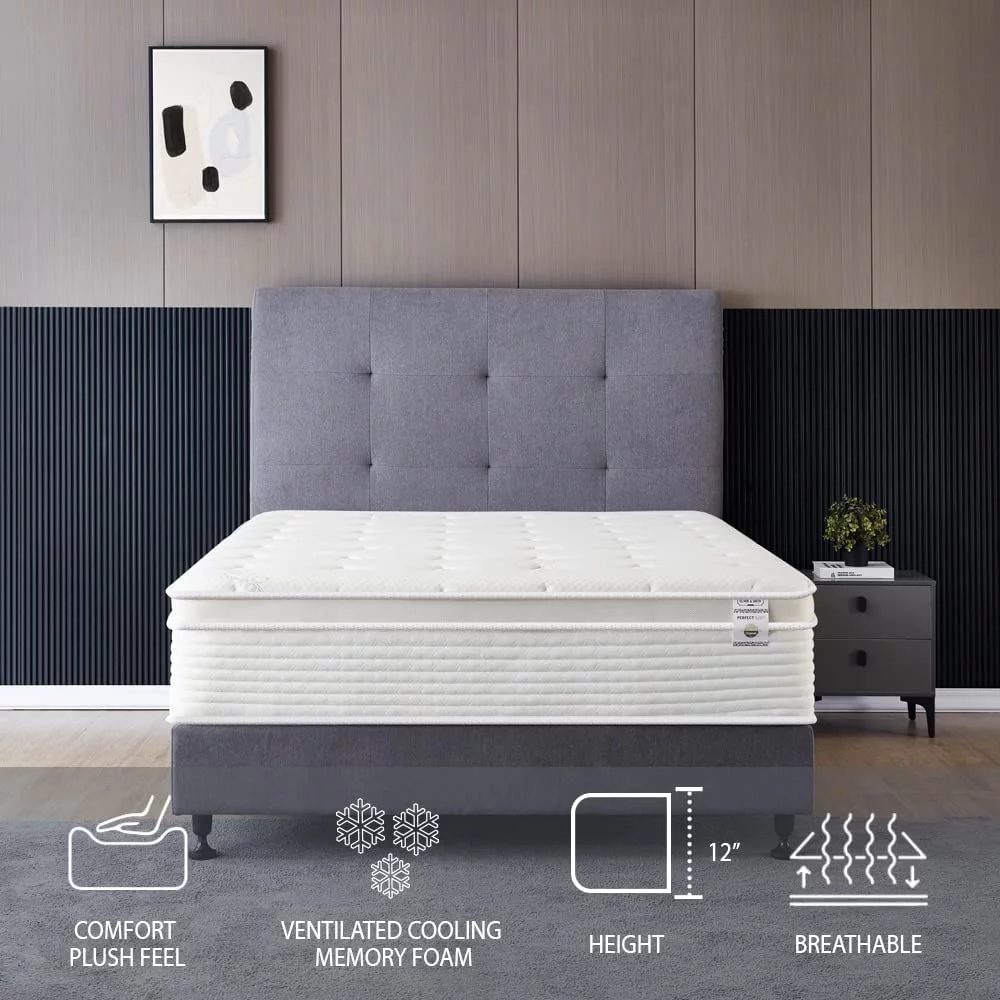 Full Size Mattress - 12 Inch Cool Memory Foam & Spring Hybrid Mattress - Euro Top - Medium Firm - Oliver & Smith