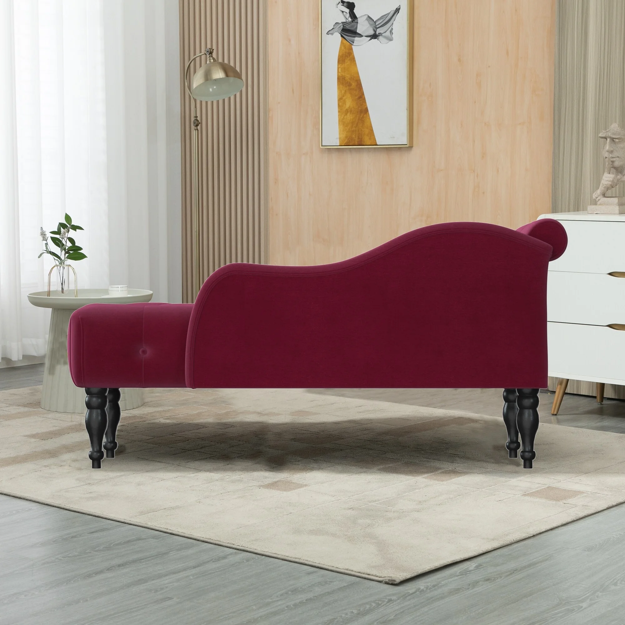 60.6" Upholstered Velvet Sofa Chaise Lounge BURGUNDY - Curated Treasures Market