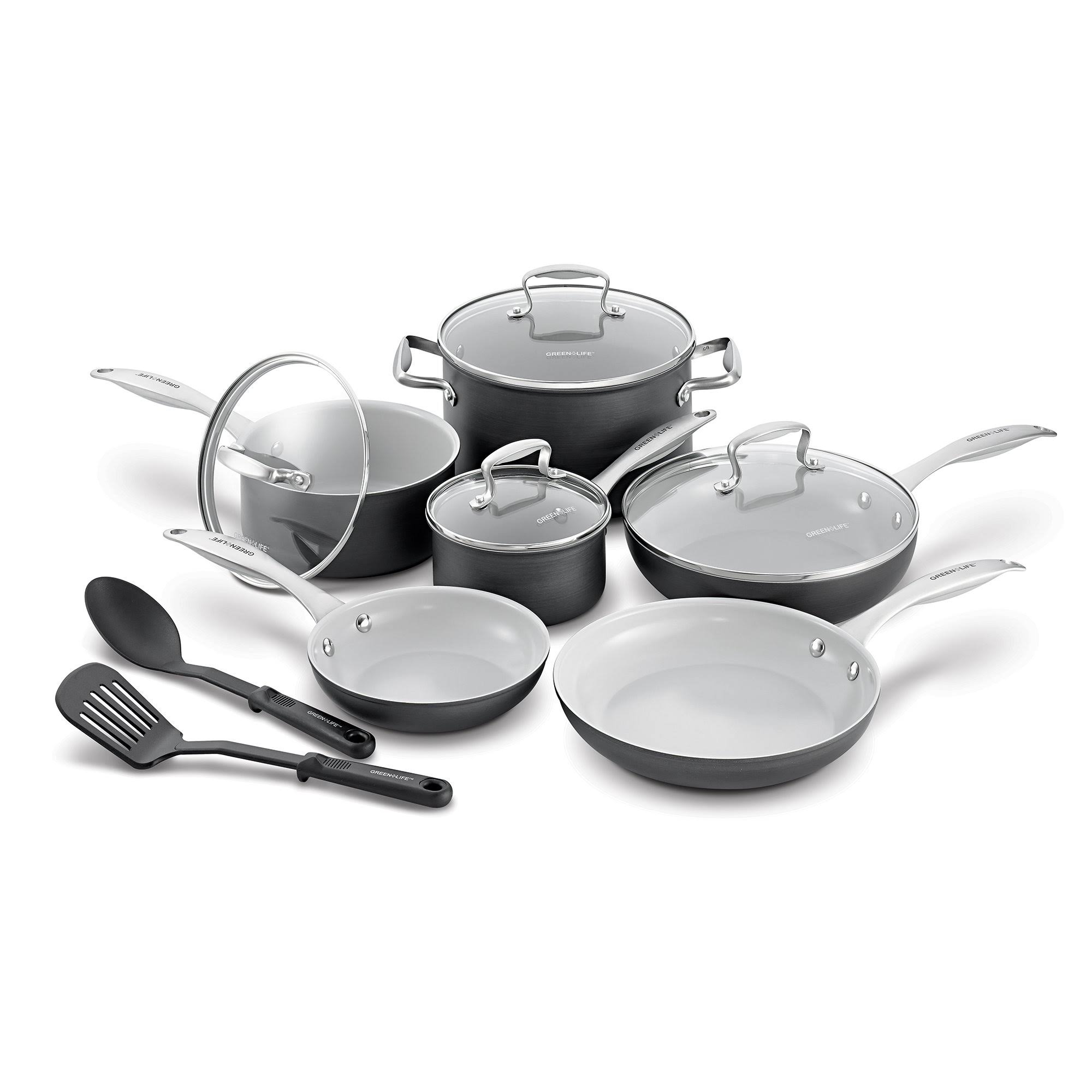 GreenLife Healthy Ceramic Classic Hard Anodized 12-Piece Cookware Set, Black - Megean