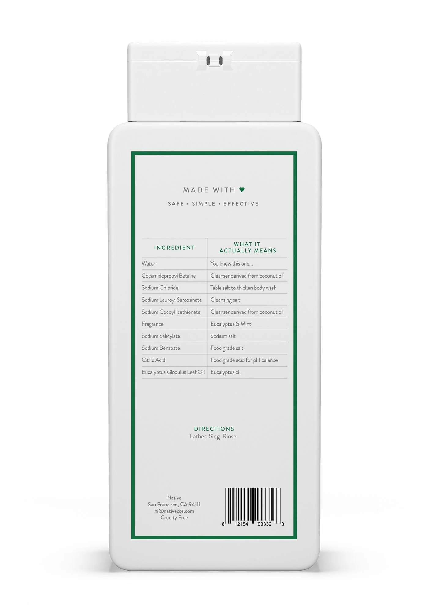 Native Body Wash, Eucalyptus & Mint, Sulfate Free, Paraben Free, for Men and Women, 18 oz