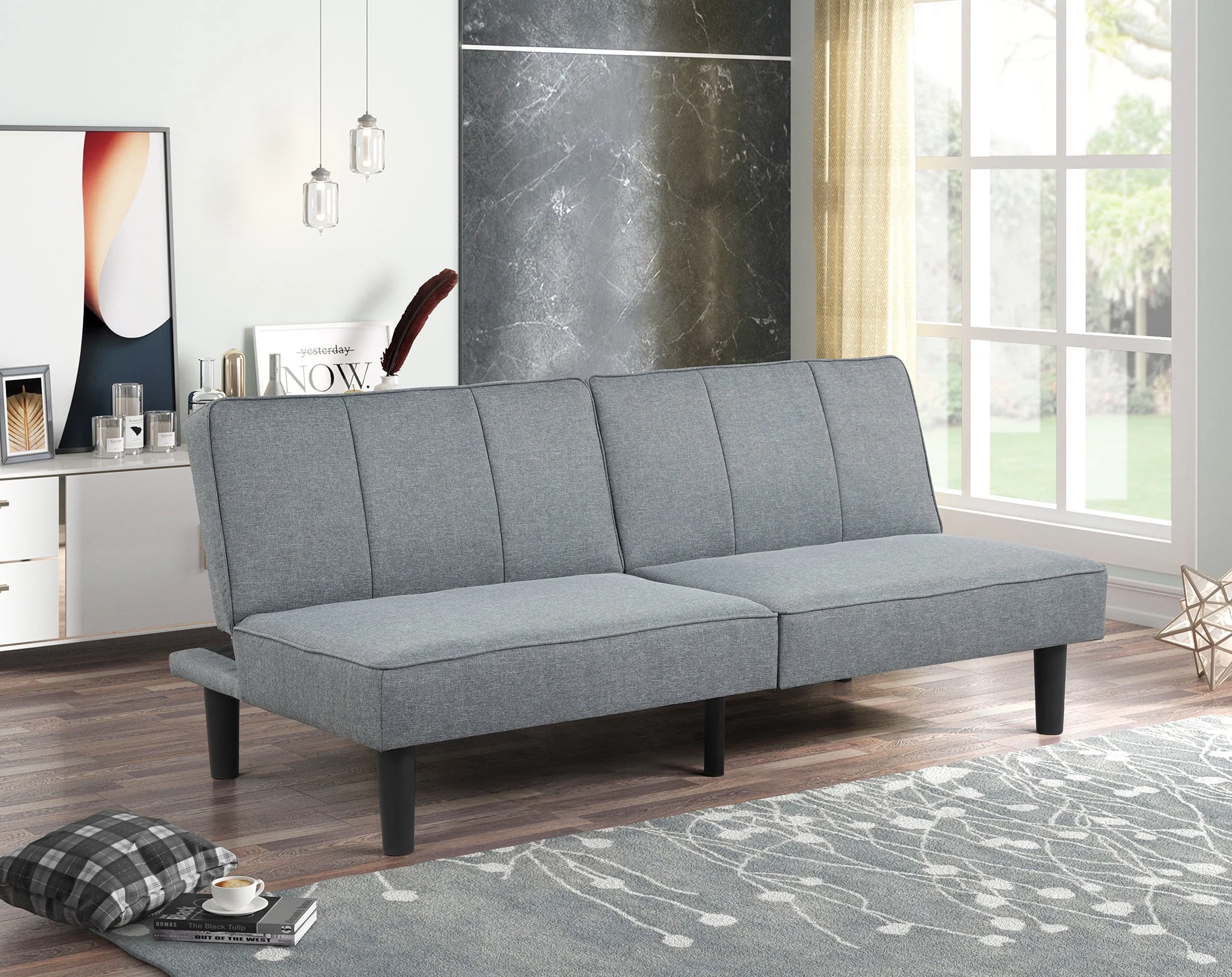 Mainstays Studio Futon, Gray Linen Upholstery