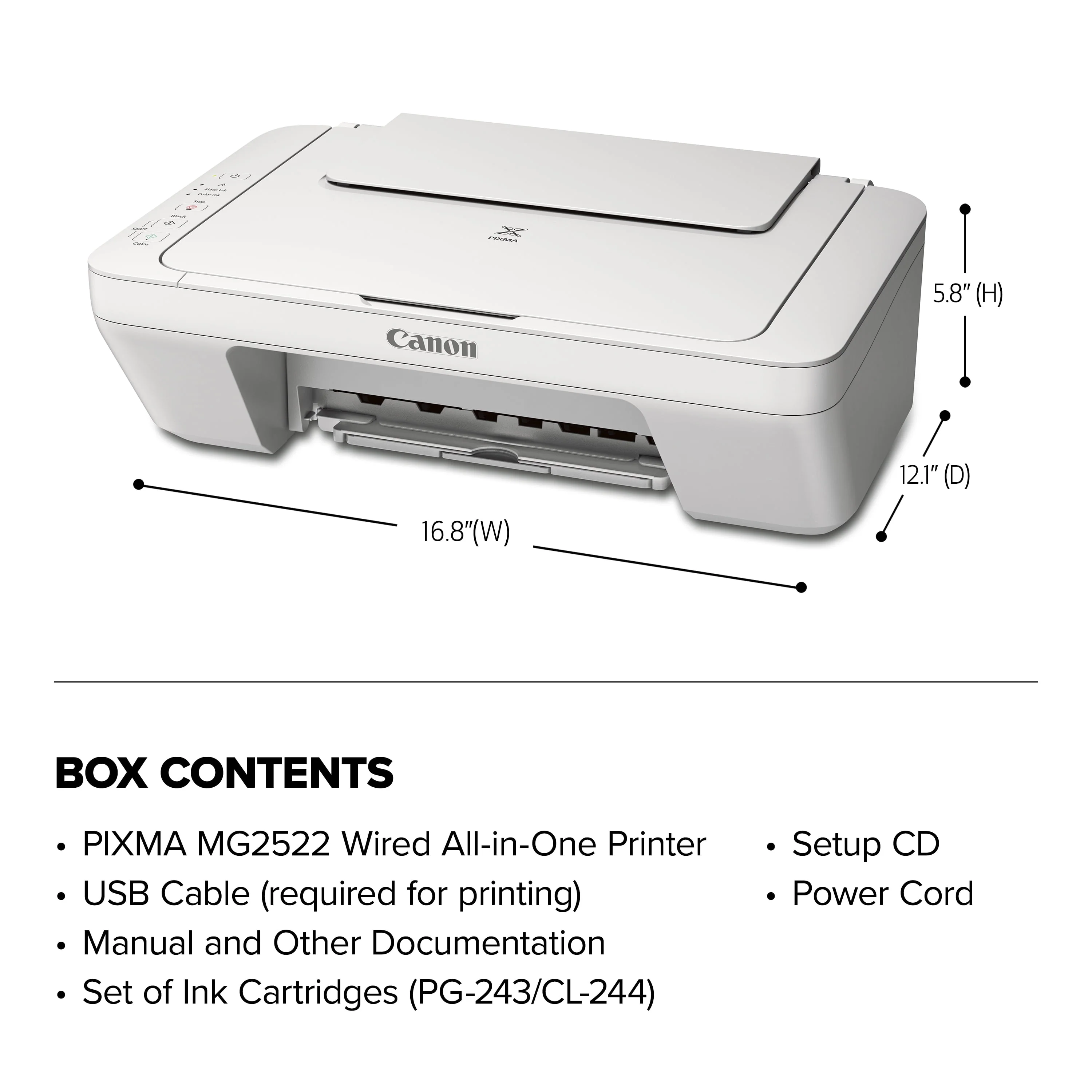 Canon PIXMA MG2522 Wired All-in-One Color Inkjet Printer [USB Cable Included], White