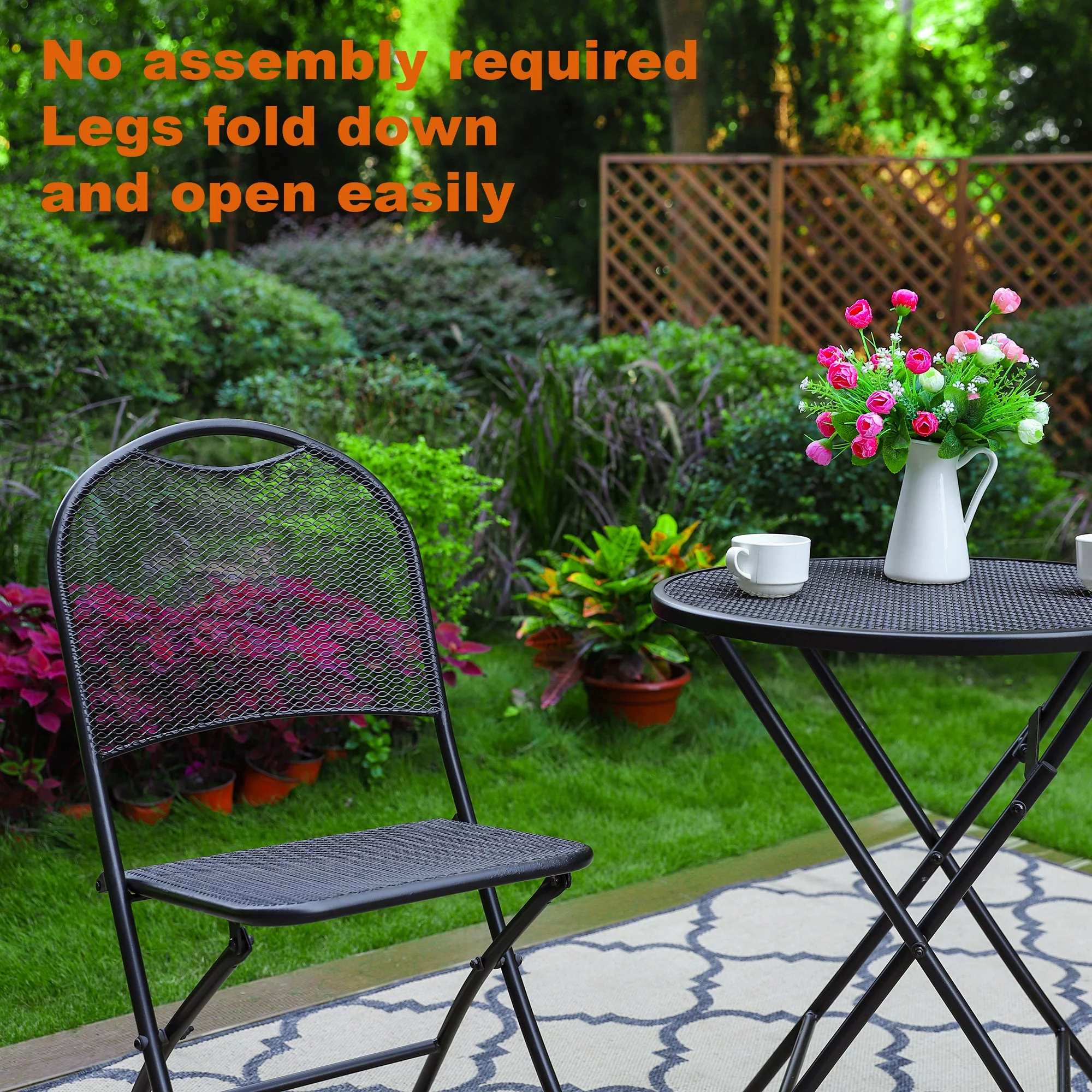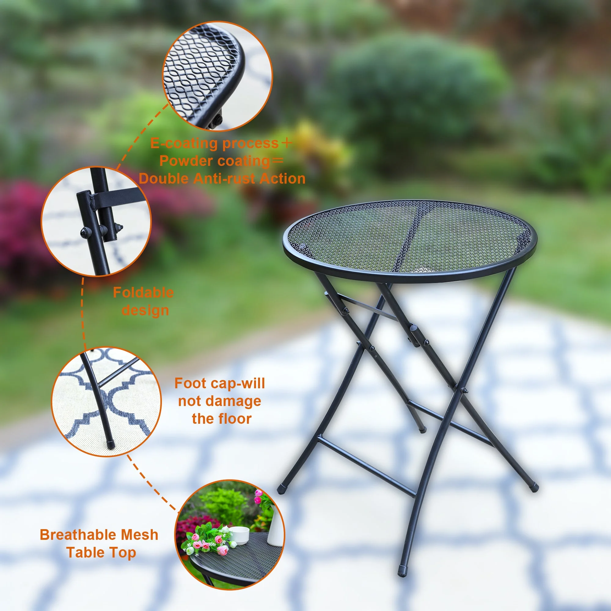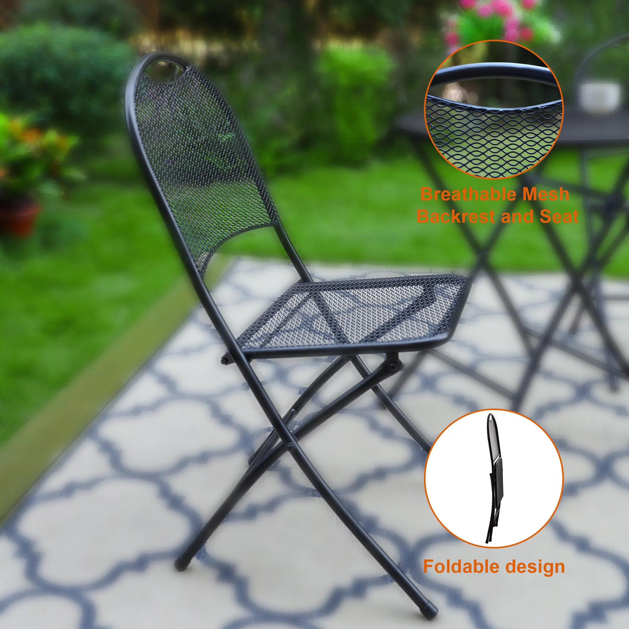 Sophia & William 3 Pieces Outdoor Bistro Set Metal Folding Table and Chairs