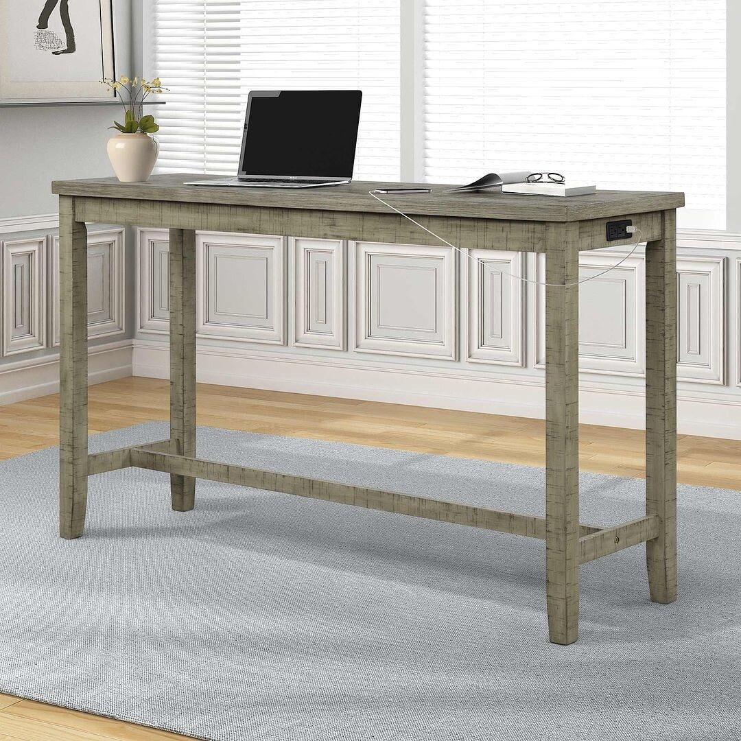 Doggody Do Favor INC Farmhouse Pub Dining Table Set for 3 - 60" Rectangular Dining Table with Sockets with 3 Fabric Upholstered Stools Green - Curated Treasures Market