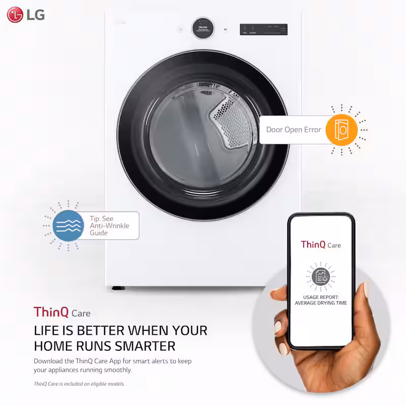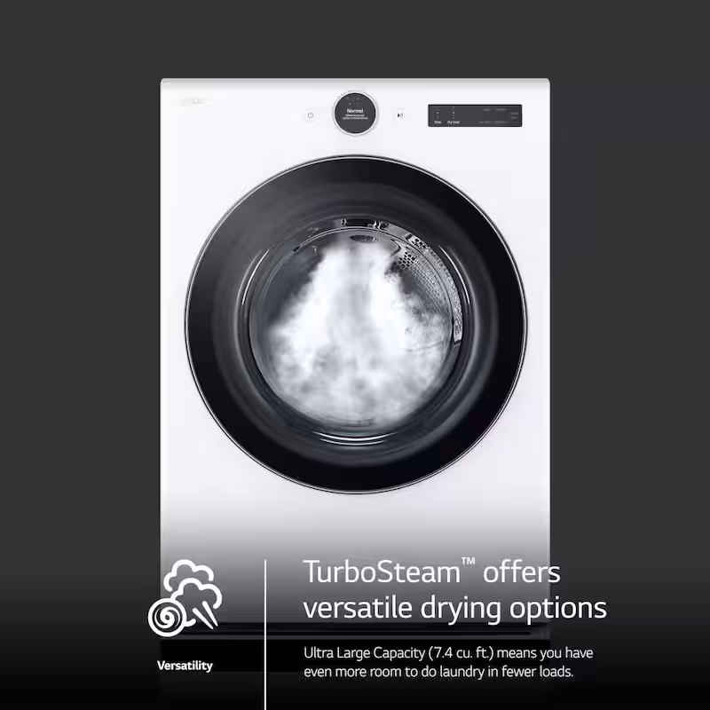 7.4 cu. ft. Vented Stackable SMART Electric Dryer in White with TurboSteam and AI Sensor Dry Technology