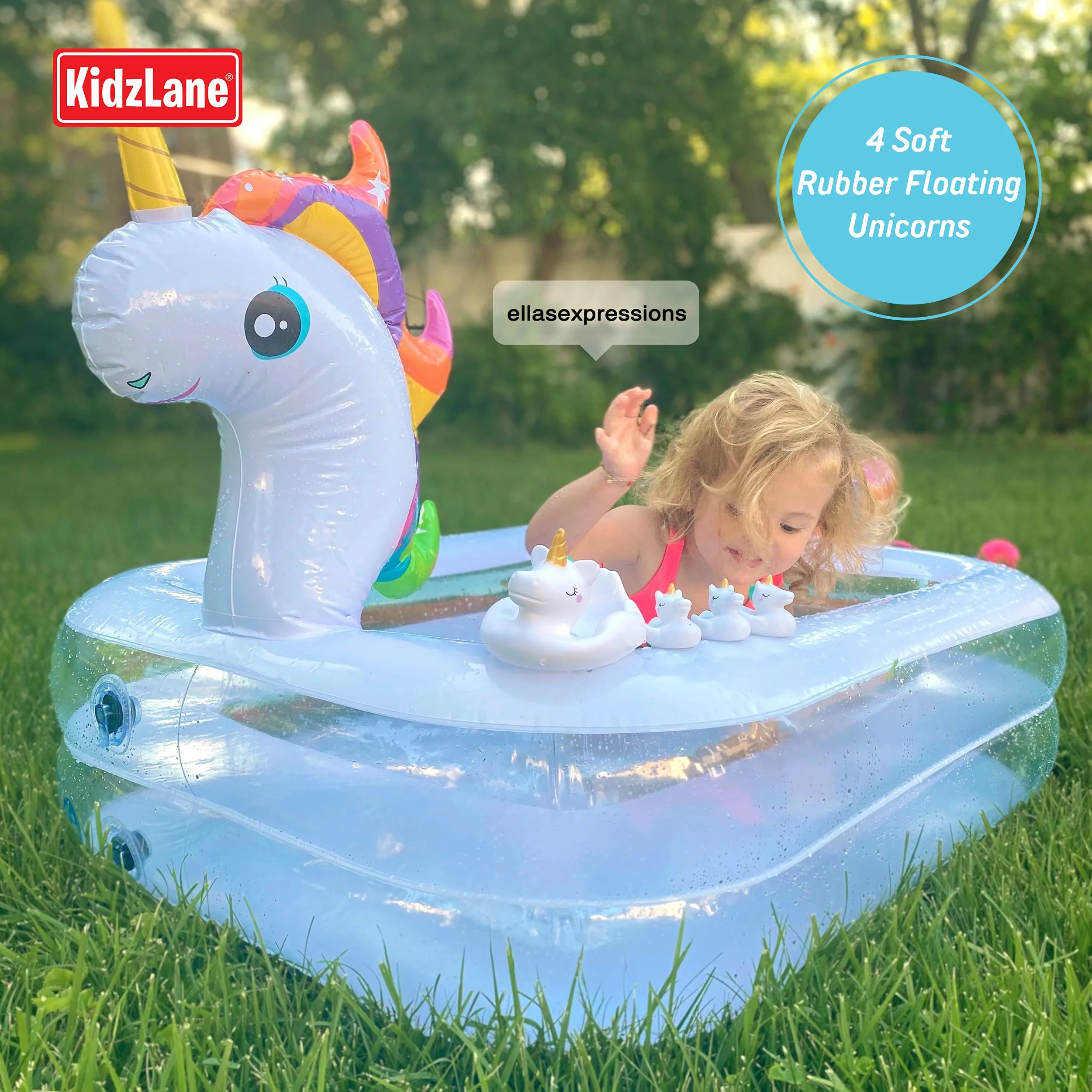 Kidzlane Inflatable Kiddie Pool, Unicorn Toddler Blow Up Swimming Pool with Unicorn Pool Toys for Backyard & Outdoor, Round 43” x 32” x 28, Small